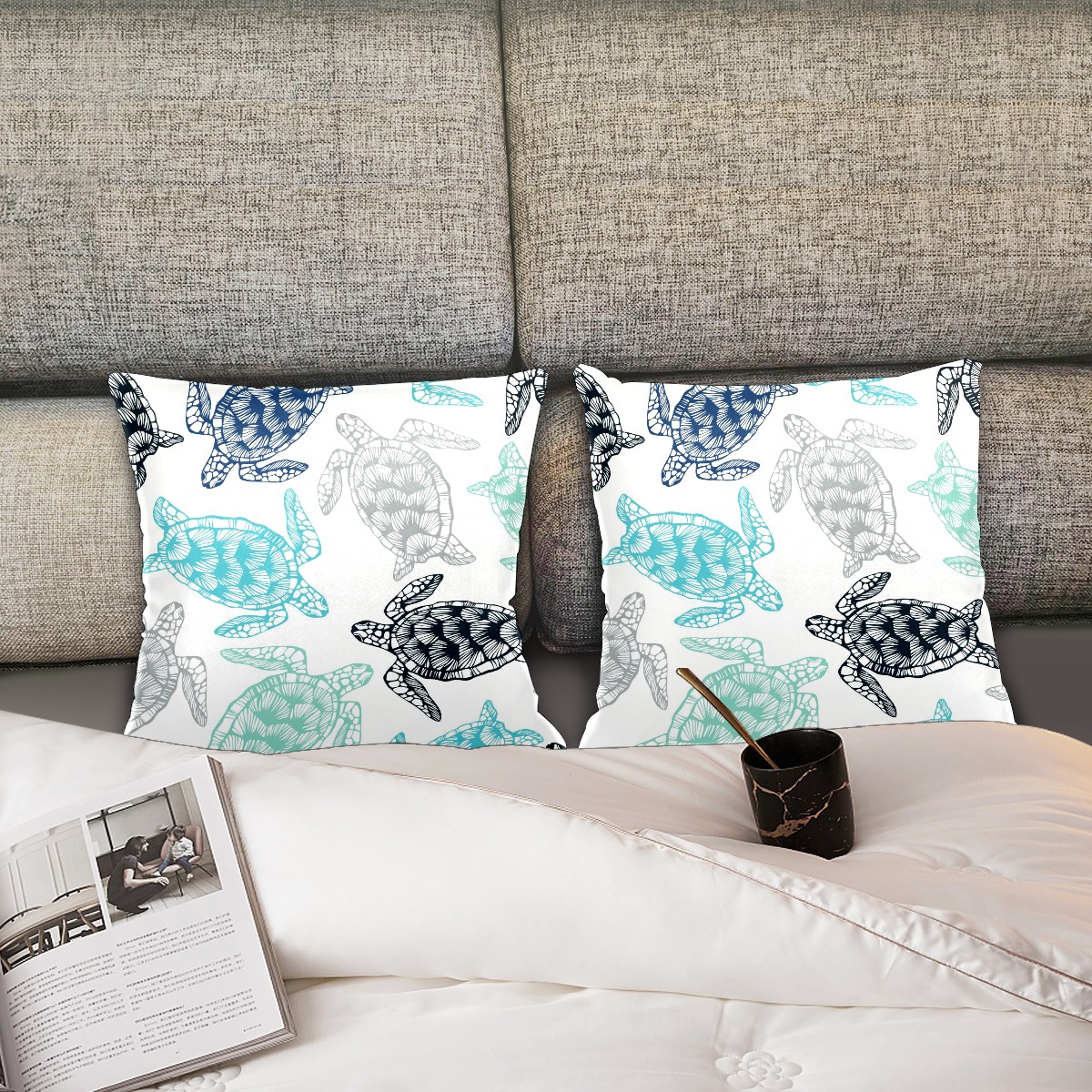 Sea Turtles Pillow Covers 16x16 Square Decorative Throw Pillow Cover Case Soft Velvet Cushion Cover for Couch Sofa Bed Living Room Car Home Decoration Set of 2