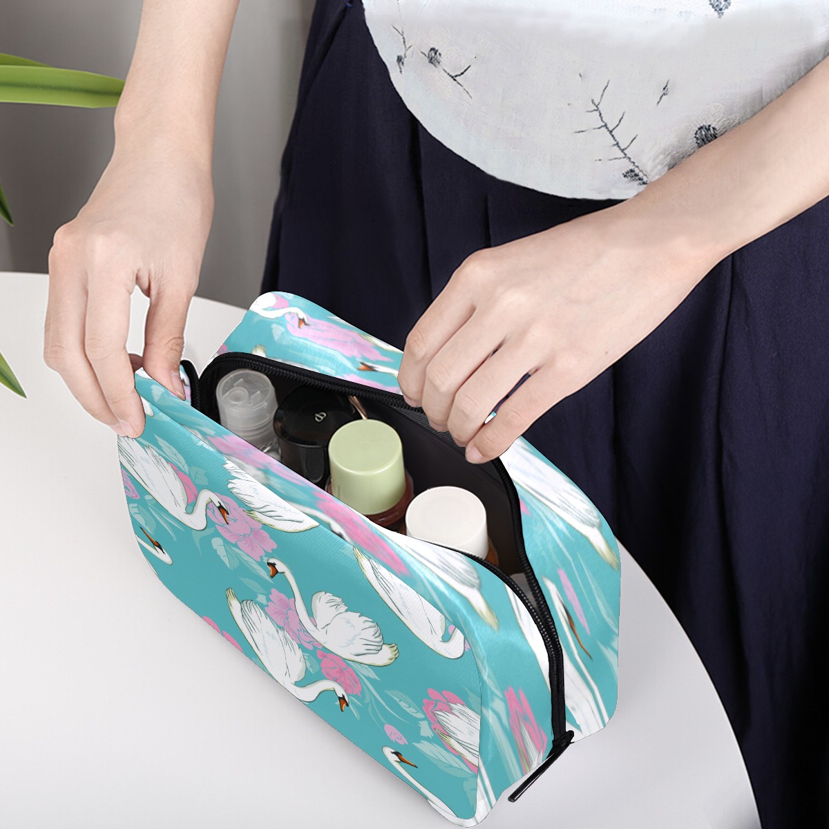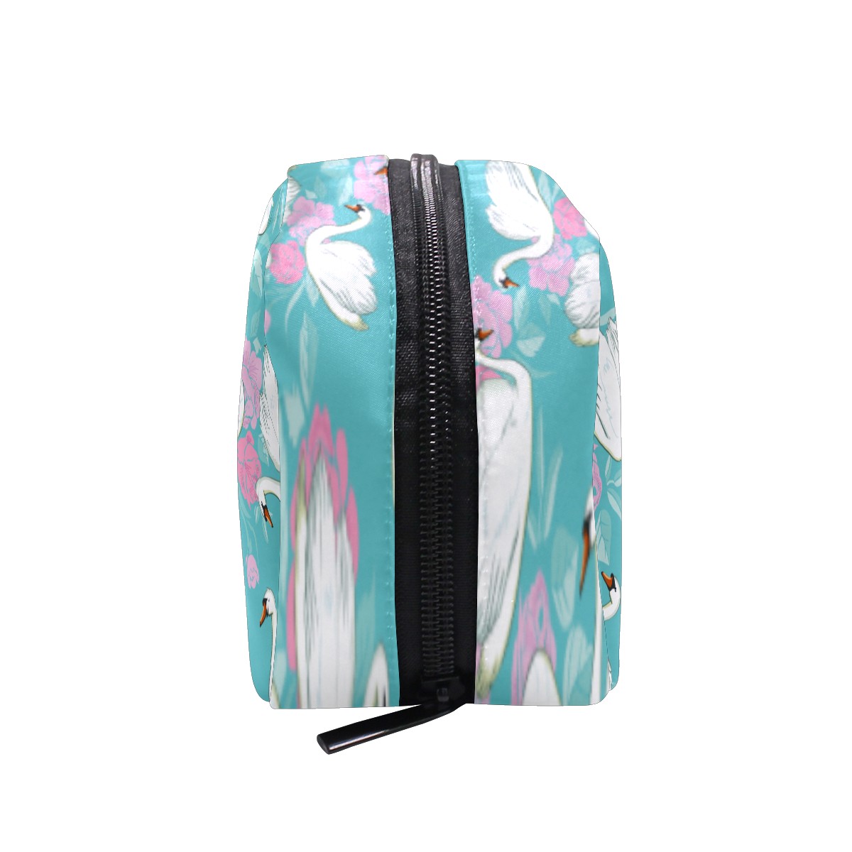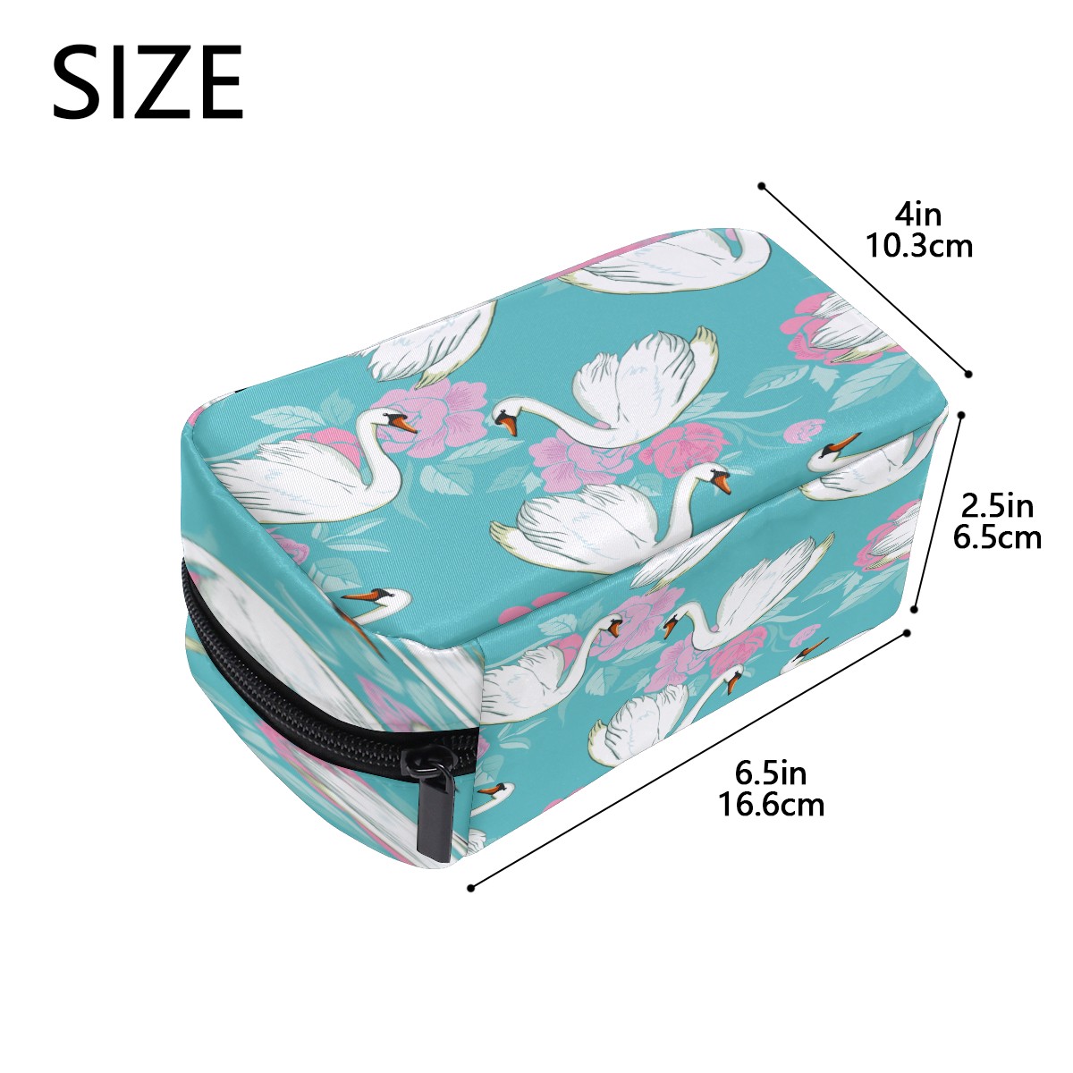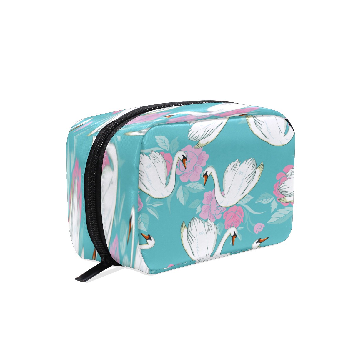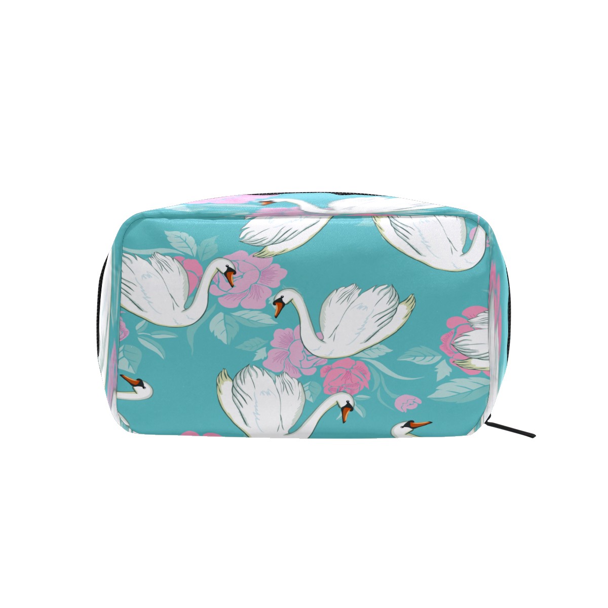 Cosmetic Bag for Women Girls Trave Makeup Bag Toiletry Case Pouch Accessories Organizer Beautiful Swan With Flower Pattern
