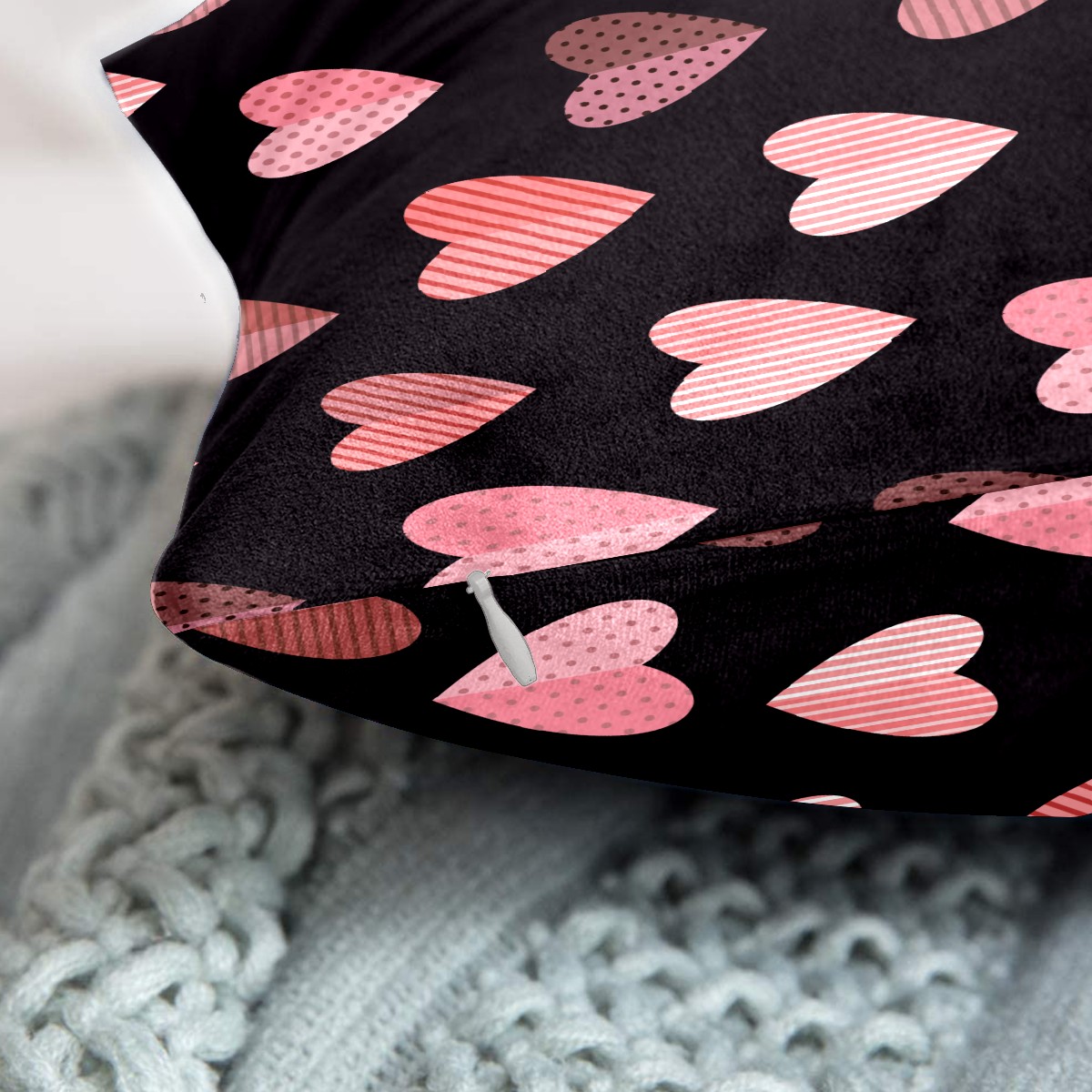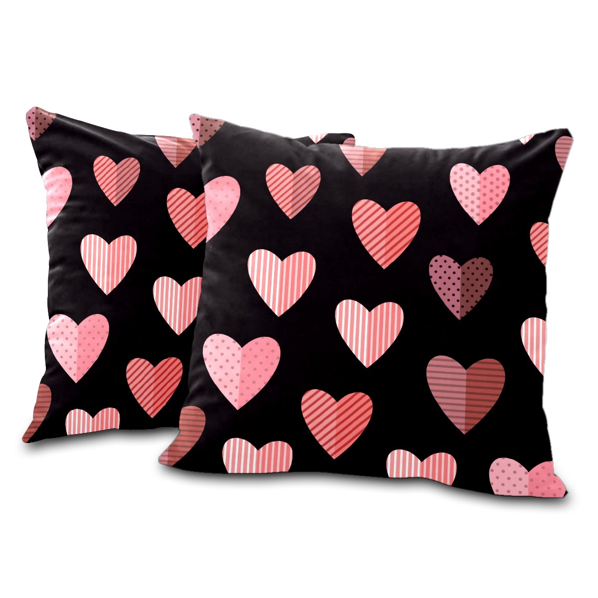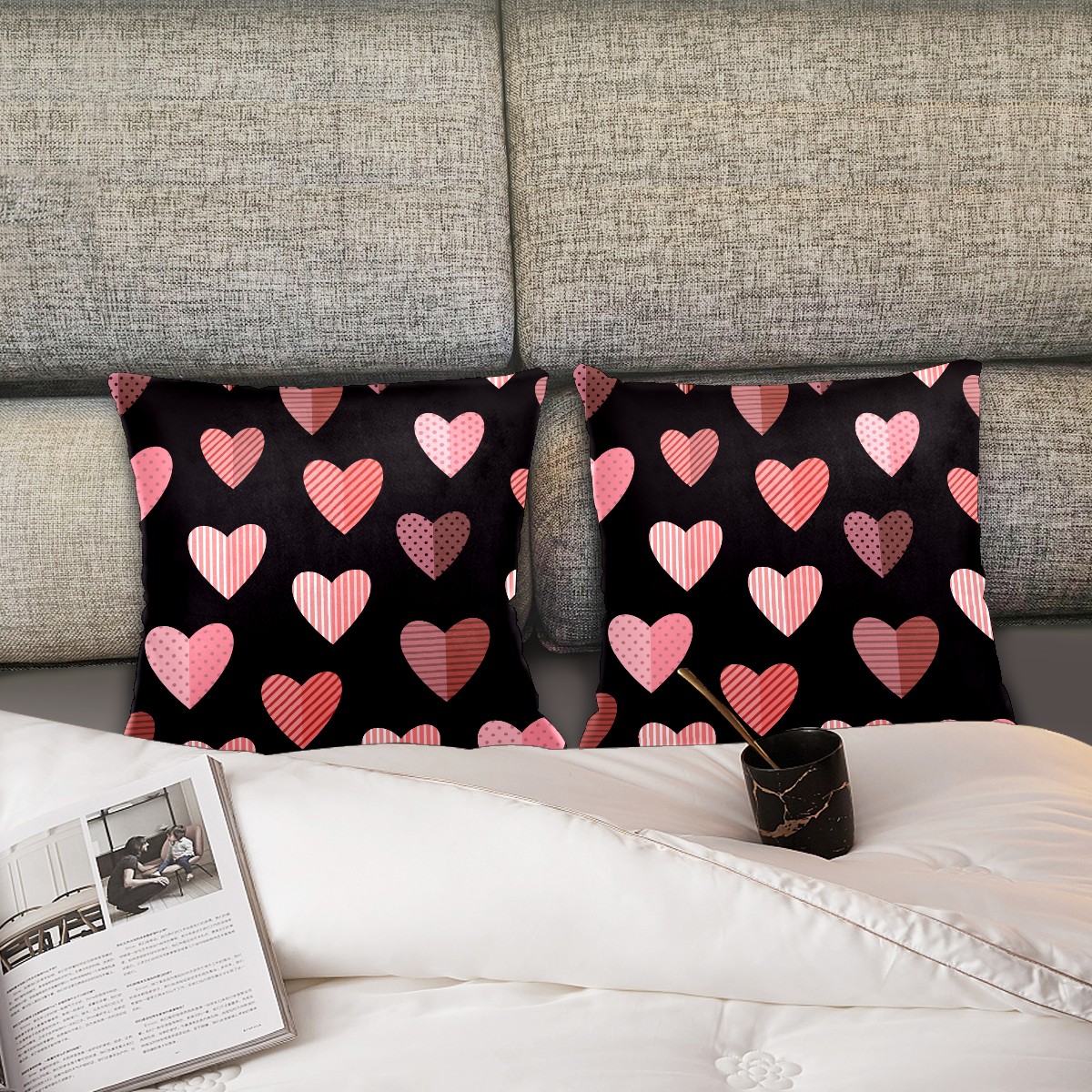 Pink Love Heart Black Pillow Covers 16x16 Square Decorative Throw Pillow Cover Case Soft Velvet Cushion Cover for Couch Sofa Bed Living Room Car Home Decoration Set of 2