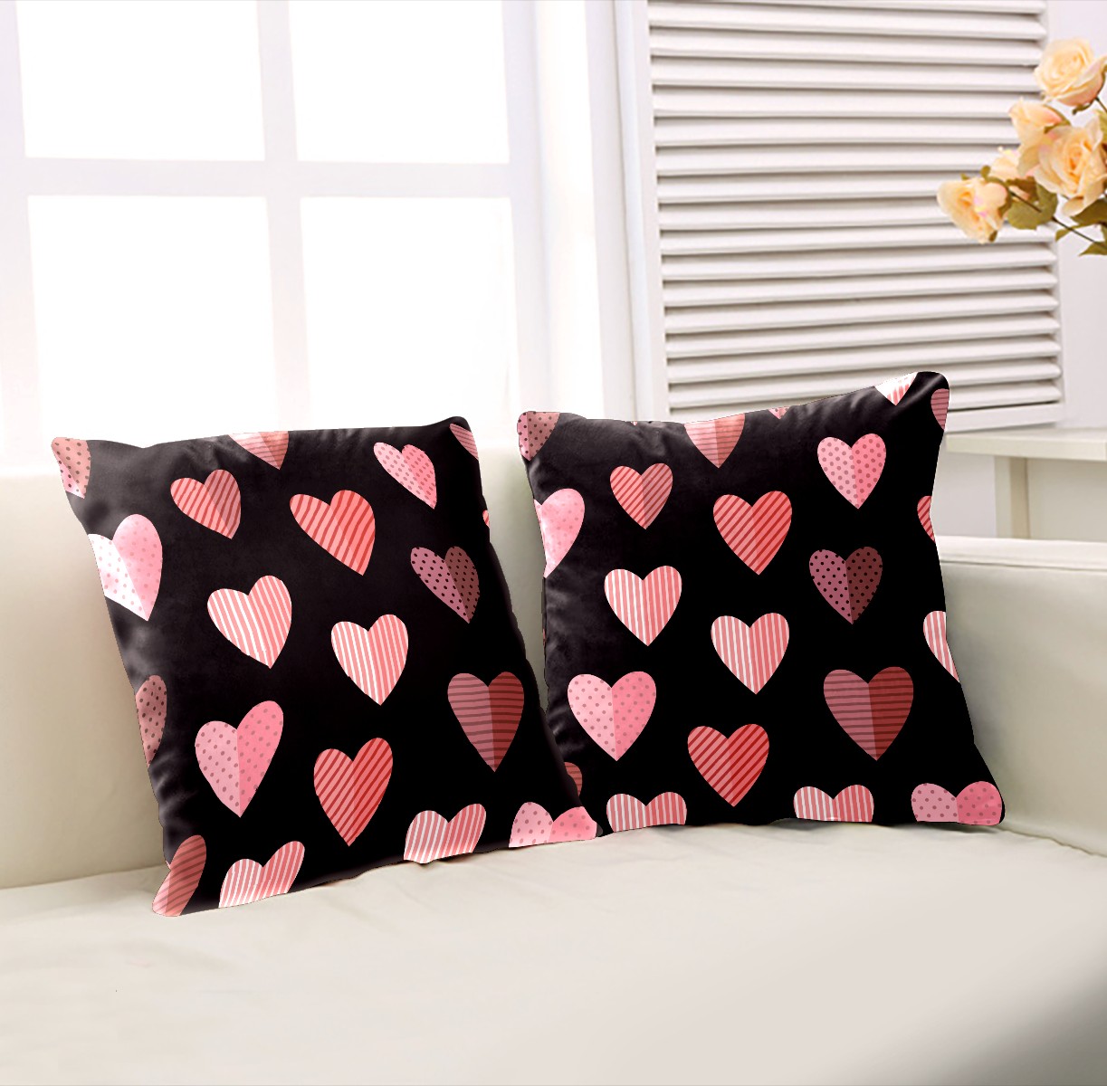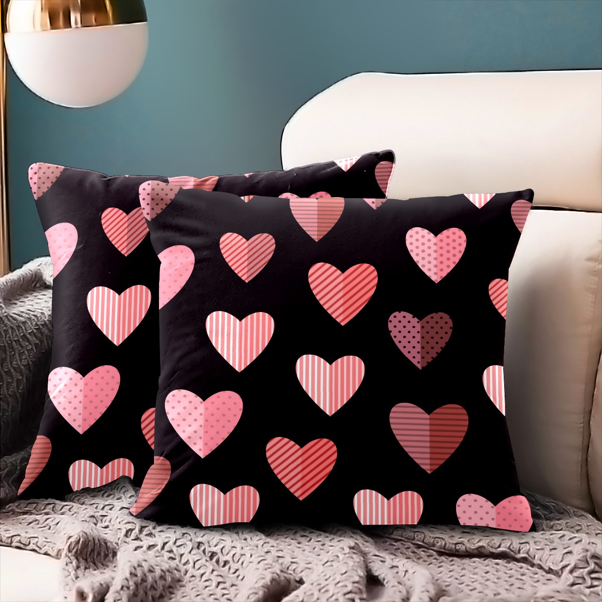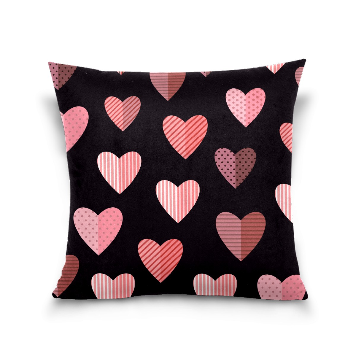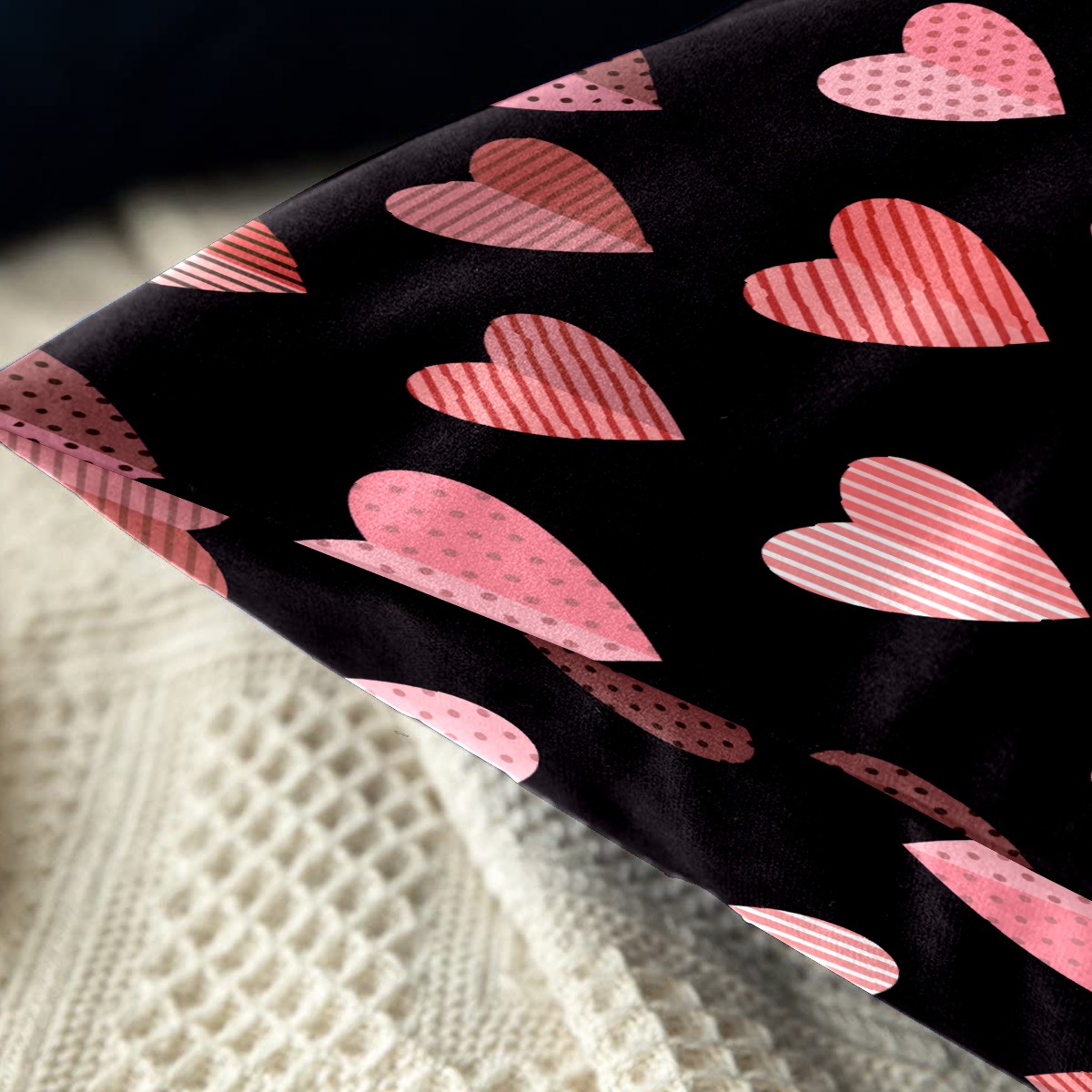 Pink Love Heart Black Pillow Covers 16x16 Square Decorative Throw Pillow Cover Case Soft Velvet Cushion Cover for Couch Sofa Bed Living Room Car Home Decoration Set of 2