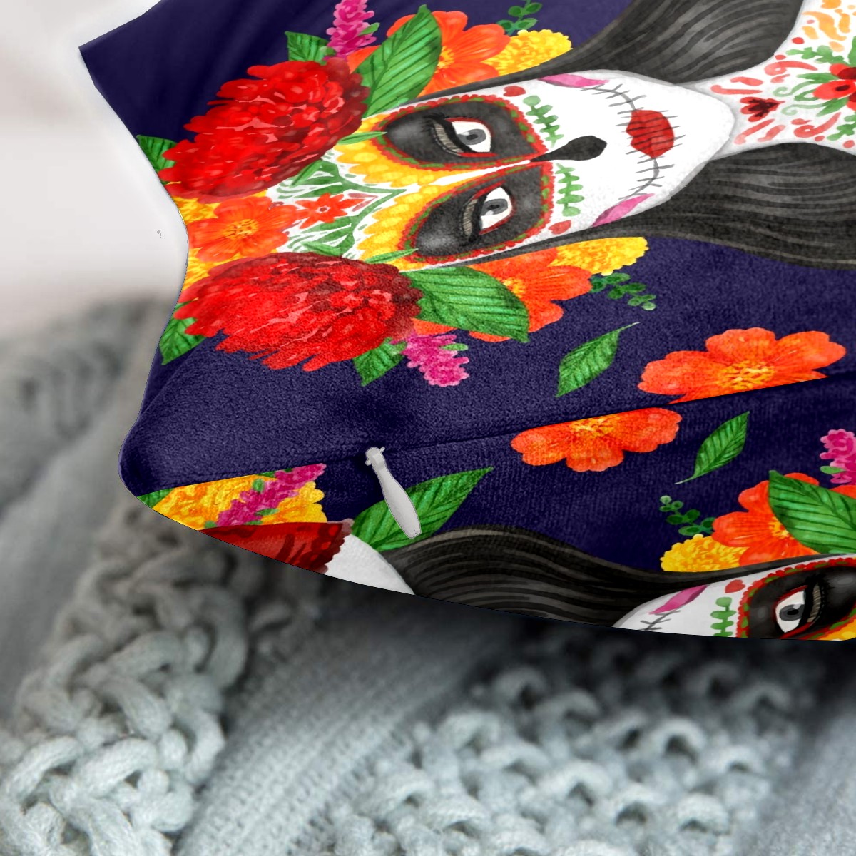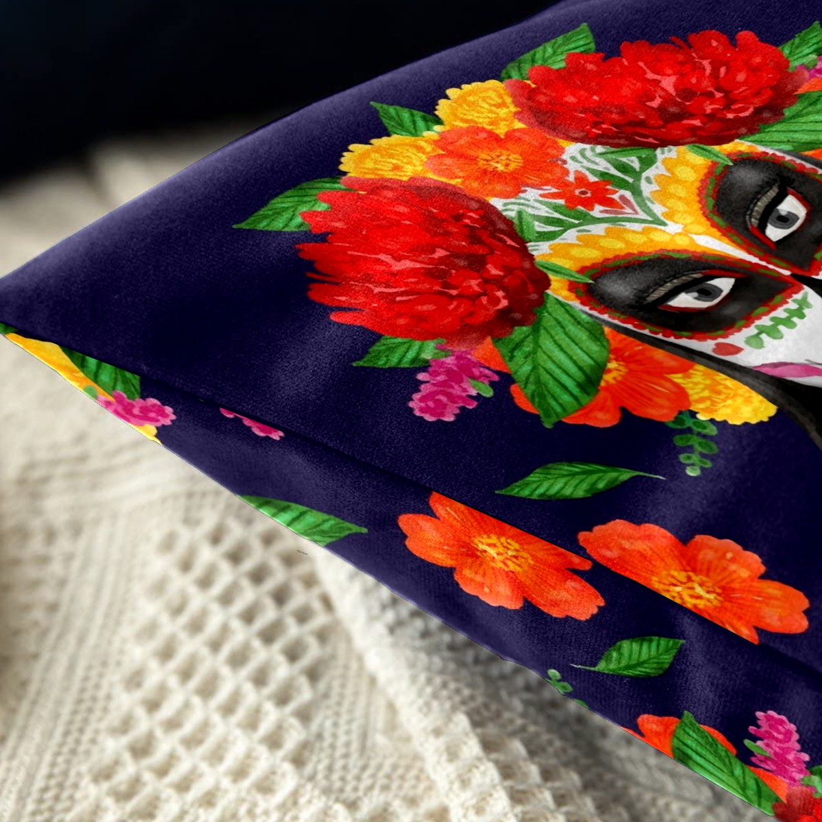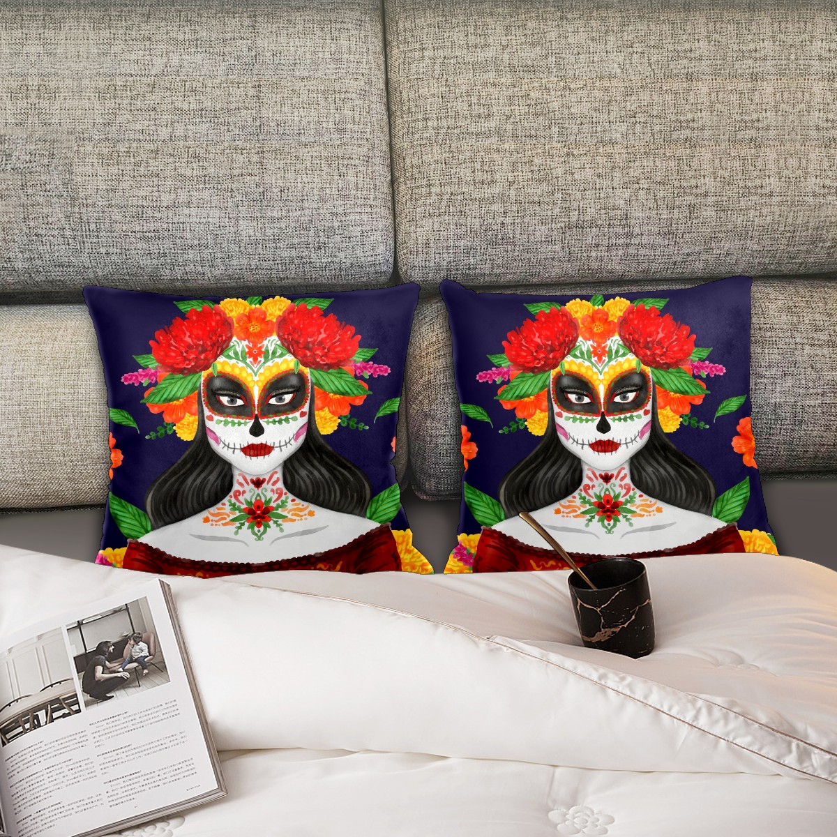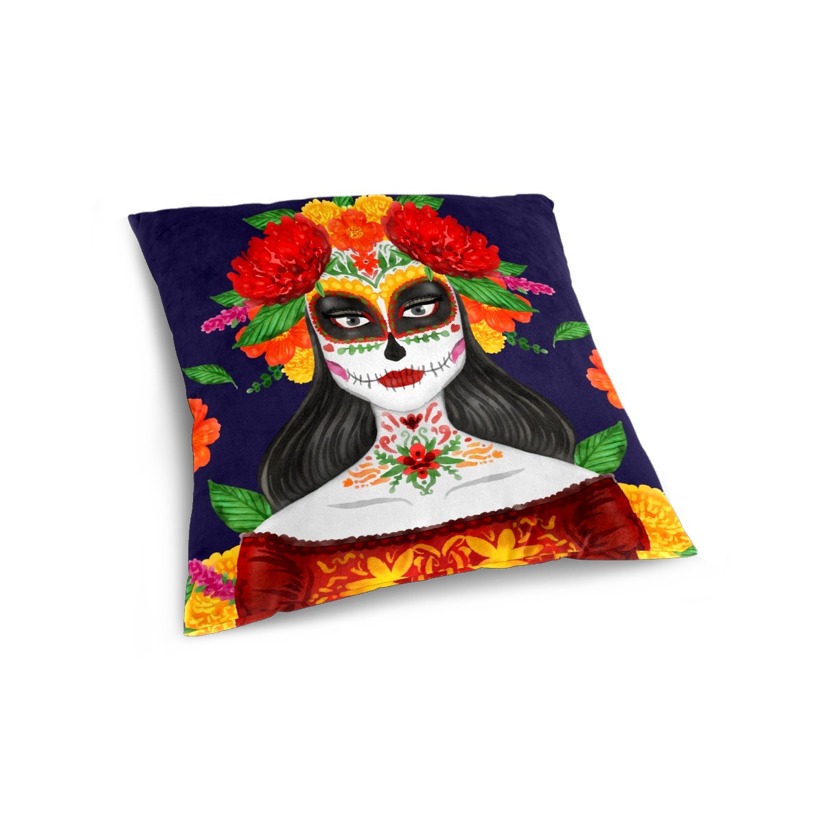 Mexican Skull Dia De Muertos Pillow Covers 16x16 Square Decorative Throw Pillow Cover Case Soft Velvet Cushion Cover for Couch Sofa Bed Living Room Car Home Decoration Set of 2