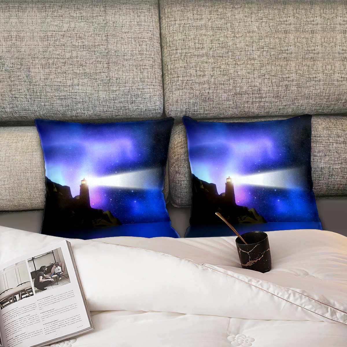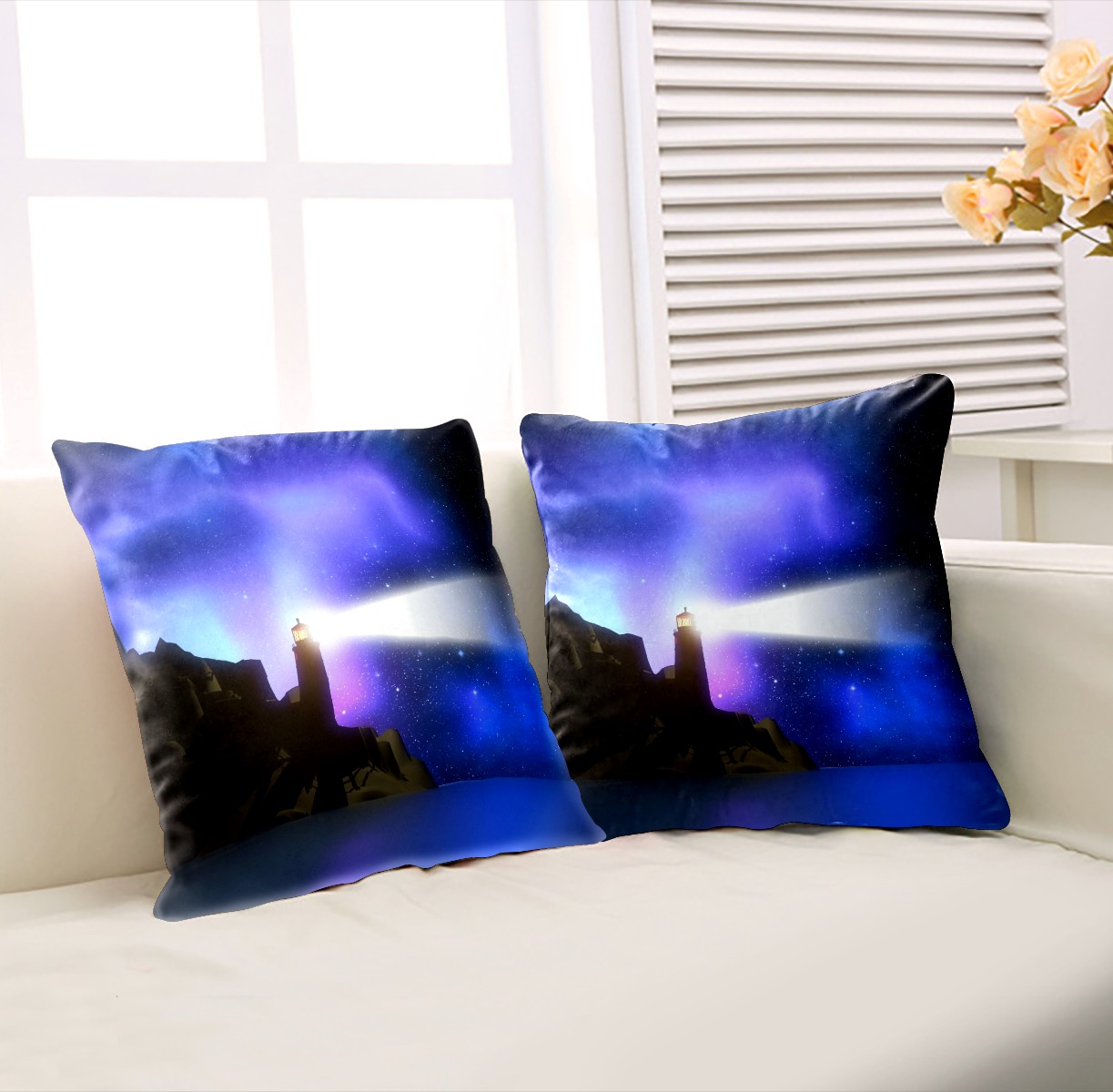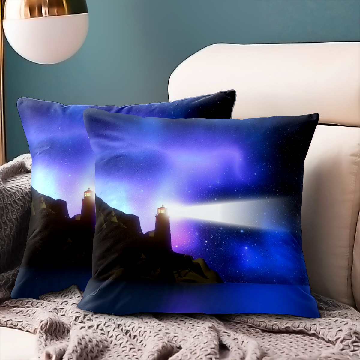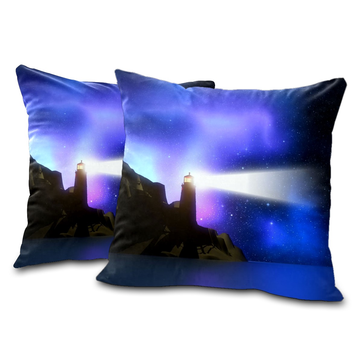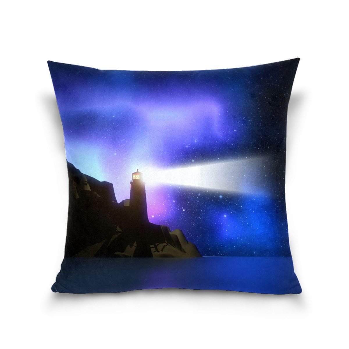 Magic Lighthouse Purple Glow Pillow Covers 16x16 Square Decorative Throw Pillow Cover Case Soft Velvet Cushion Cover for Couch Sofa Bed Living Room Car Home Decoration Set of 2