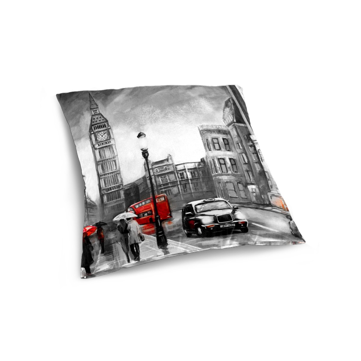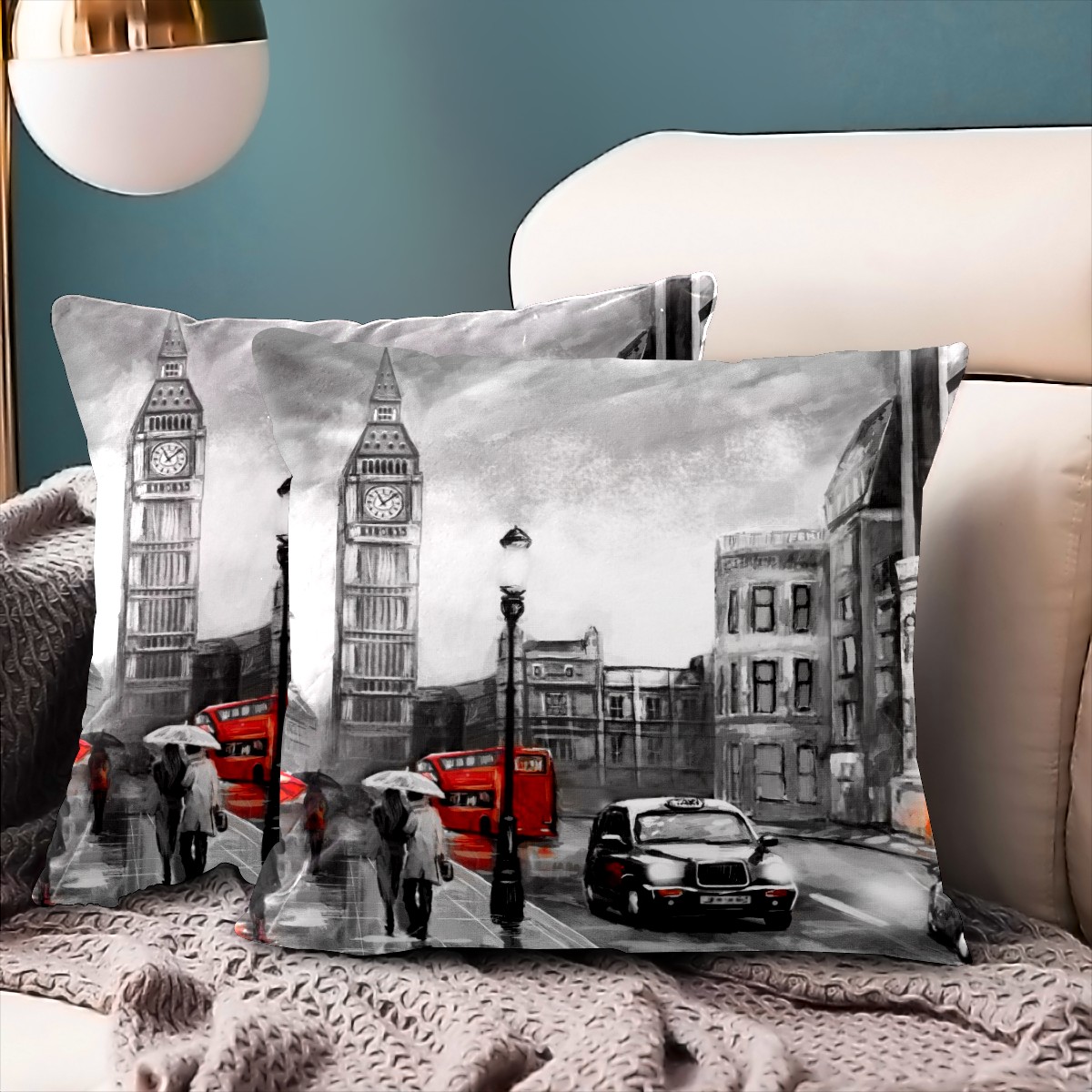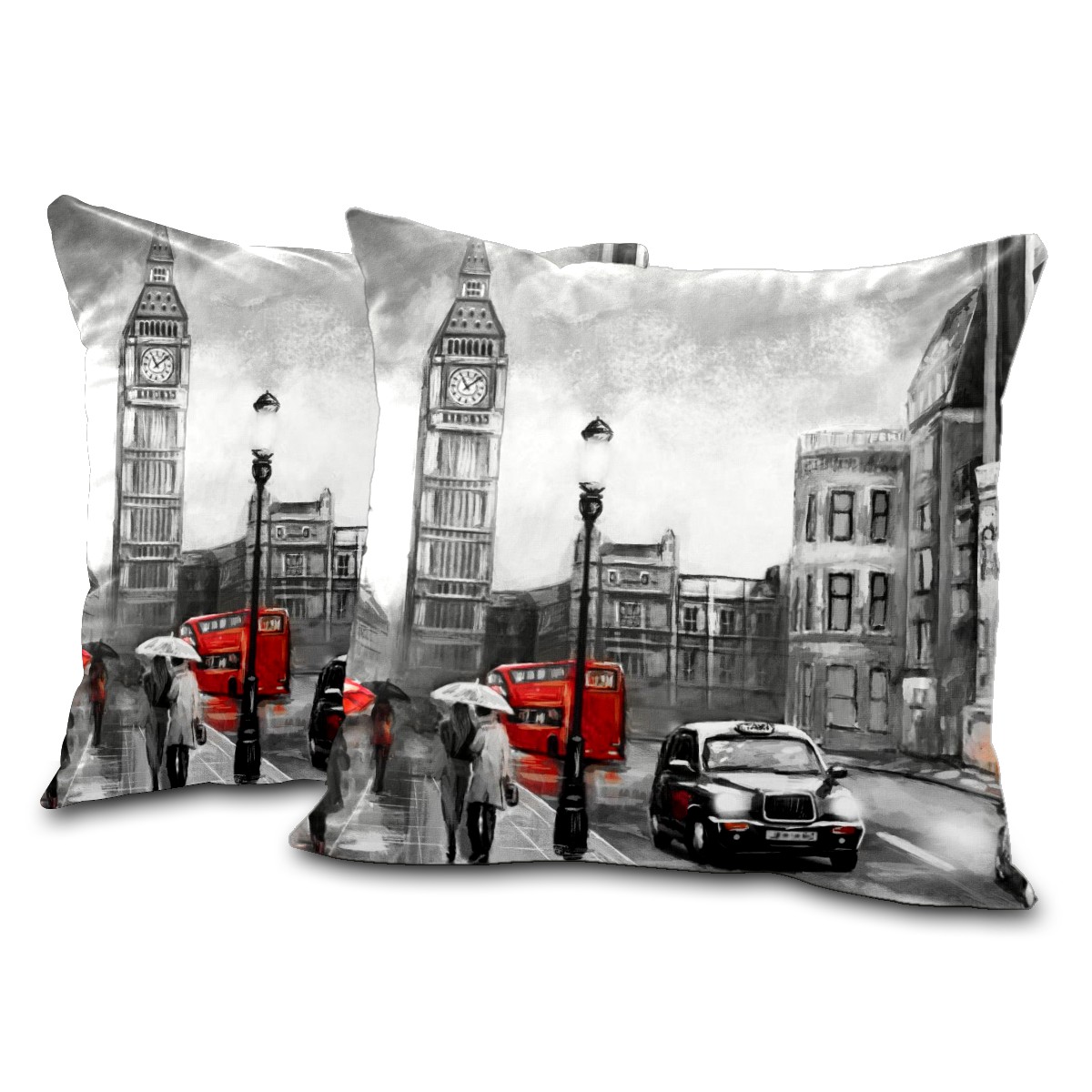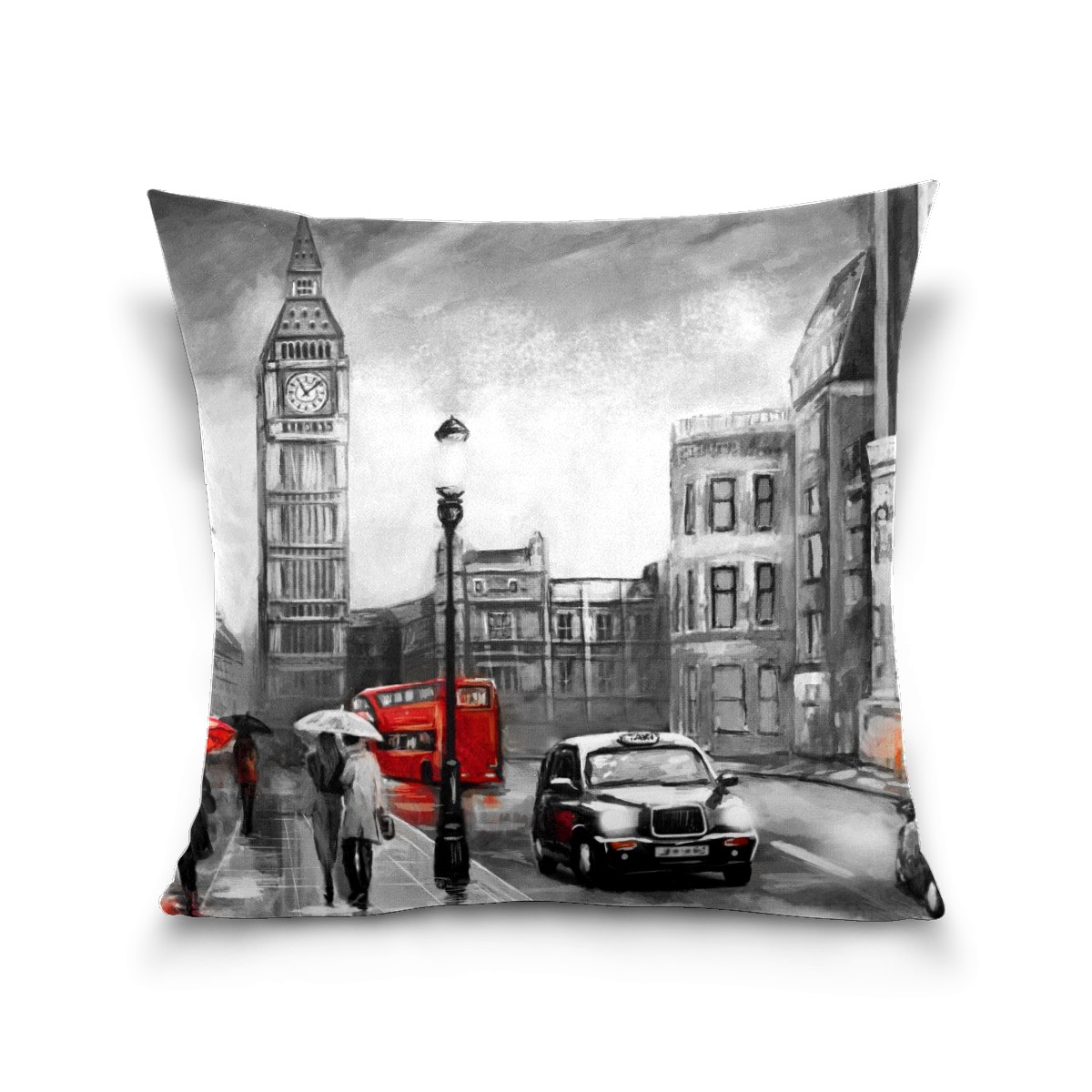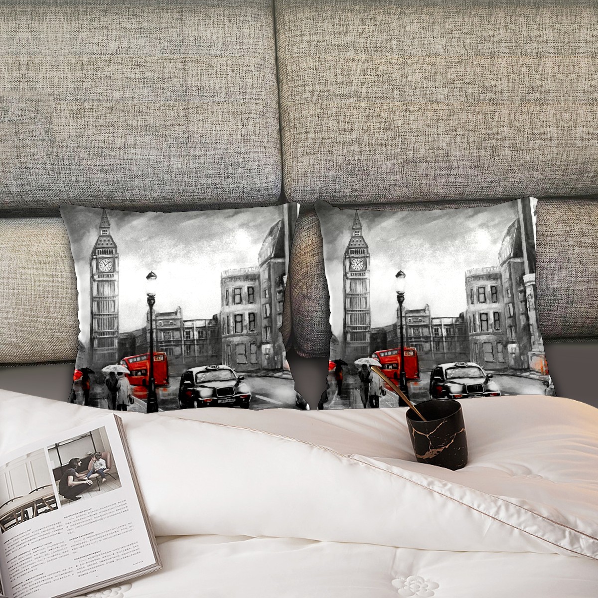 London Big Ben Street Pillow Covers 16x16 Square Decorative Throw Pillow Cover Case Soft Velvet Cushion Cover for Couch Sofa Bed Living Room Car Home Decoration Set of 2