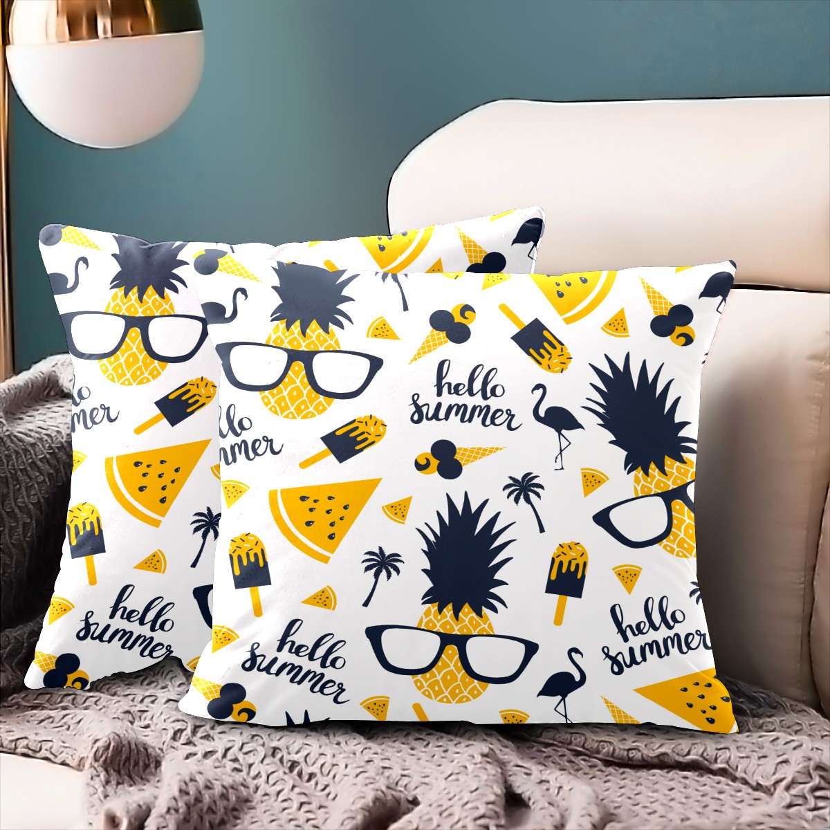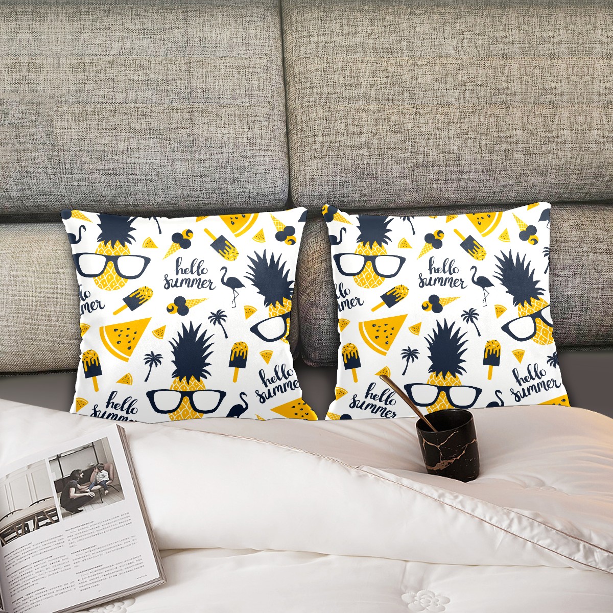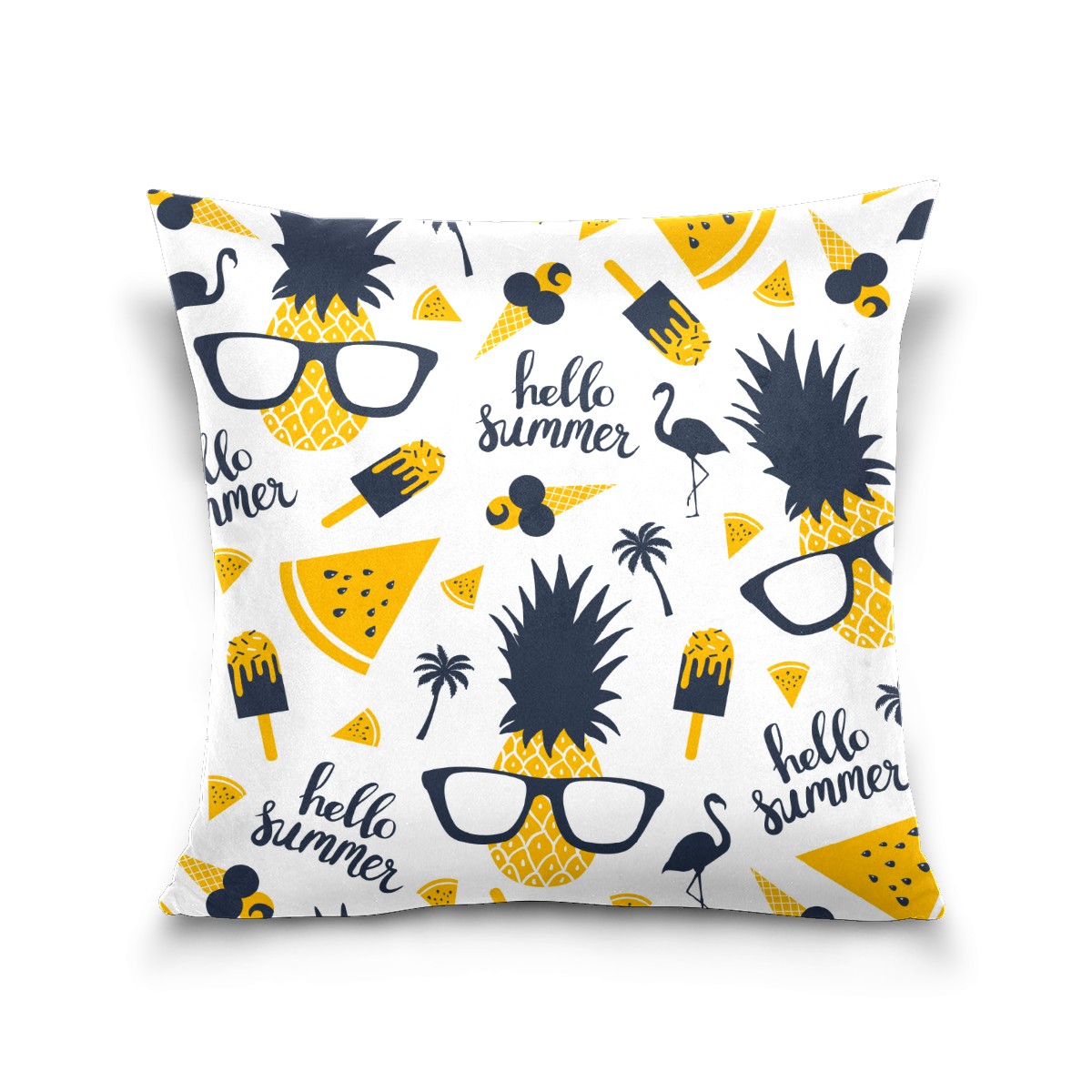 Funny Hello Summer Pineapple Ice Cream Flamingo Pillow Covers 16x16 Square Decorative Throw Pillow Cover Case Soft Velvet Cushion Cover for Couch Sofa Bed Living Room Car Home Decoration Set of 2