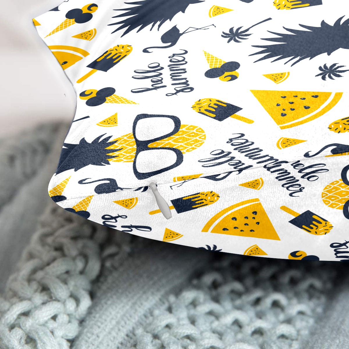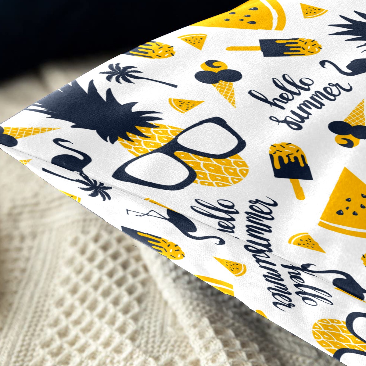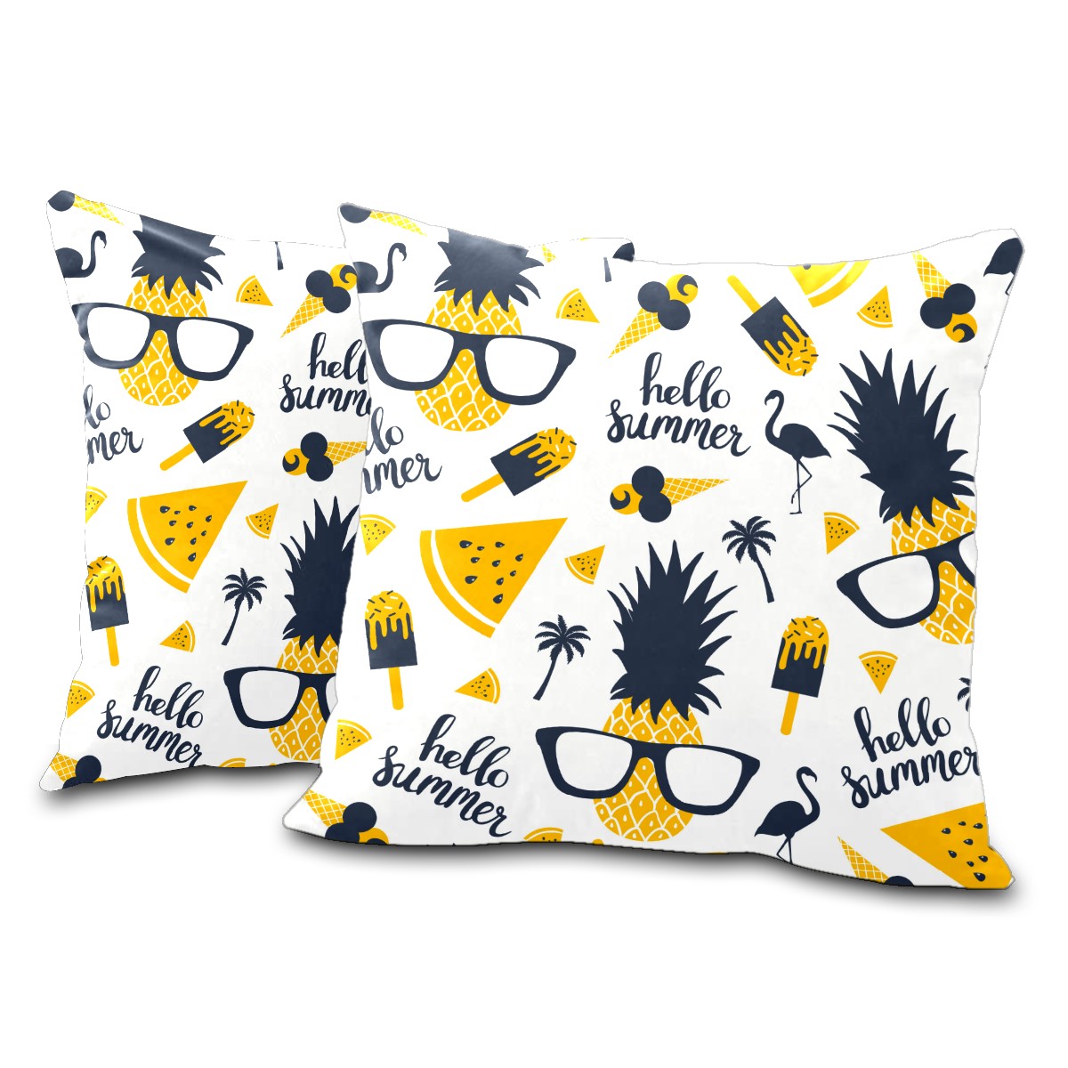 Funny Hello Summer Pineapple Ice Cream Flamingo Pillow Covers 16x16 Square Decorative Throw Pillow Cover Case Soft Velvet Cushion Cover for Couch Sofa Bed Living Room Car Home Decoration Set of 2