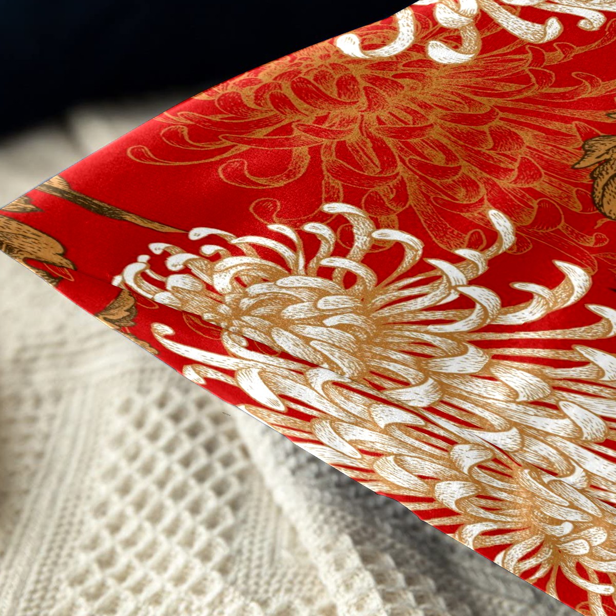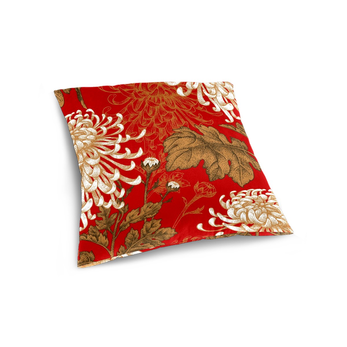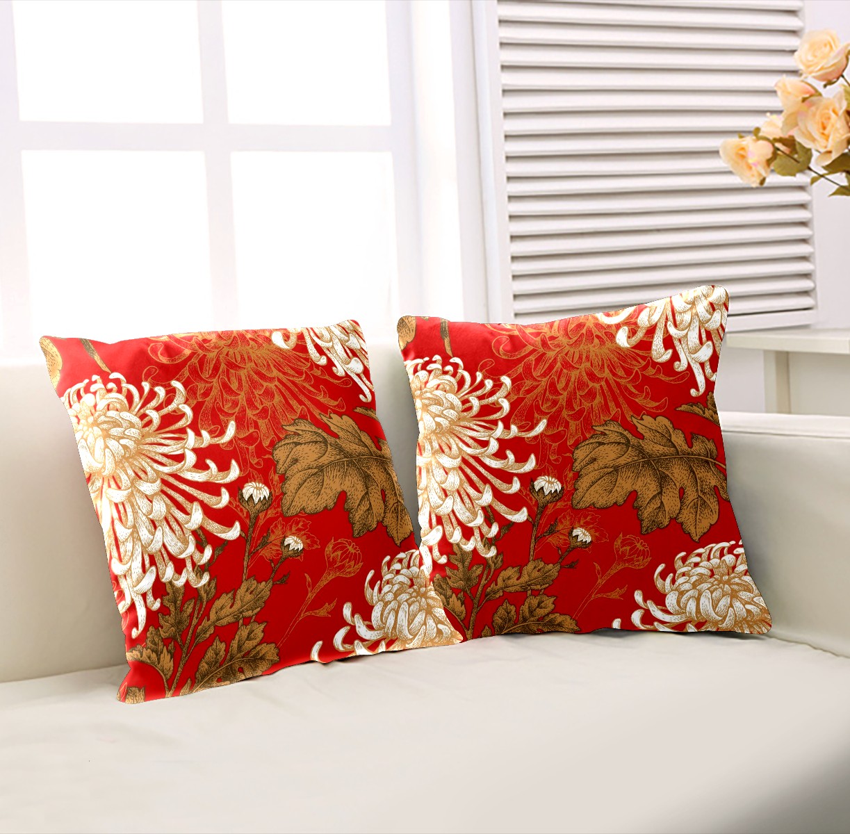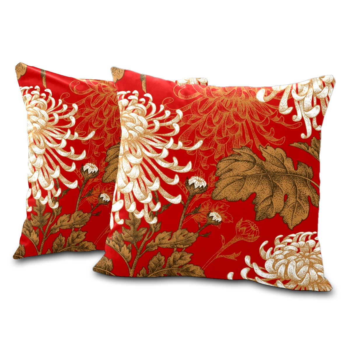 Flower Chrysanthemum Vintage Red Pillow Covers 16x16 Square Decorative Throw Pillow Cover Case Soft Velvet Cushion Cover for Couch Sofa Bed Living Room Car Home Decoration Set of 2
