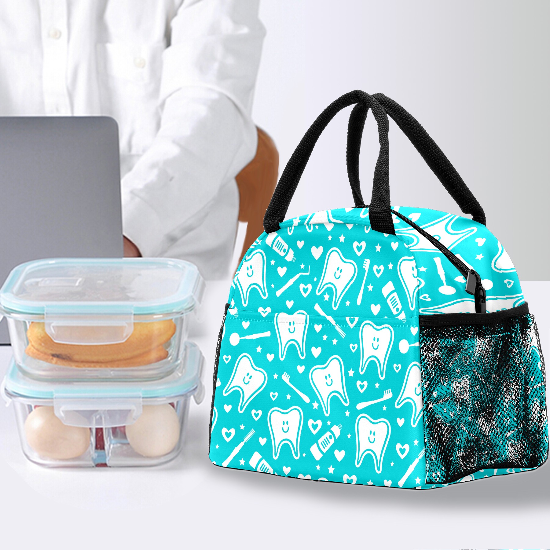 Reusable Lunch Bag Insulated Lunch Box Dental Cute Smile Tooth Lunch Tote Bag Durable Snacks Organizer for Office Work Hiking Picnic