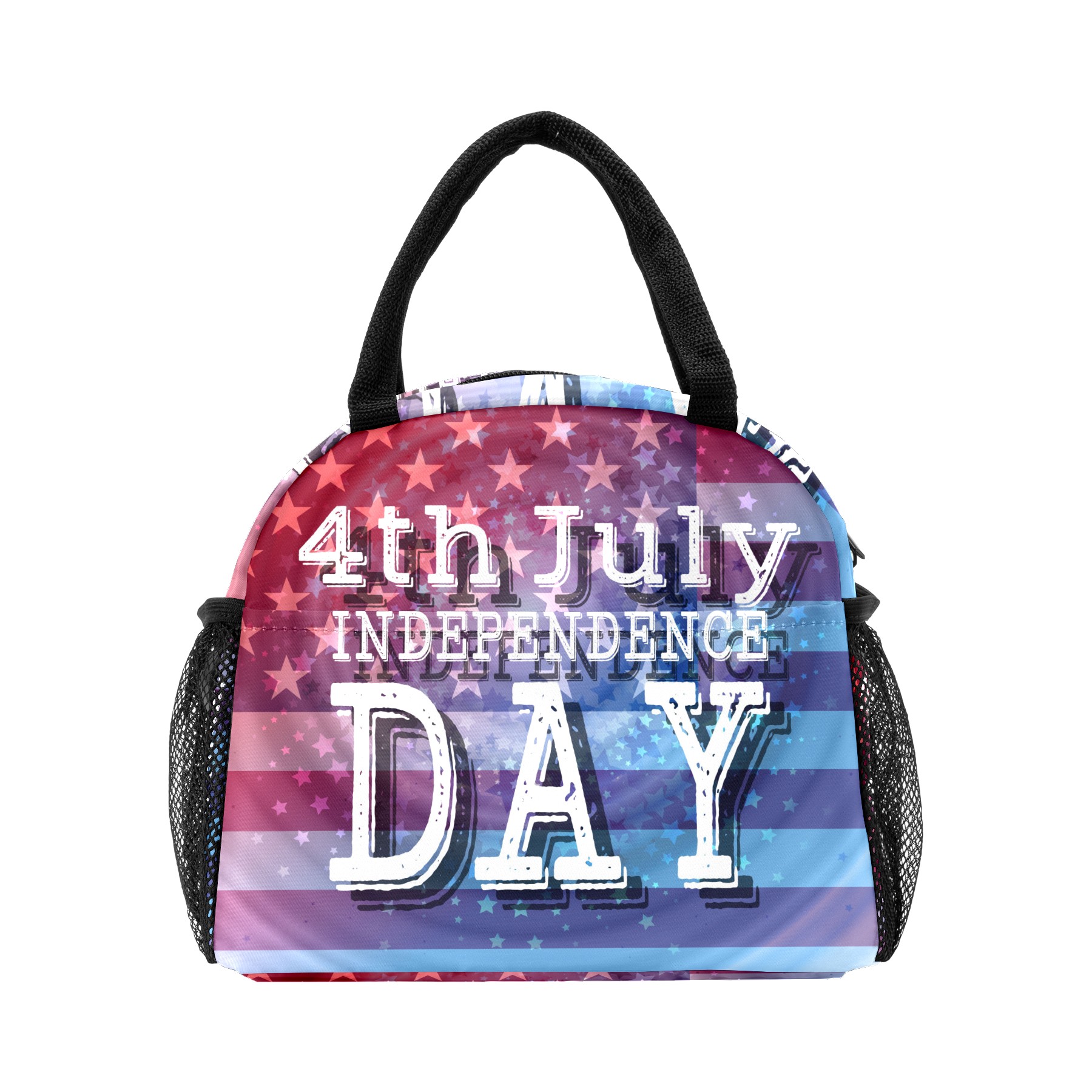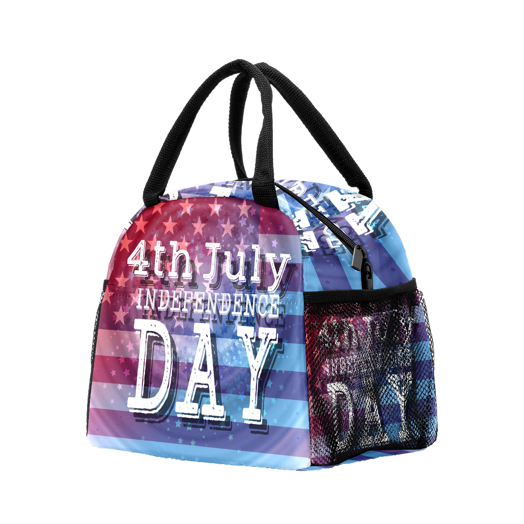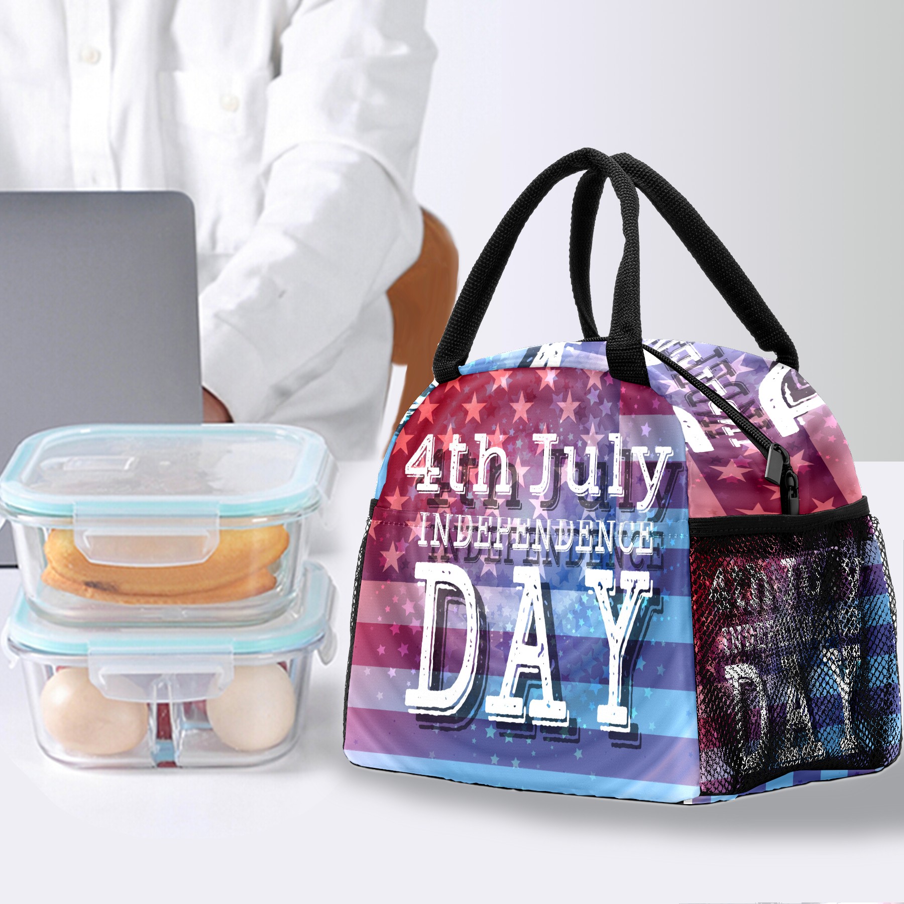 Reusable Lunch Bag Insulated Lunch Box Independence Day With American Flag Lunch Tote Bag Durable Snacks Organizer for Office Work Hiking Picnic