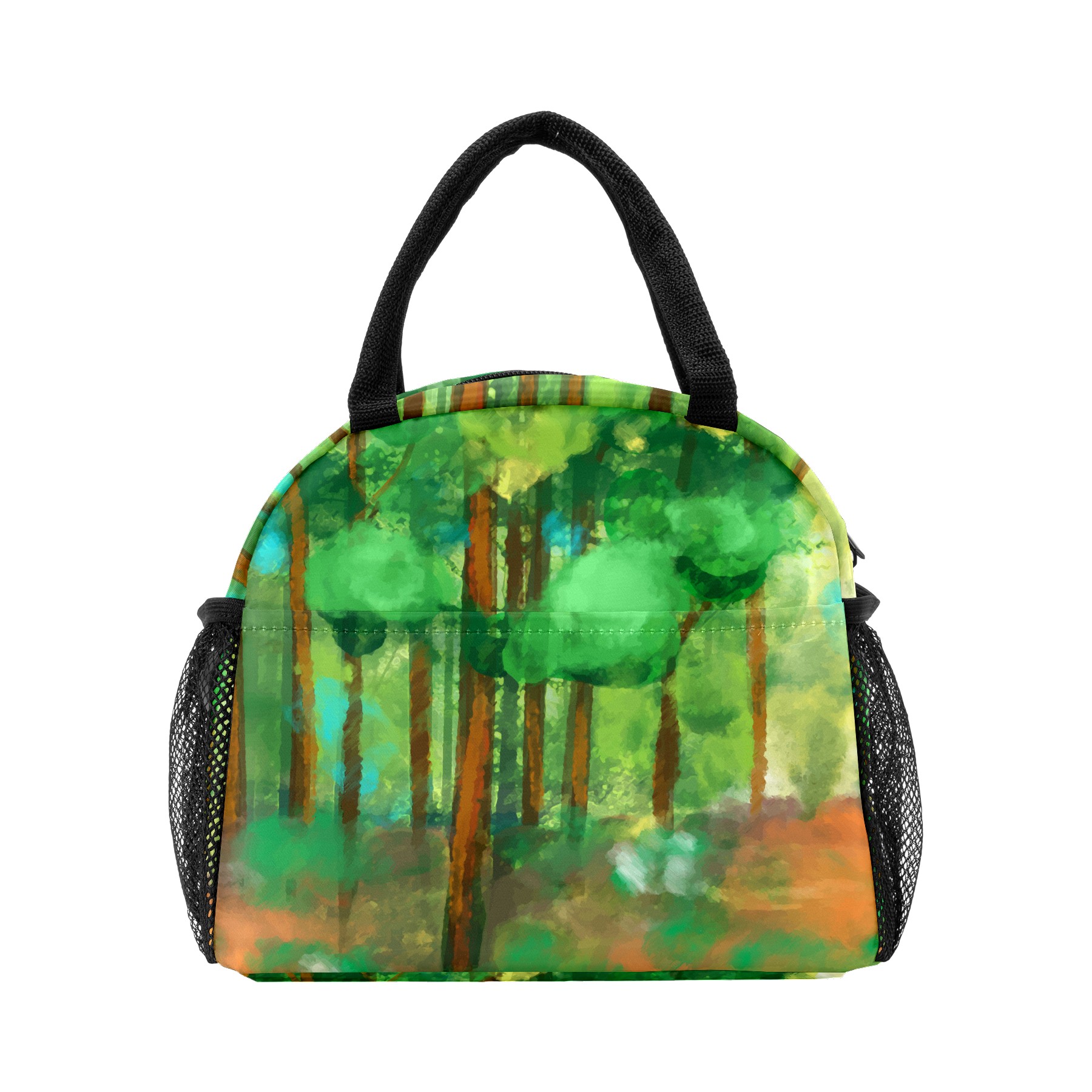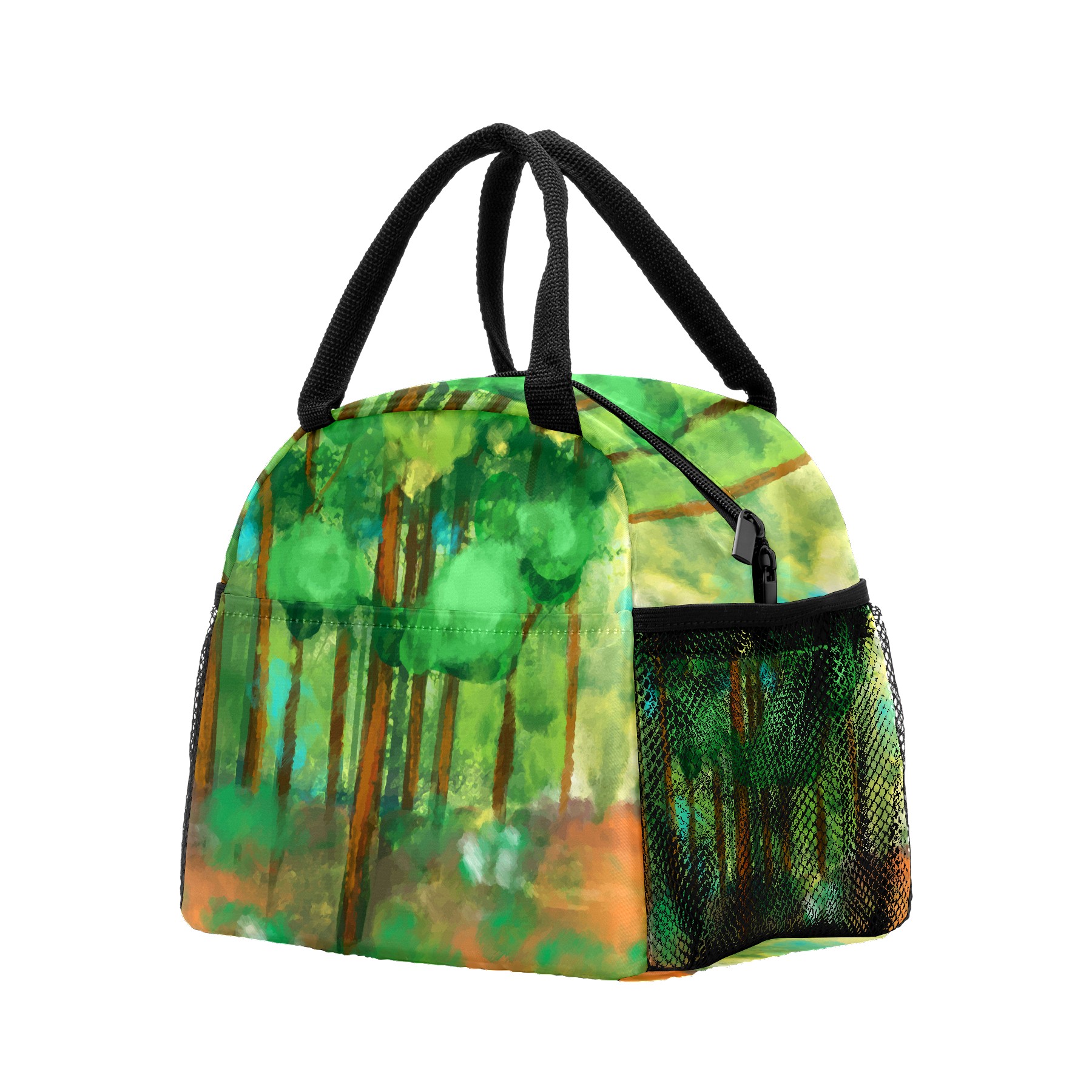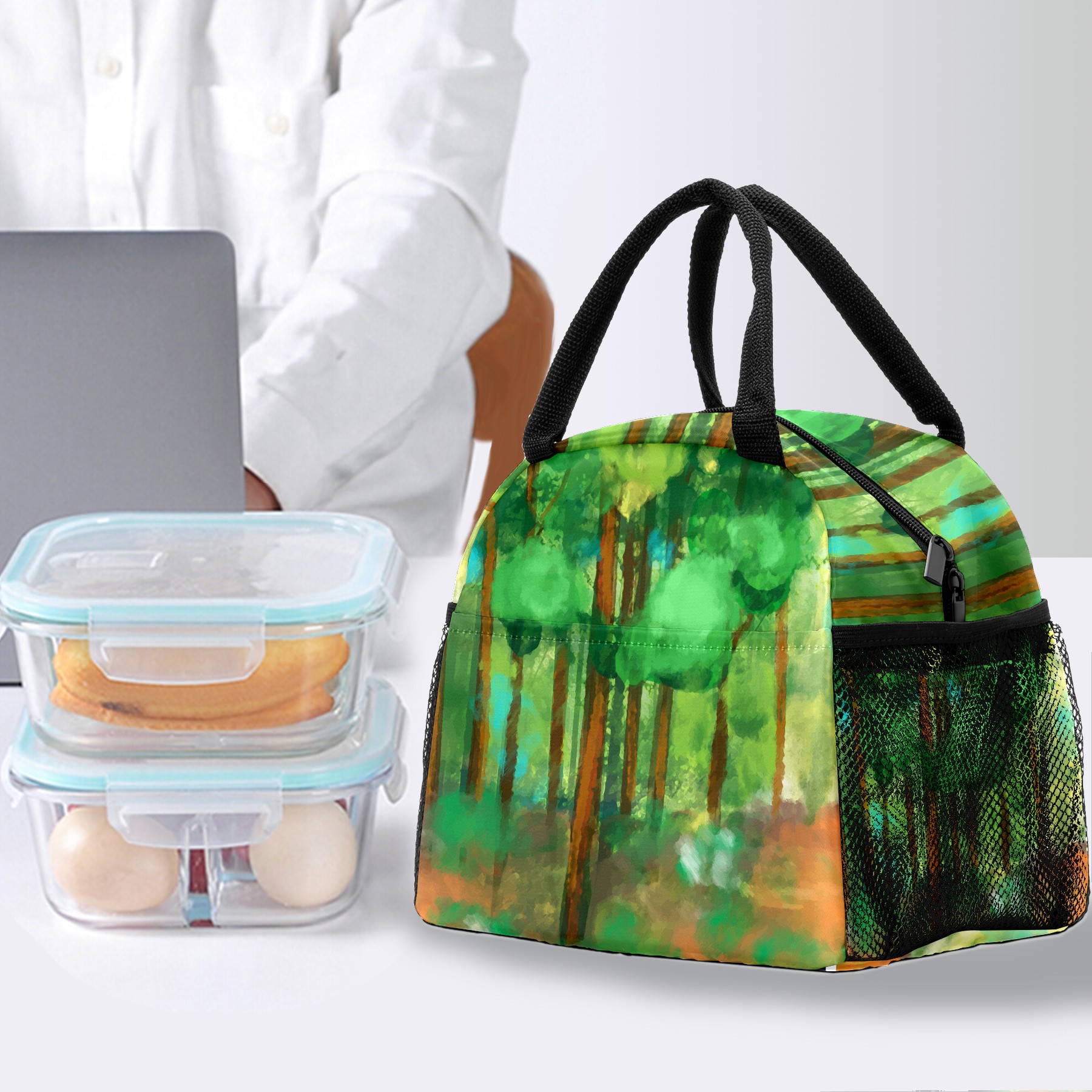 Reusable Lunch Bag Insulated Lunch Box Landscape Of Green Trees Lunch Tote Bag Durable Snacks Organizer for Office Work Hiking Picnic