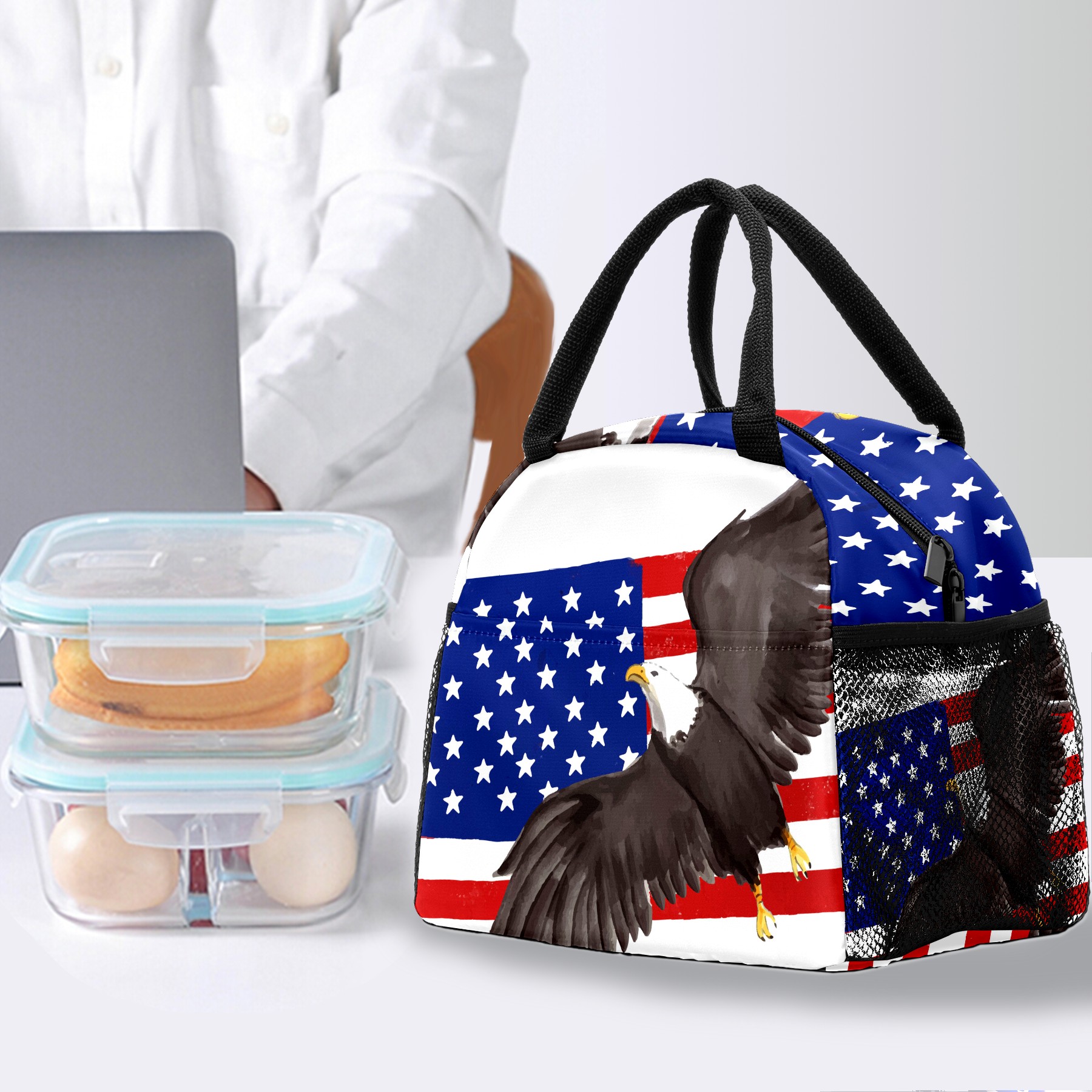 Reusable Lunch Bag Insulated Lunch Box Independence Day Lunch Tote Bag Durable Snacks Organizer for Office Work Hiking Picnic