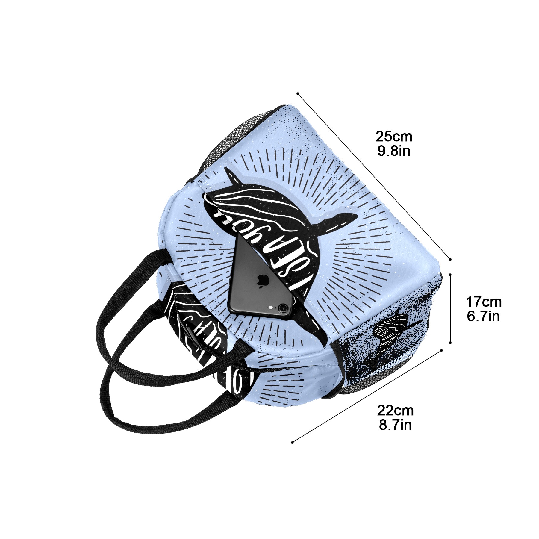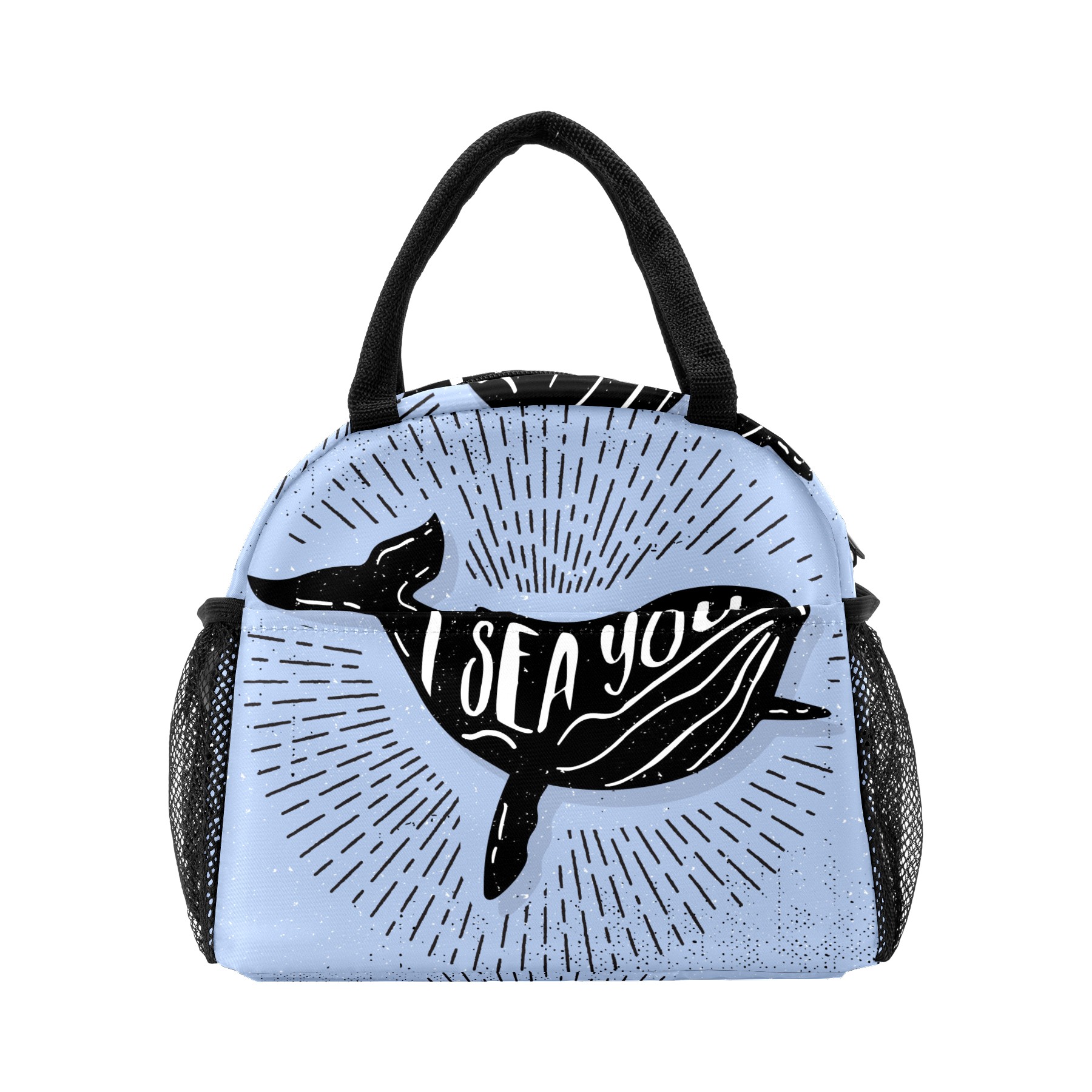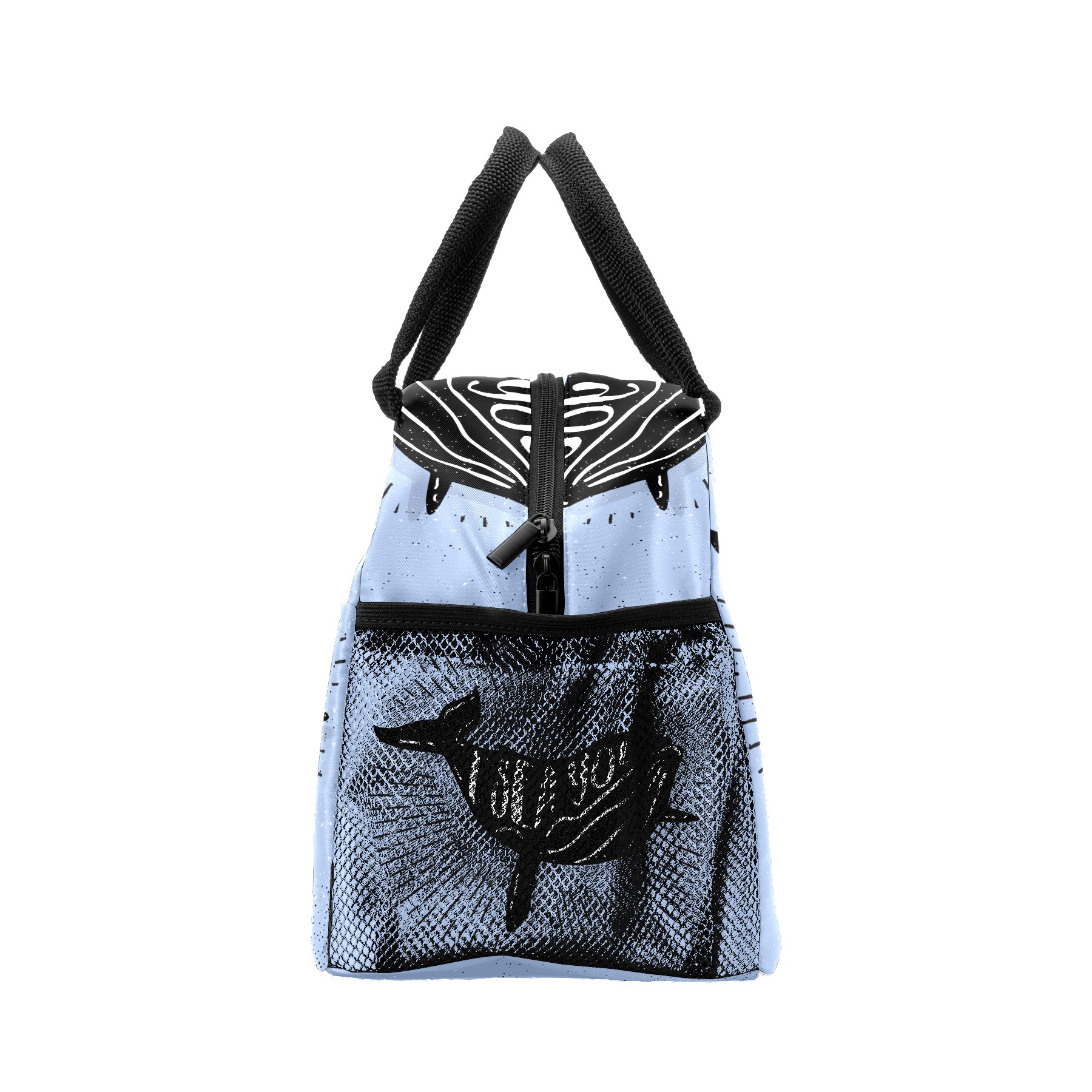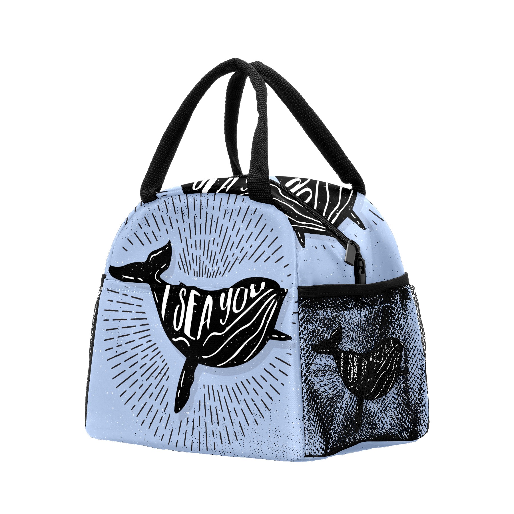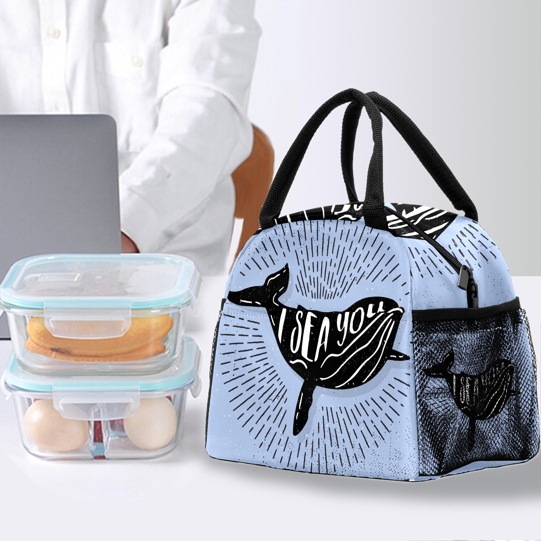Reusable Lunch Bag Insulated Lunch Box Hand Drawn Whale Background Lunch Tote Bag Durable Snacks Organizer for Office Work Hiking Picnic