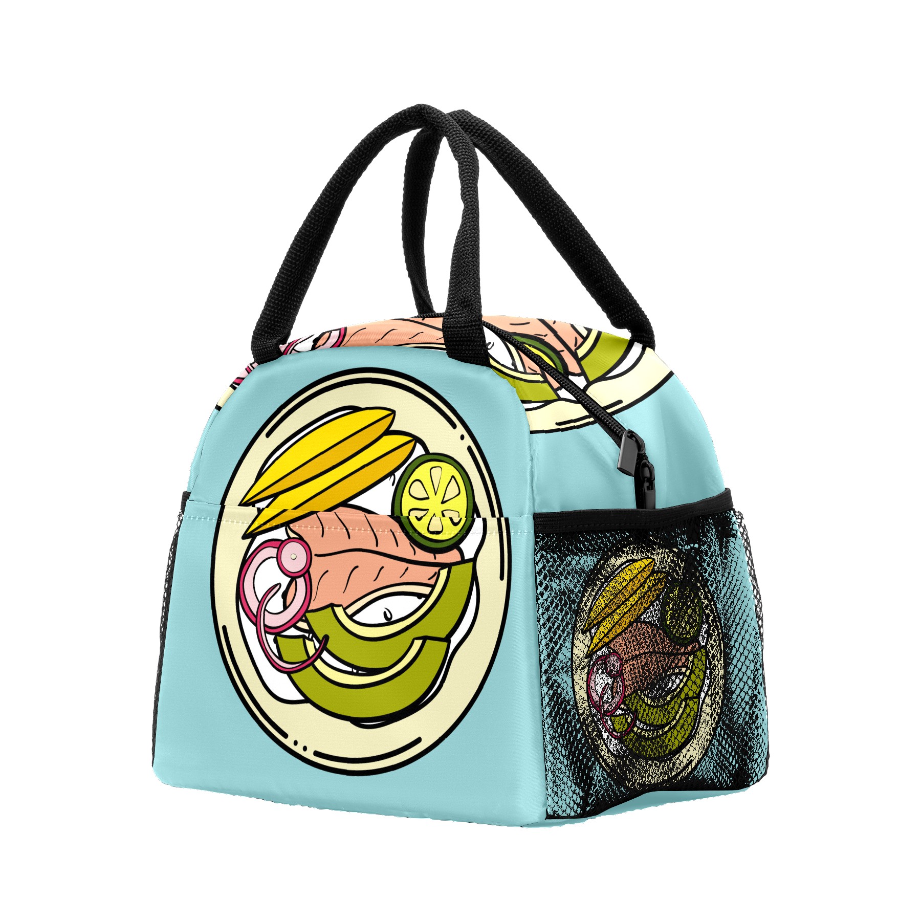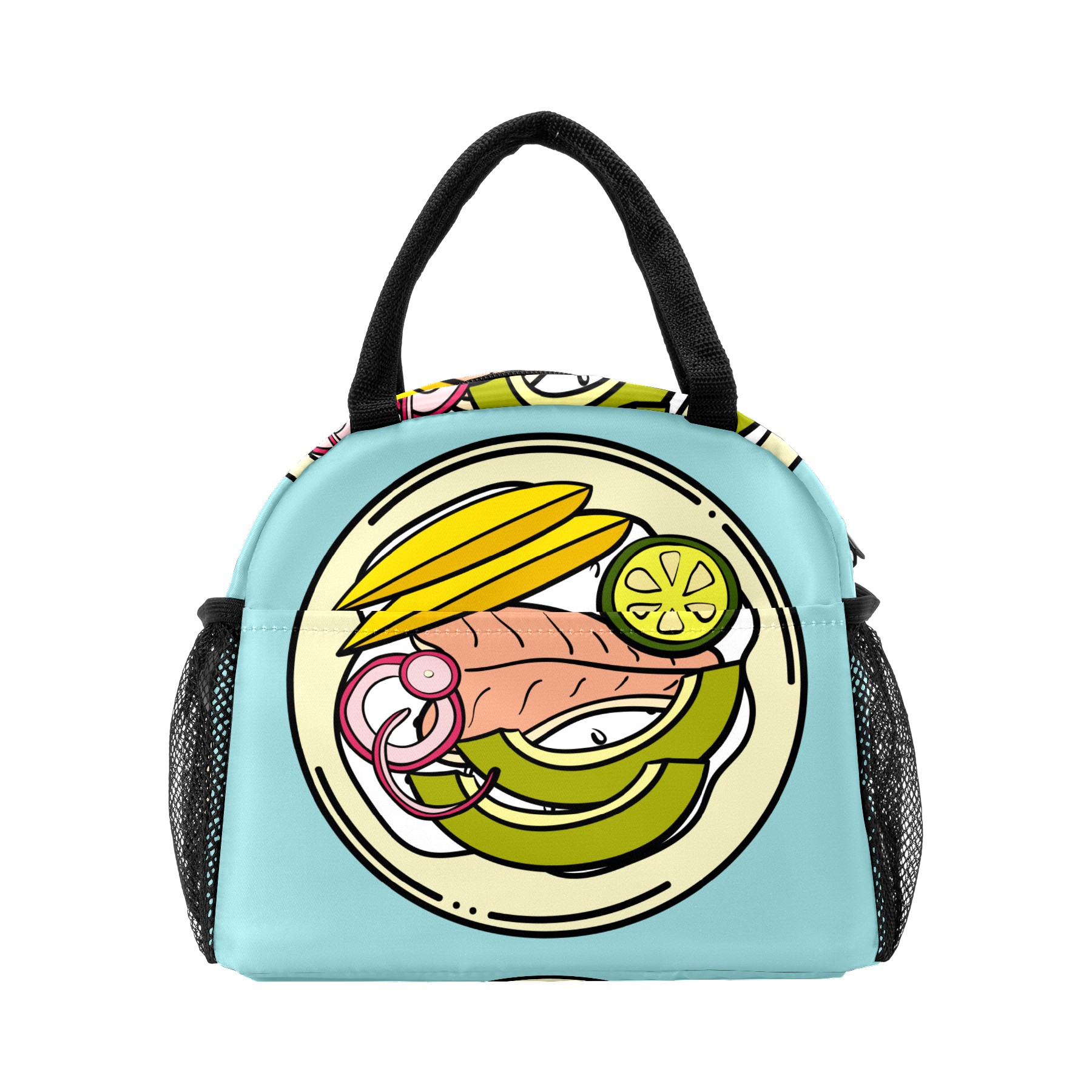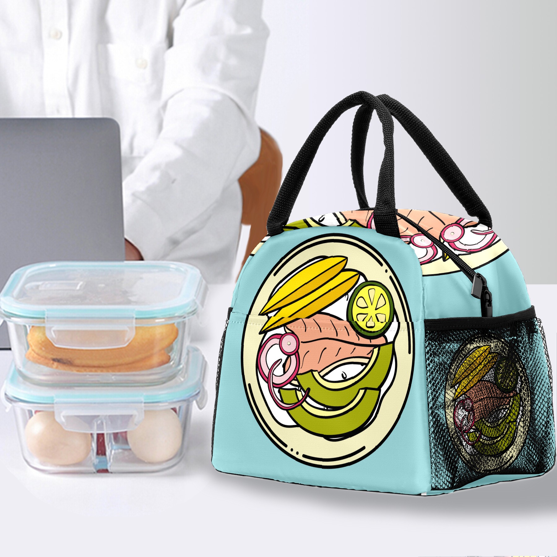 Reusable Lunch Bag Insulated Lunch Box Hand Drawn Fish Lunch Tote Bag Durable Snacks Organizer for Office Work Hiking Picnic