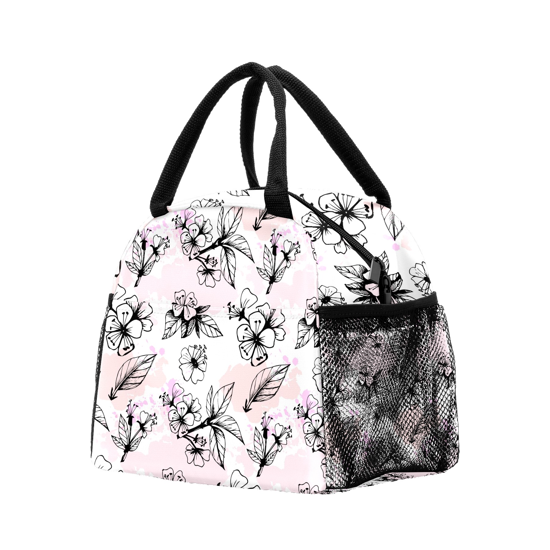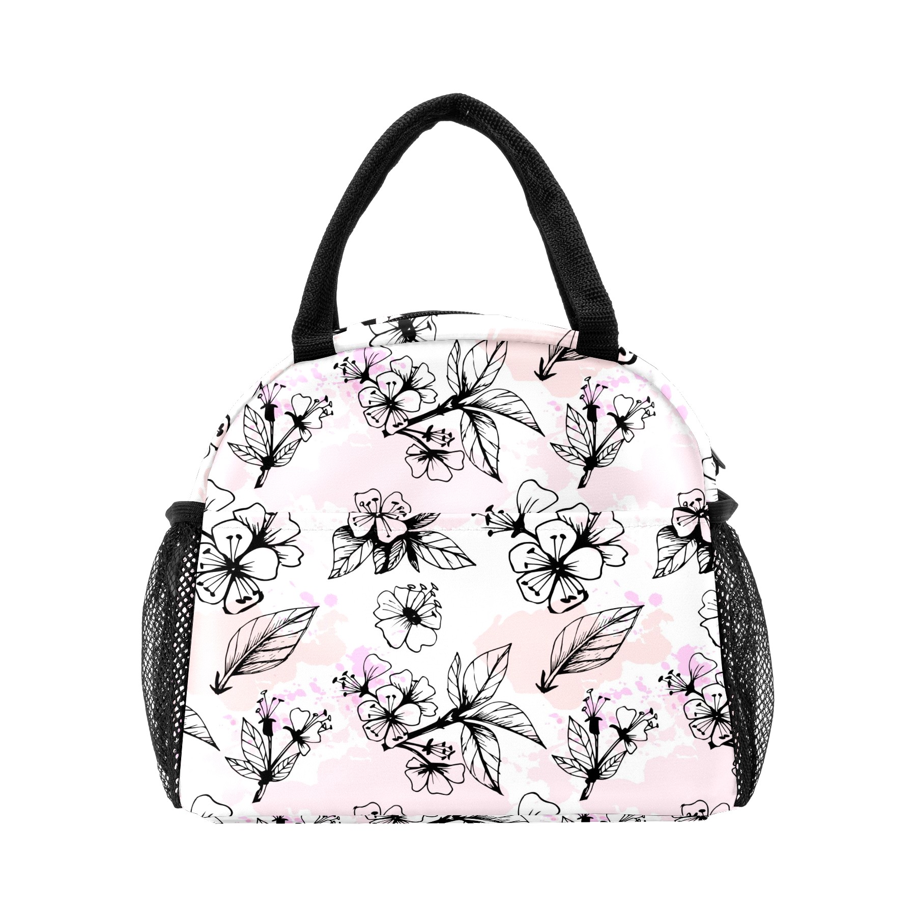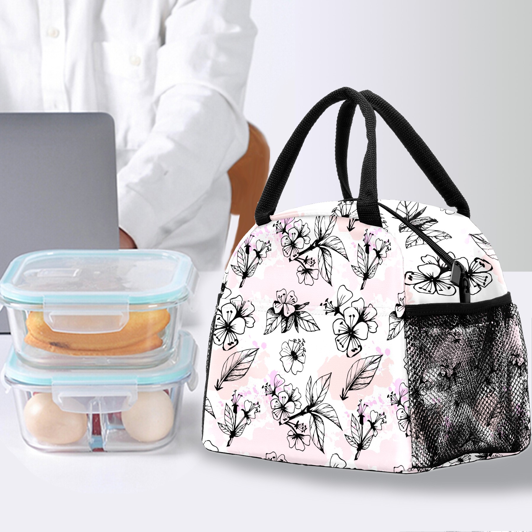 Reusable Lunch Bag Insulated Lunch Box Hand Drawn Watercolor Floral Pattern Lunch Tote Bag Durable Snacks Organizer for Office Work Hiking Picnic