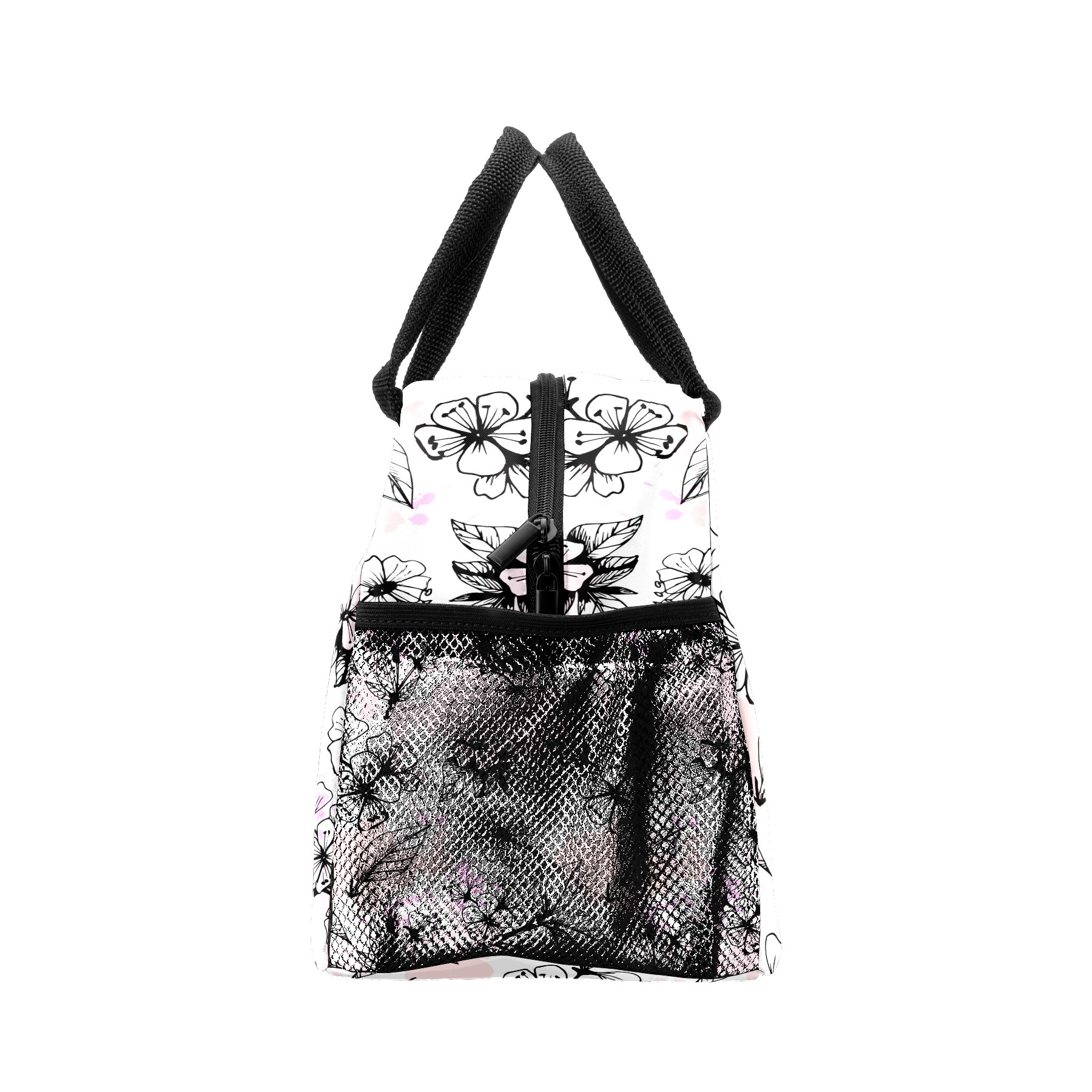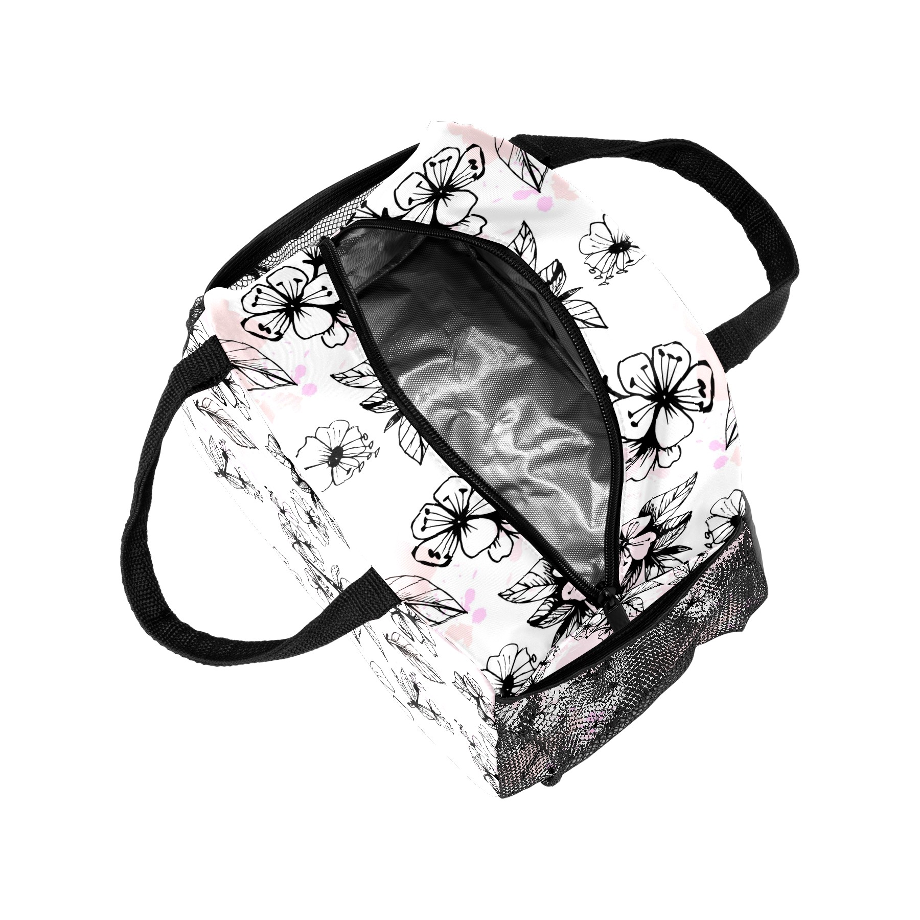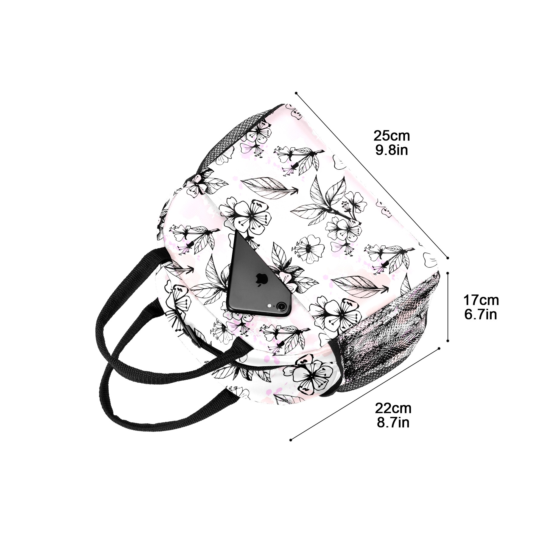 Reusable Lunch Bag Insulated Lunch Box Hand Drawn Watercolor Floral Pattern Lunch Tote Bag Durable Snacks Organizer for Office Work Hiking Picnic