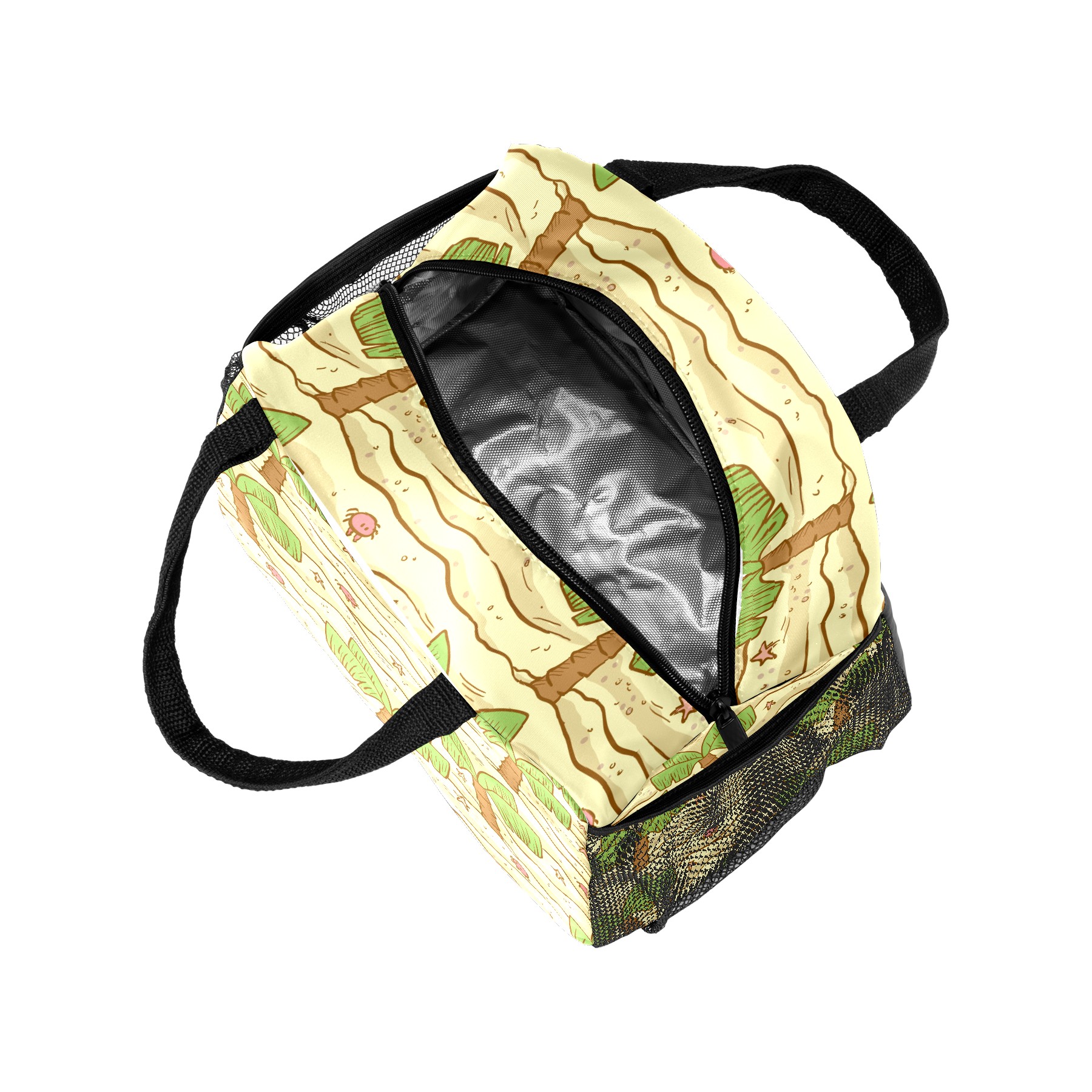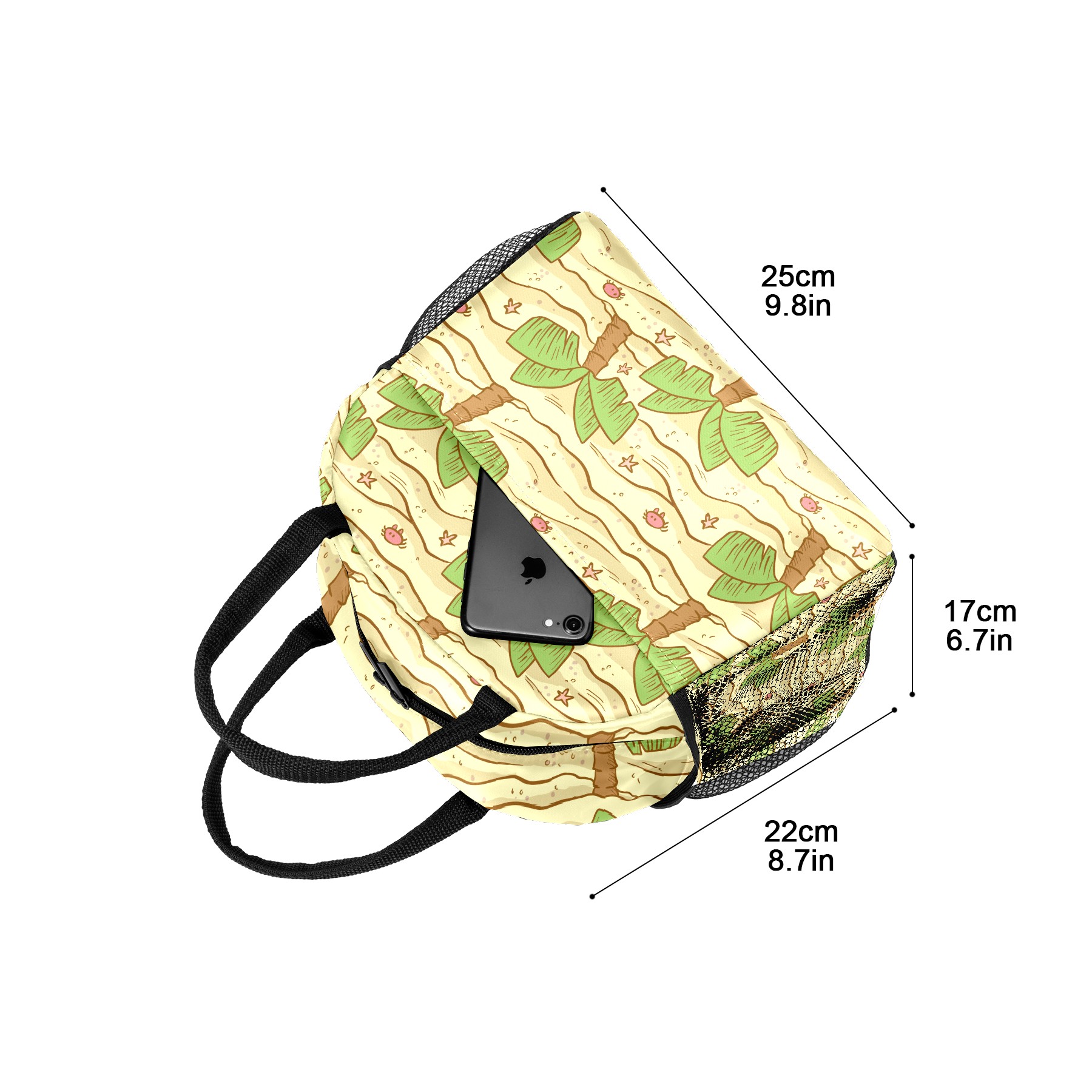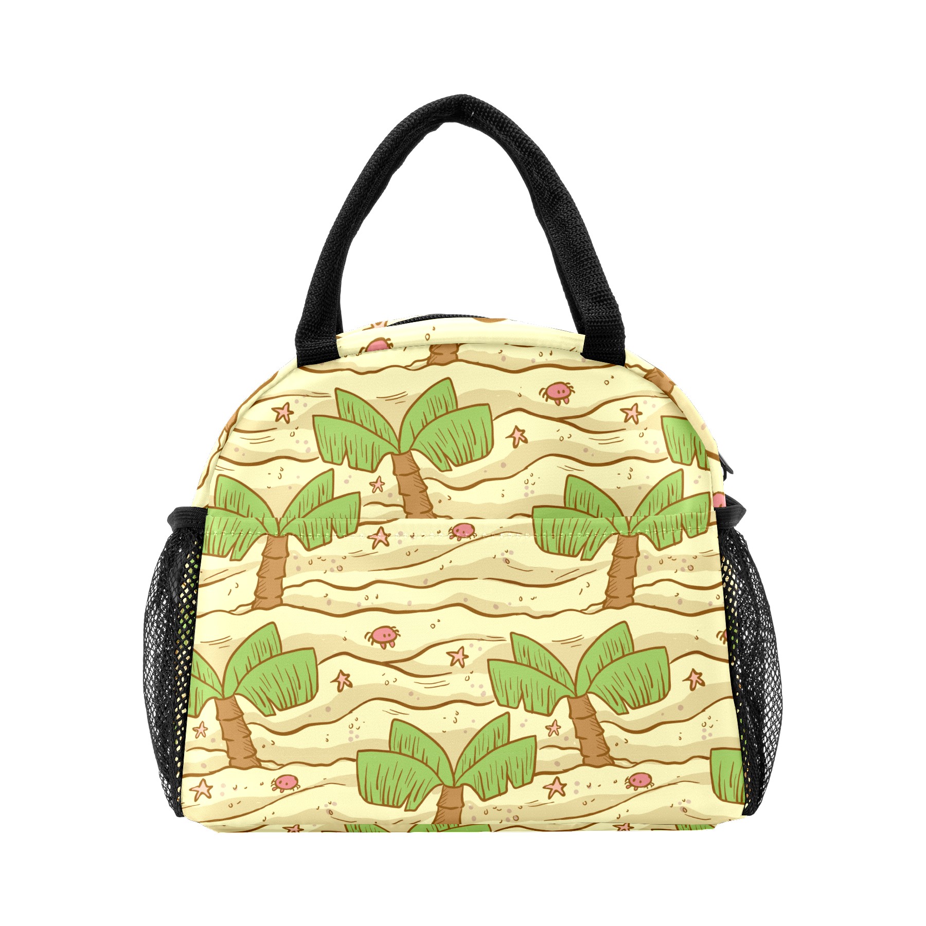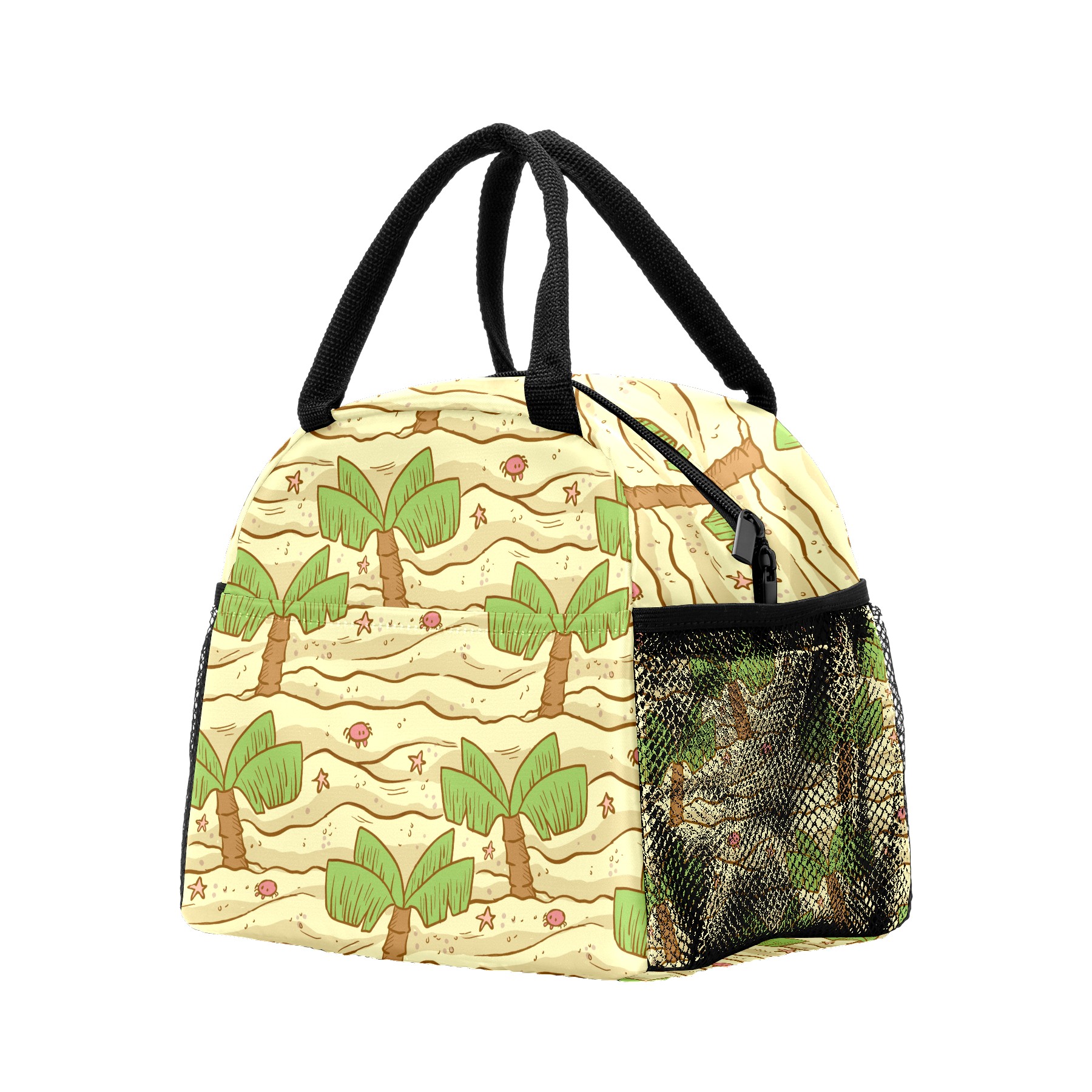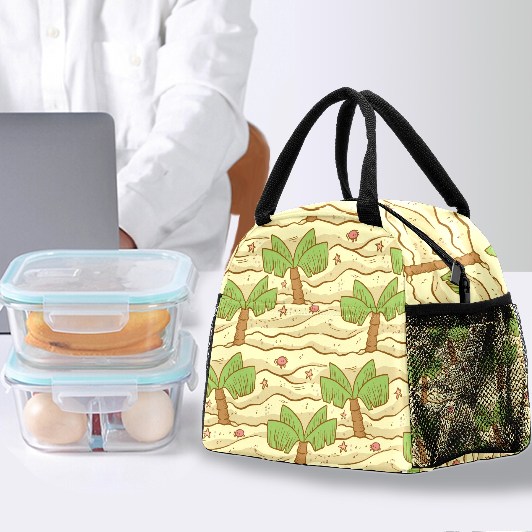 Reusable Lunch Bag Insulated Lunch Box Hand Drawn Palm Trees On The Beach Pattern Lunch Tote Bag Durable Snacks Organizer for Office Work Hiking Picnic