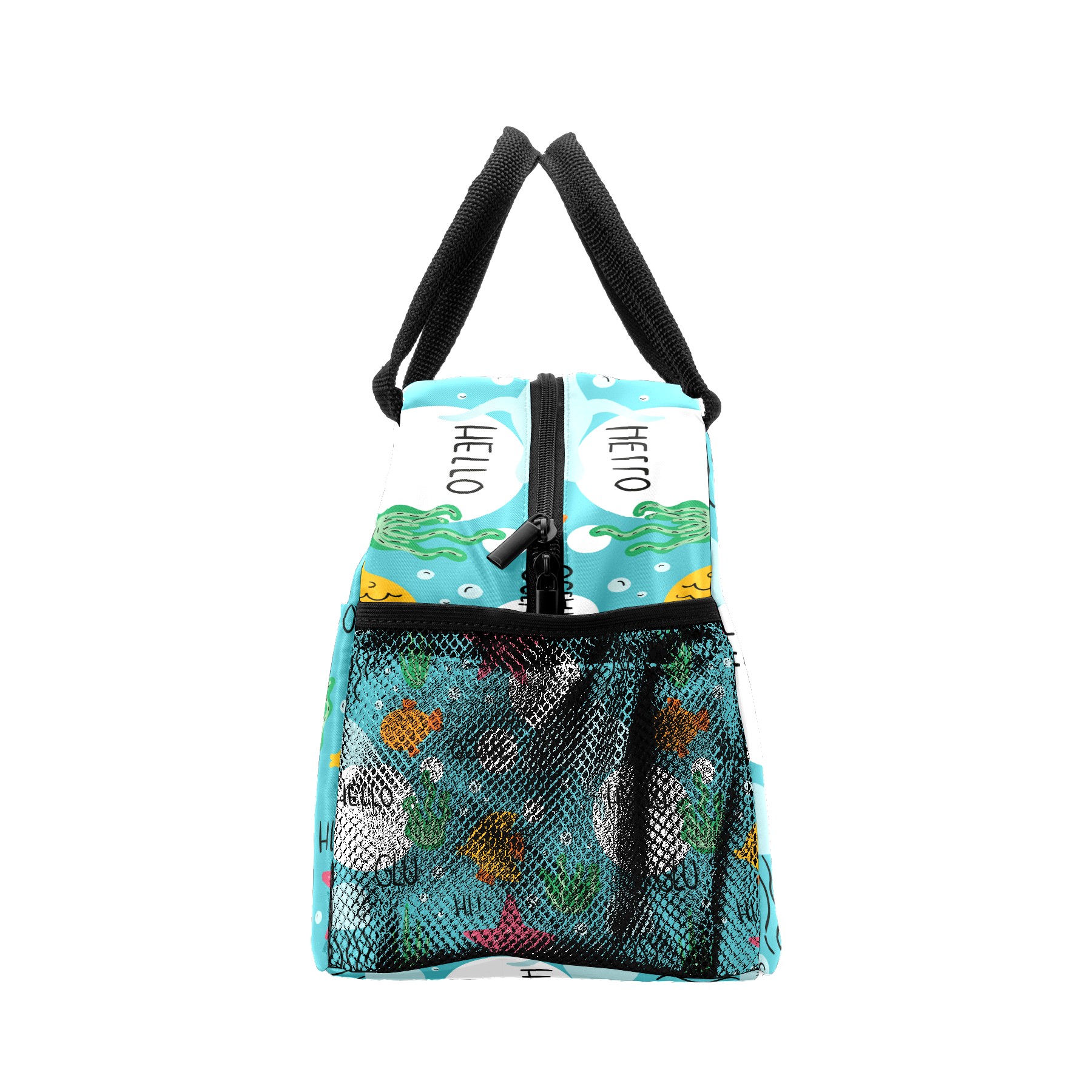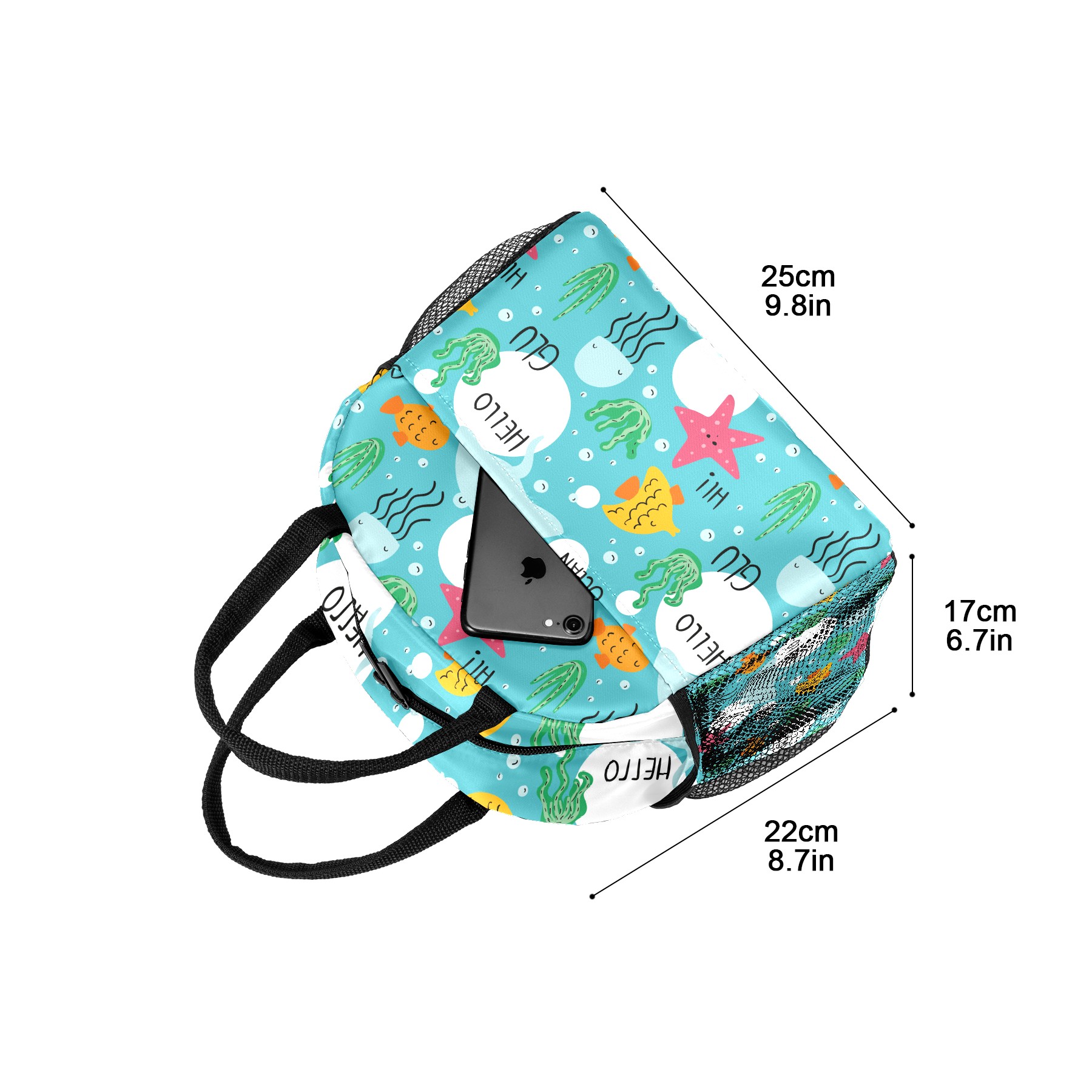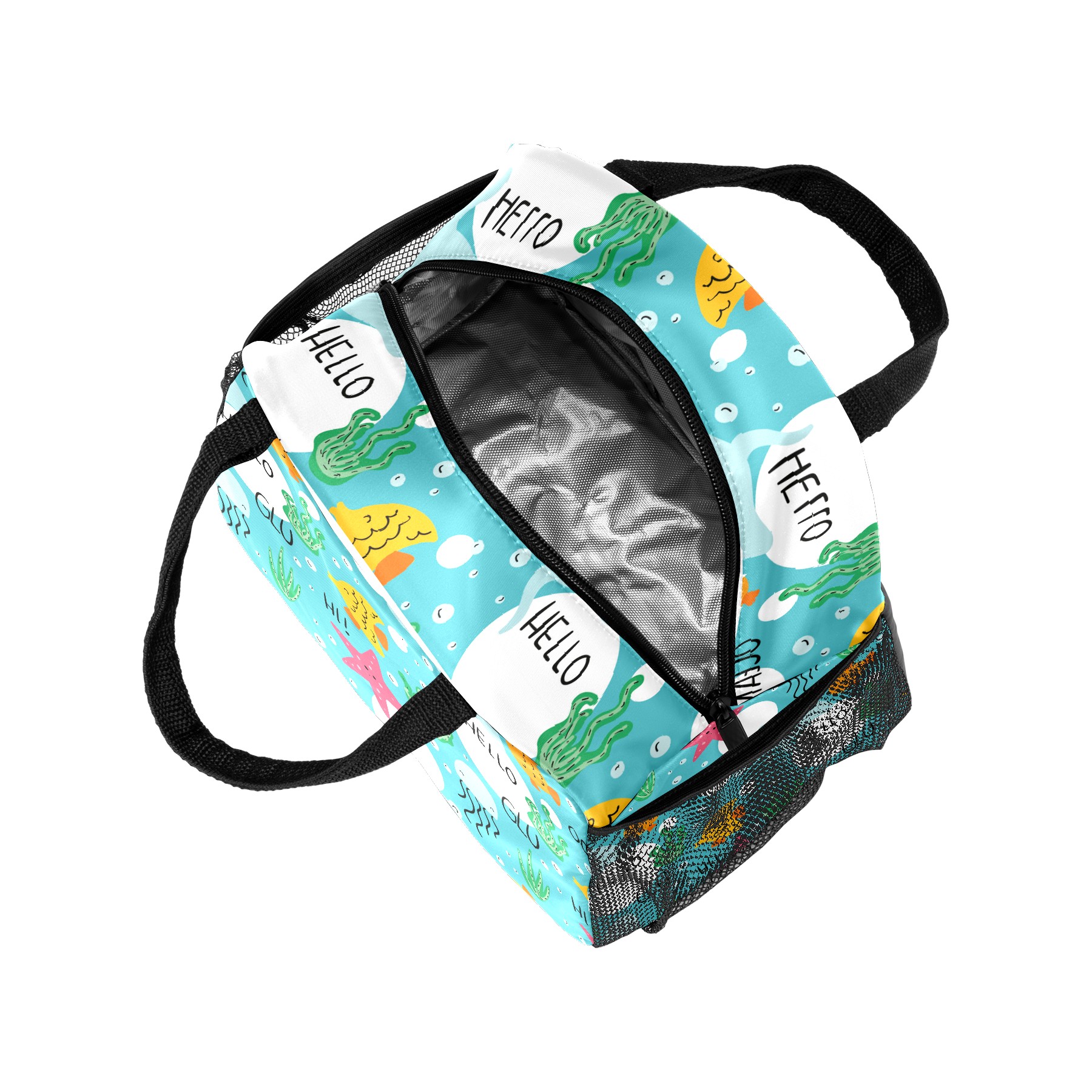 Reusable Lunch Bag Insulated Lunch Box Hand Drawn Sea Animals Lunch Tote Bag Durable Snacks Organizer for Office Work Hiking Picnic
