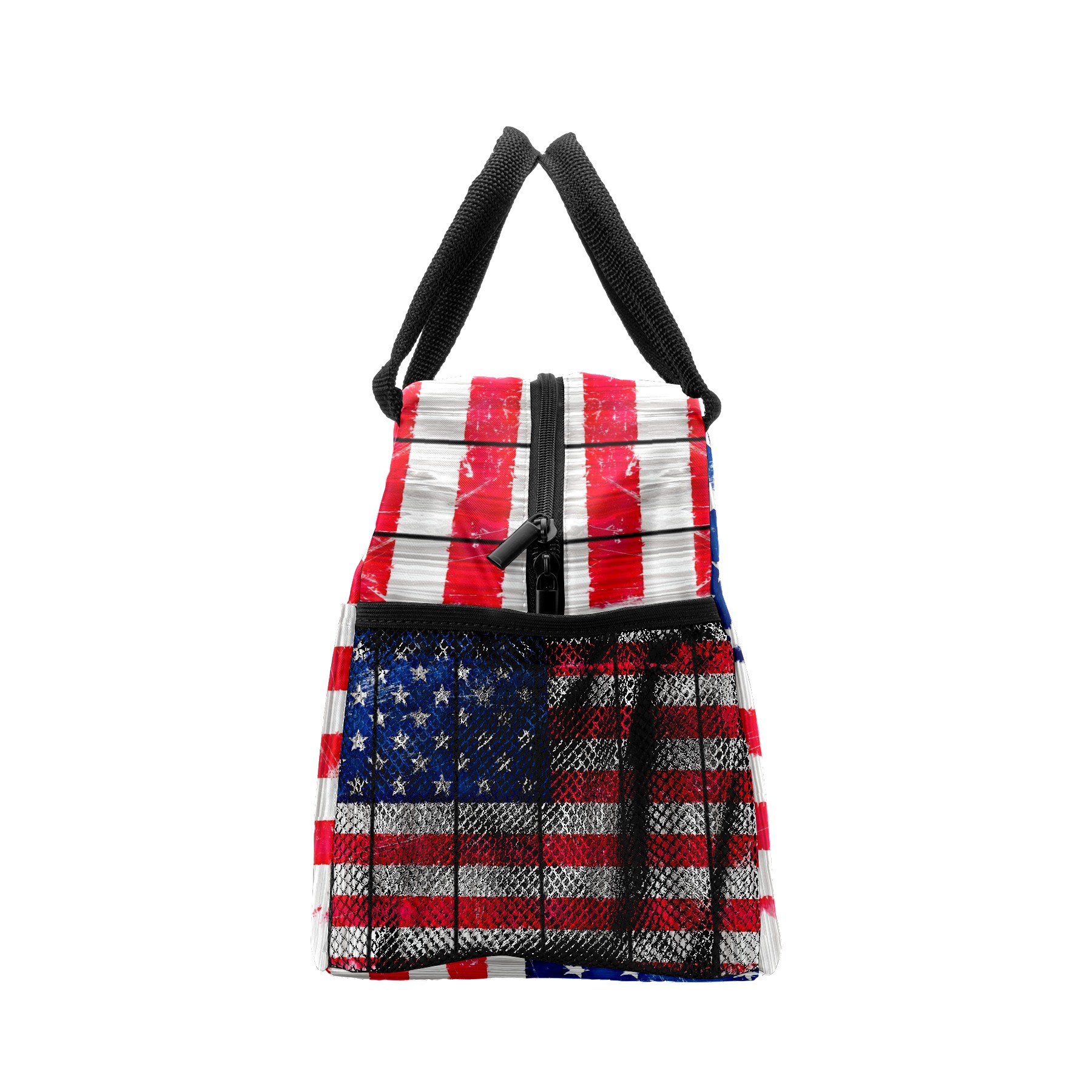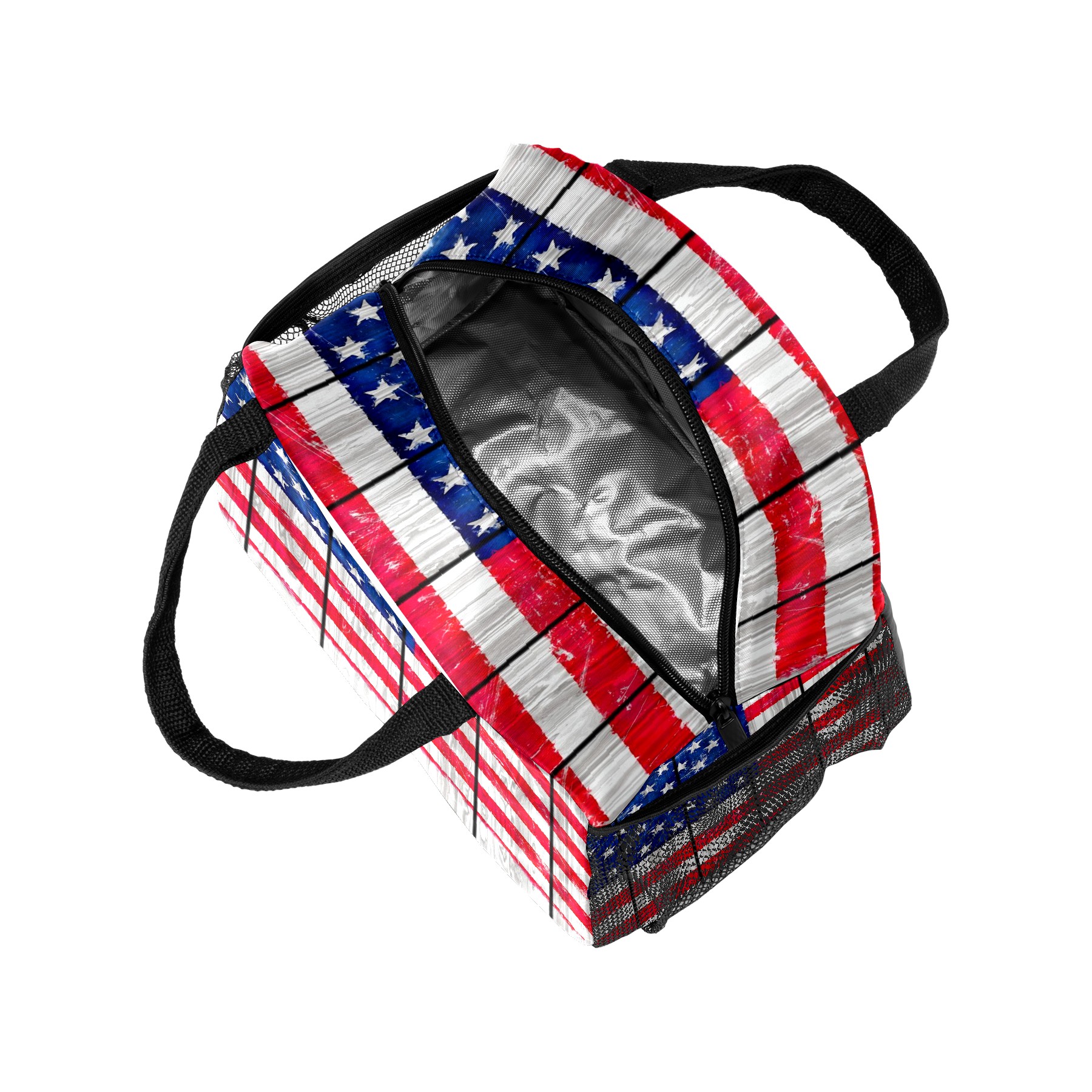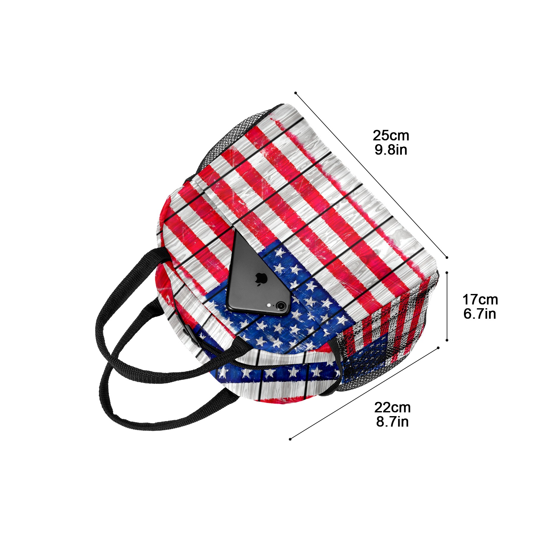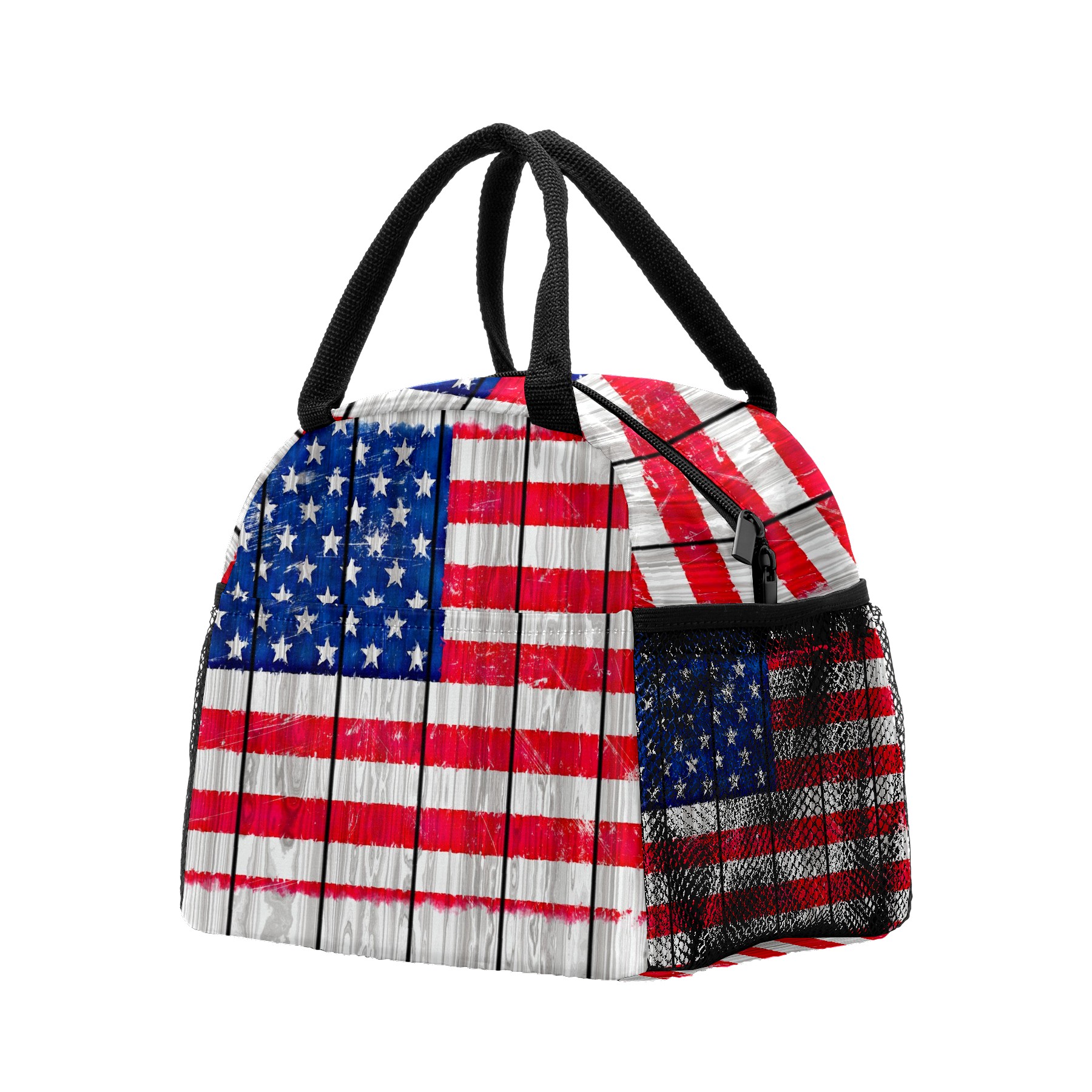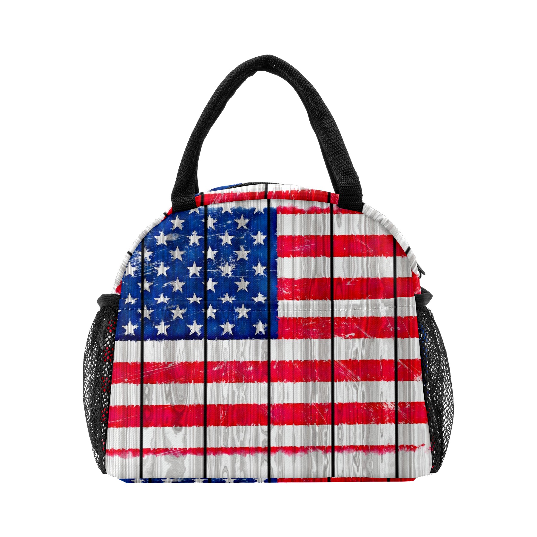 Reusable Lunch Bag Insulated Lunch Box Grunge Style America Flag On A Wooden Texture Background Lunch Tote Bag Durable Snacks Organizer for Office Work Hiking Picnic