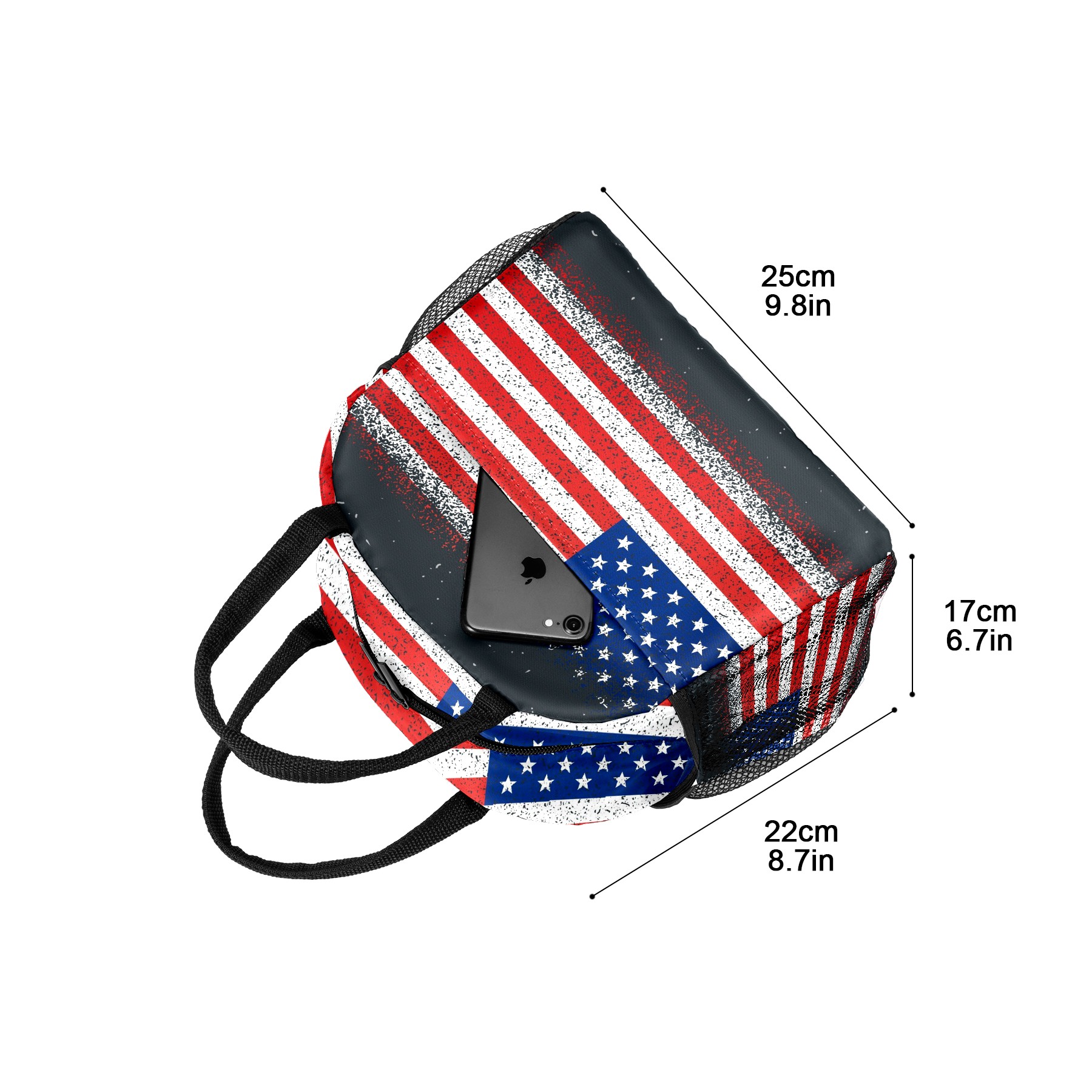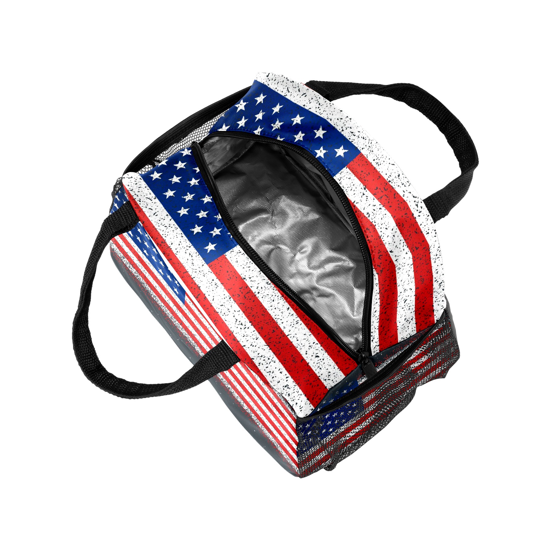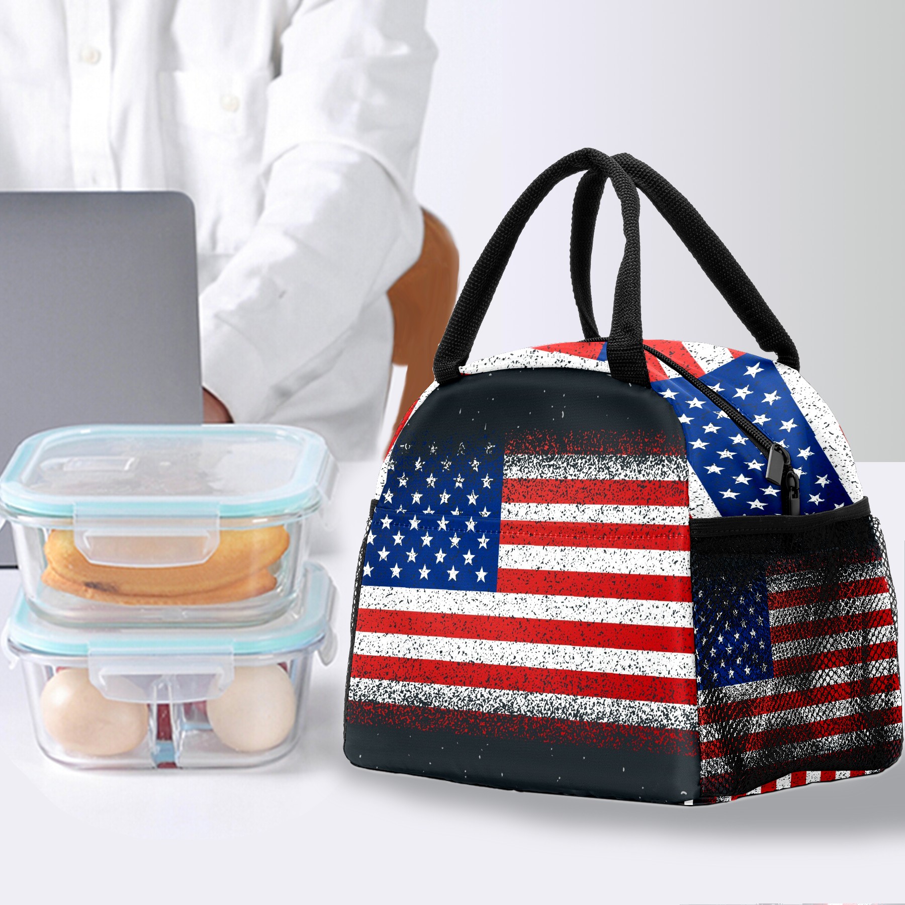 Reusable Lunch Bag Insulated Lunch Box Grunge Textured Flag Of America Lunch Tote Bag Durable Snacks Organizer for Office Work Hiking Picnic