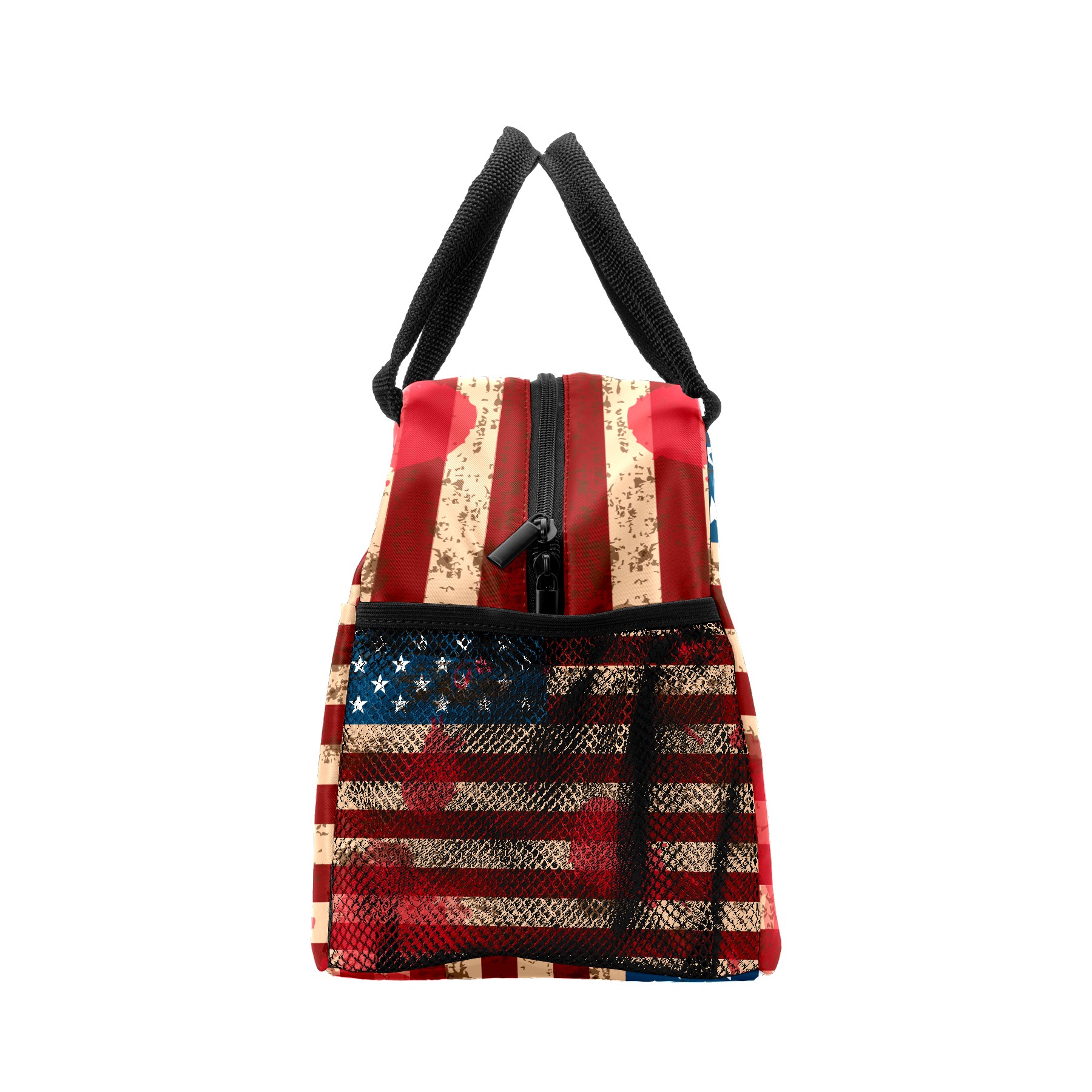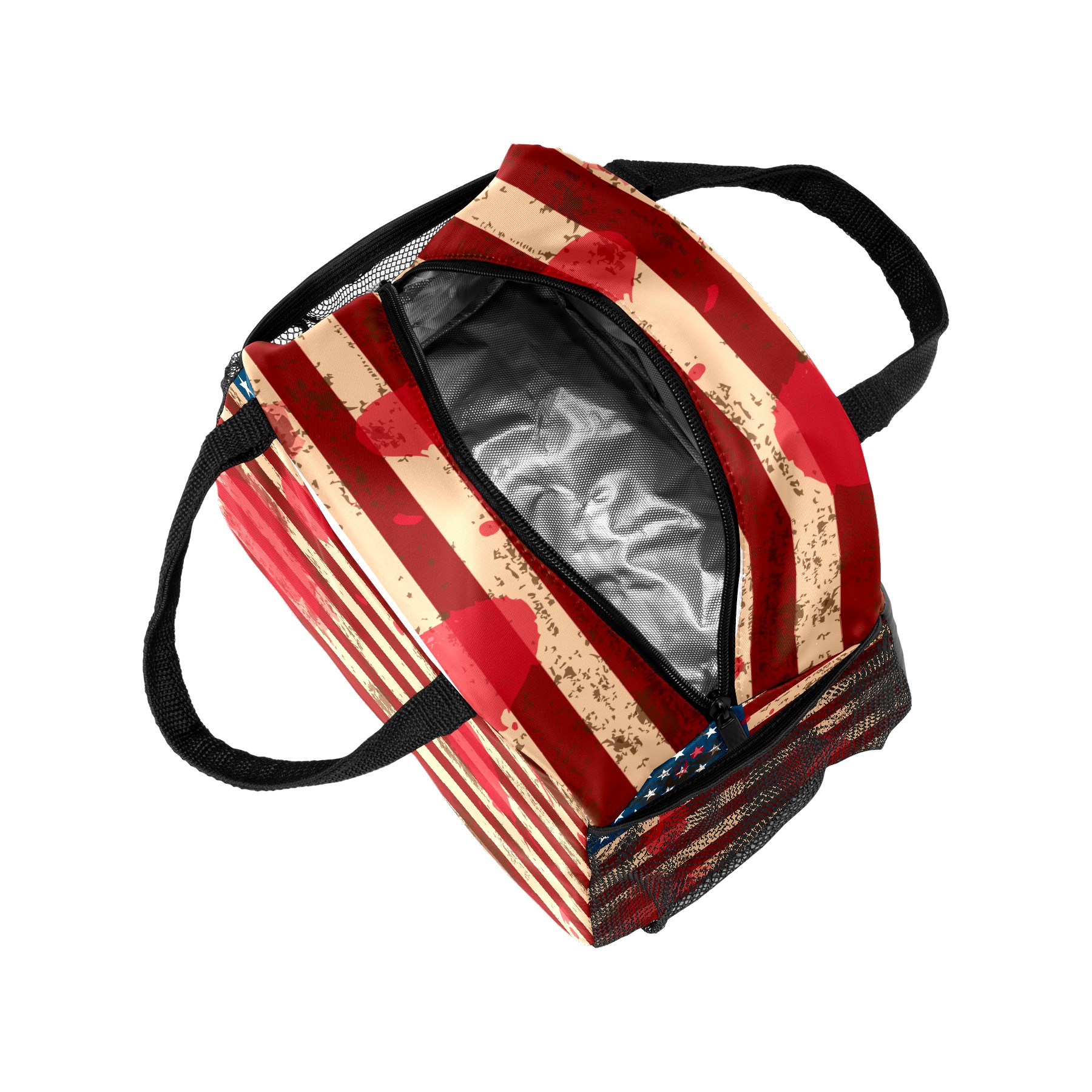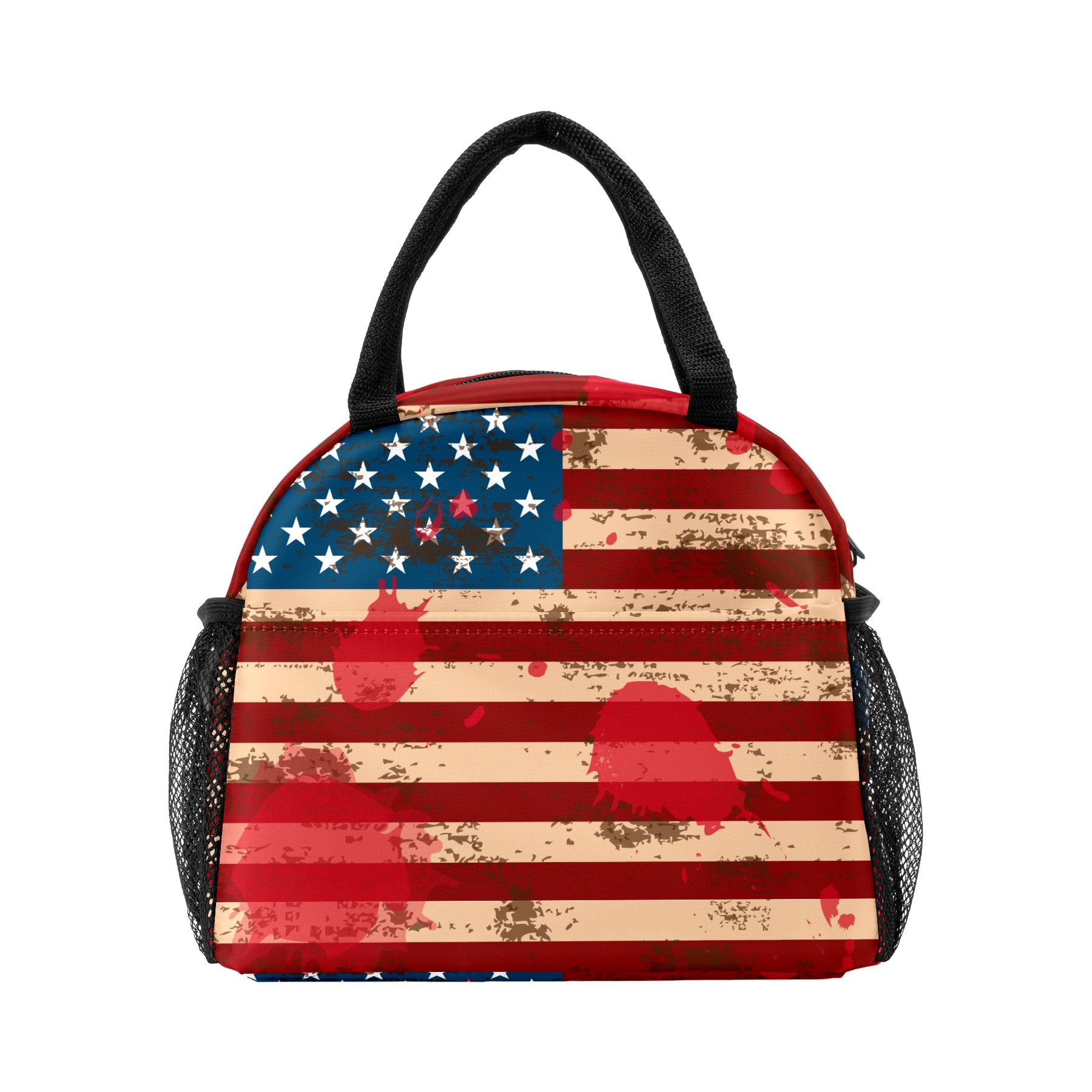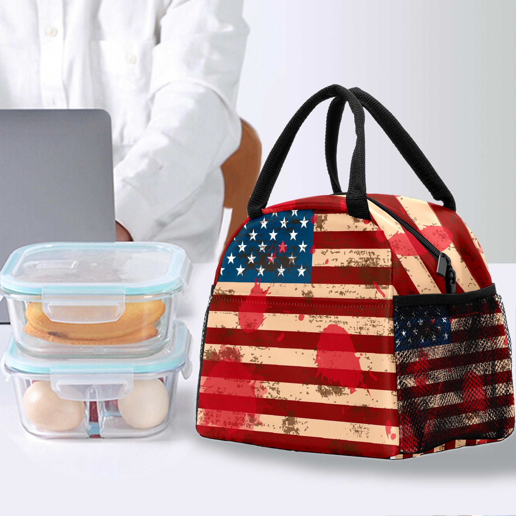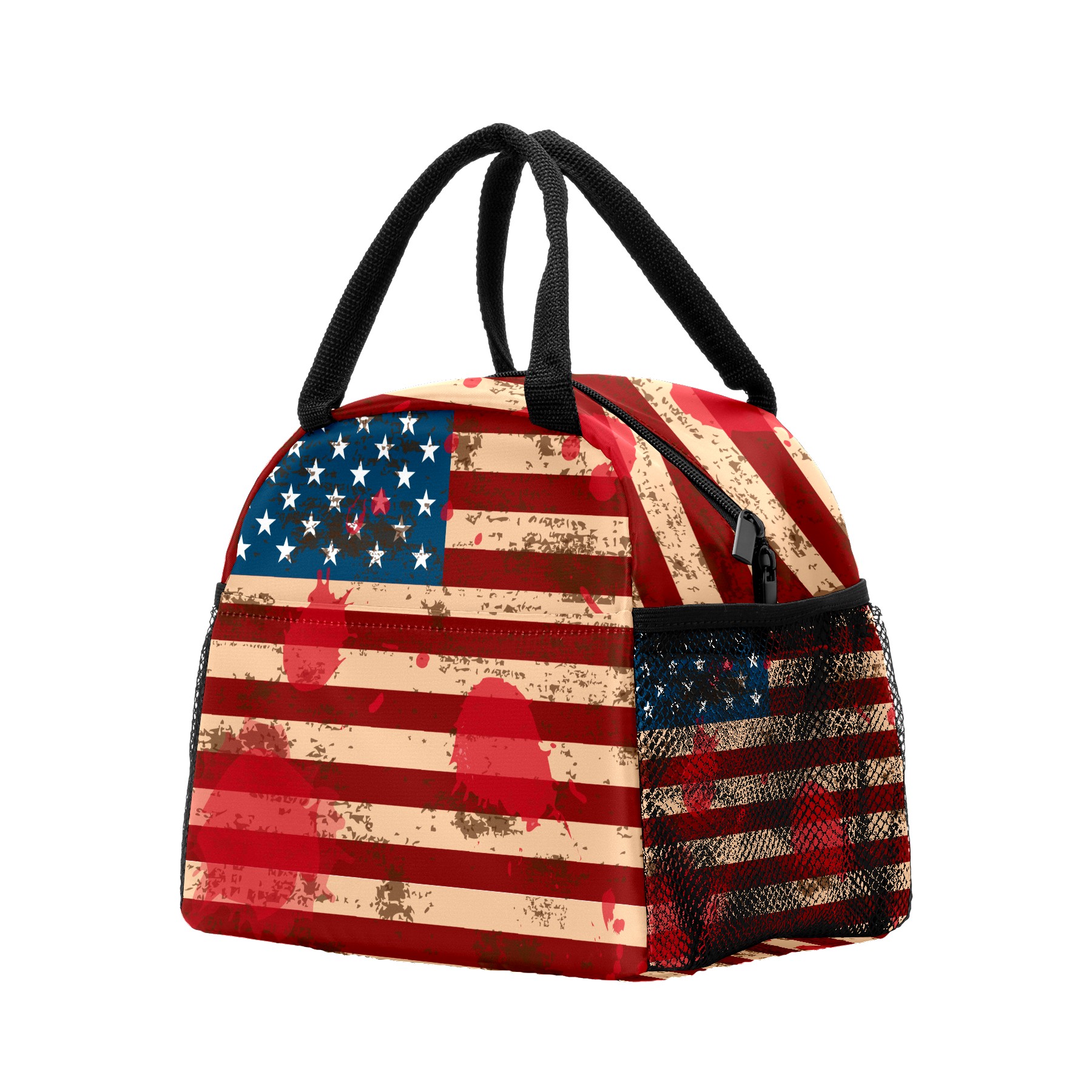 Reusable Lunch Bag Insulated Lunch Box Grunge Usa Flag With Paint Lunch Tote Bag Durable Snacks Organizer for Office Work Hiking Picnic