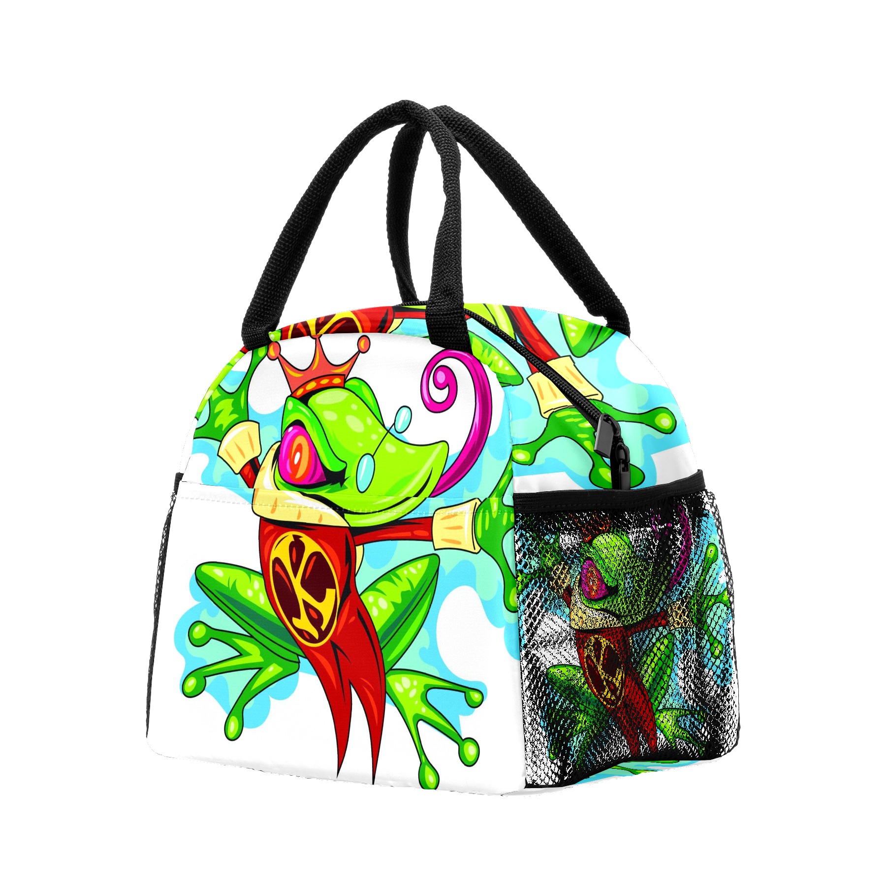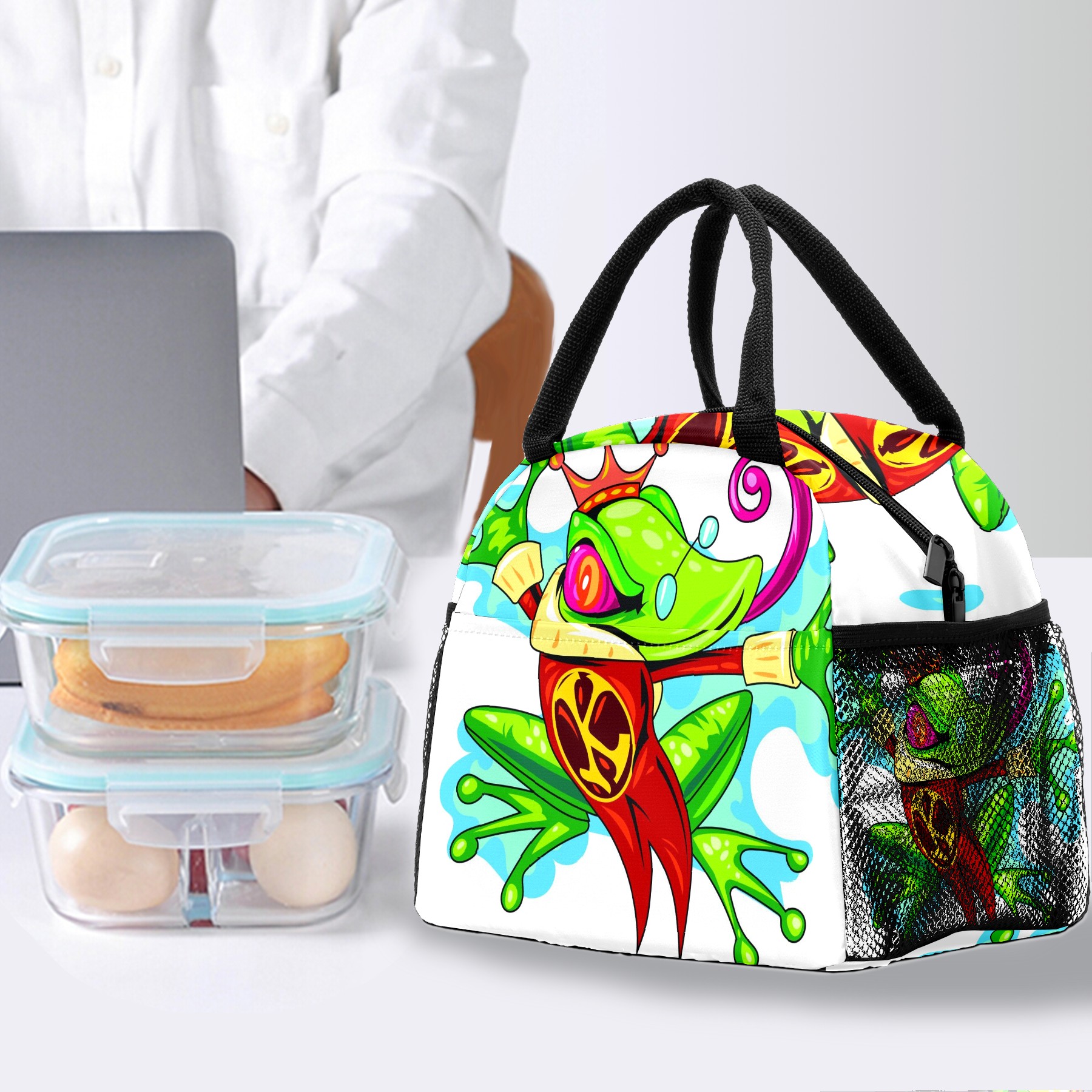 Reusable Lunch Bag Insulated Lunch Box Frog With Crown Lunch Tote Bag Durable Snacks Organizer for Office Work Hiking Picnic
