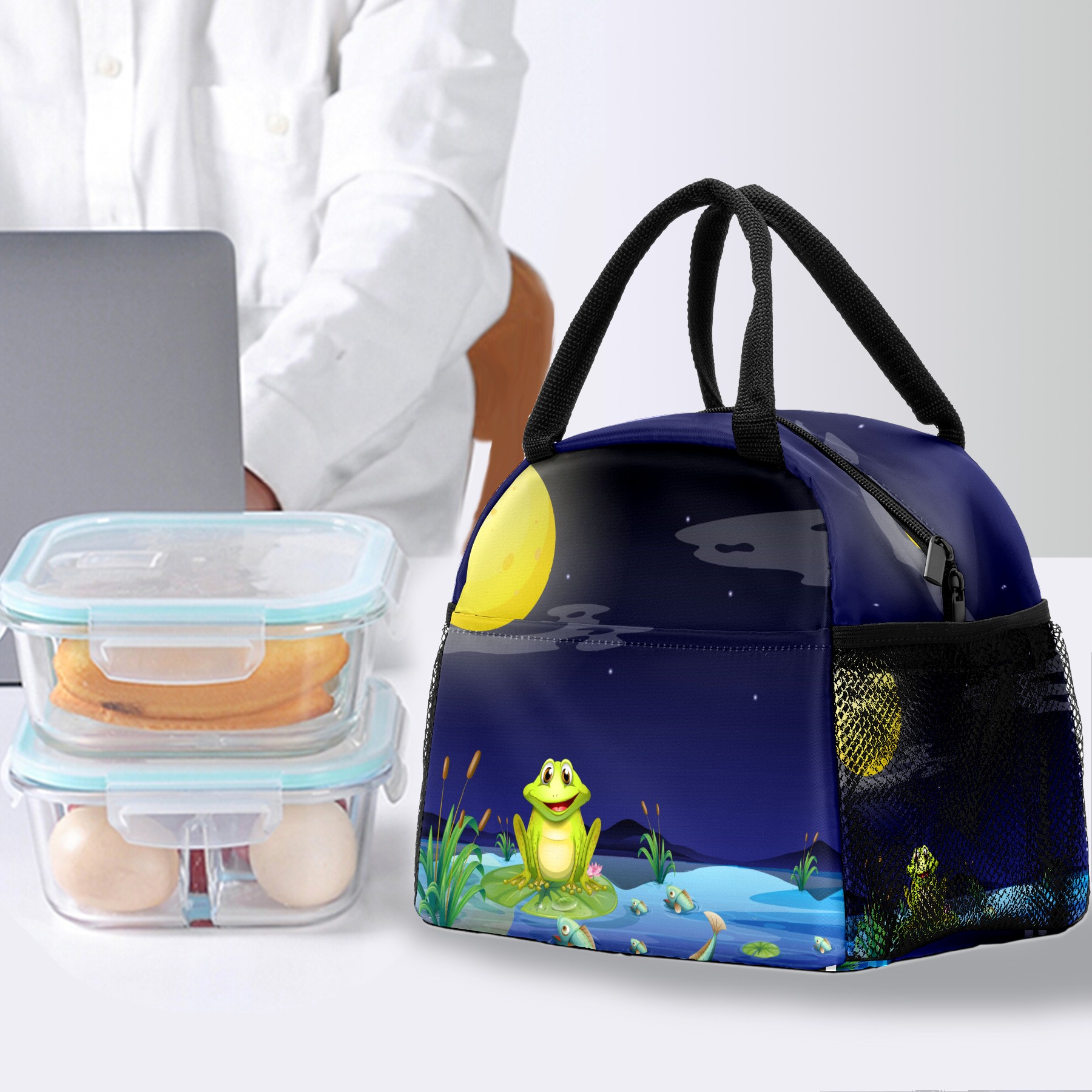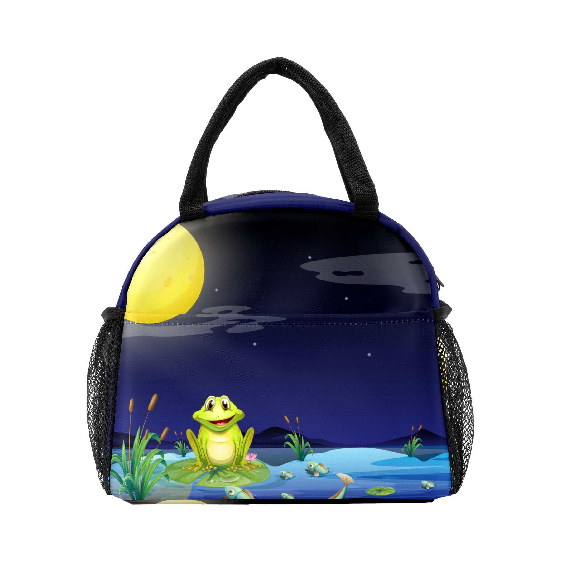 Reusable Lunch Bag Insulated Lunch Box Frog And Fishes At The Lake Lunch Tote Bag Durable Snacks Organizer for Office Work Hiking Picnic