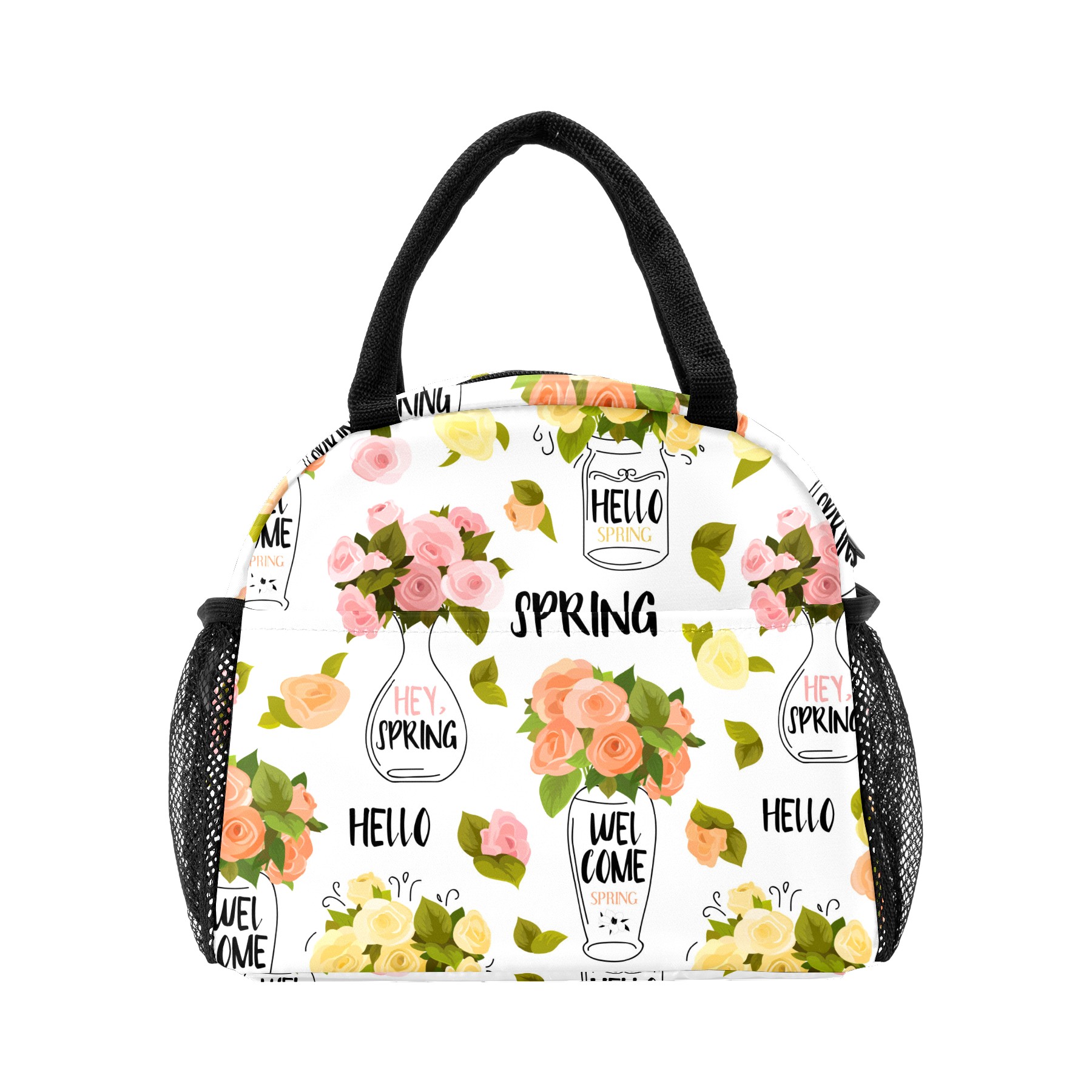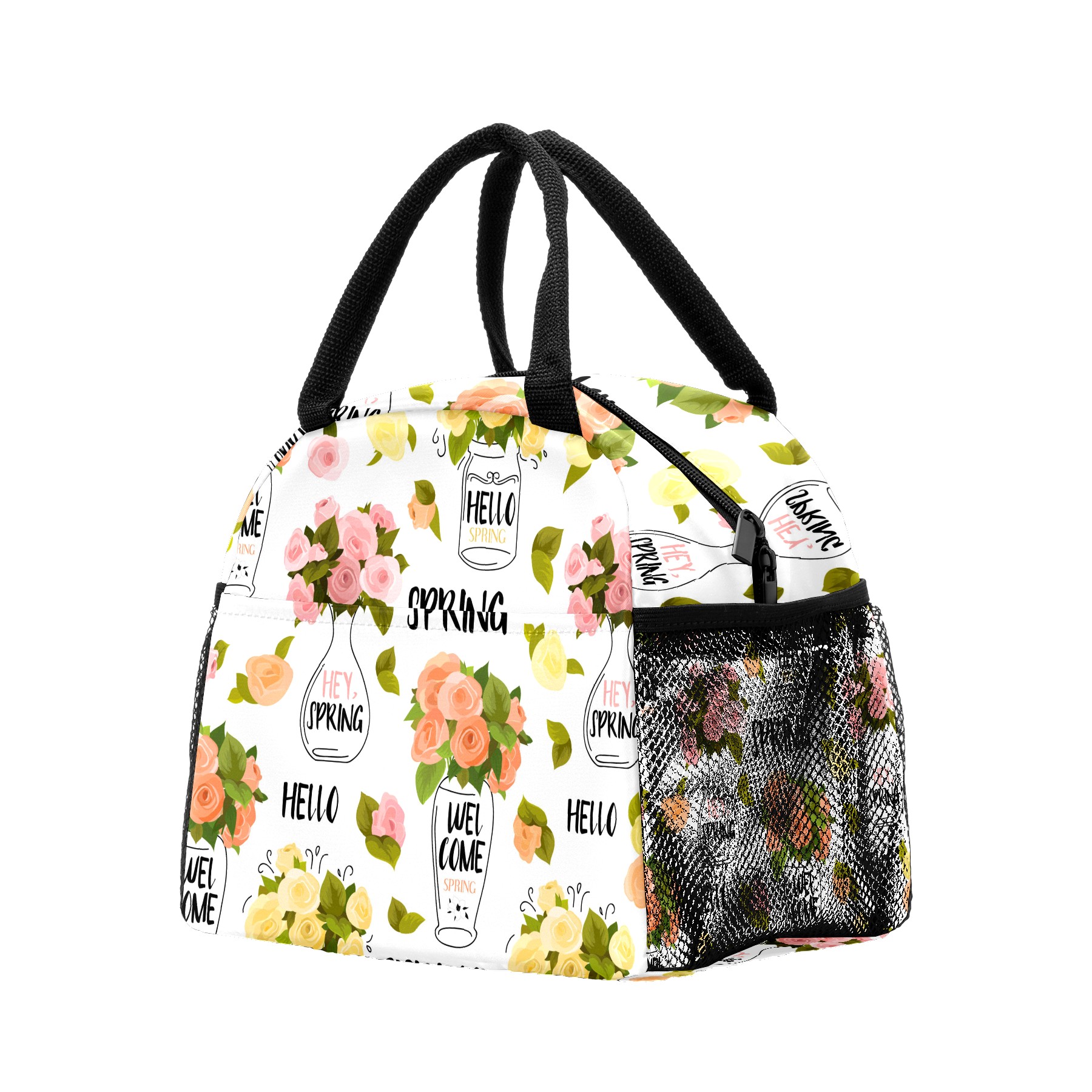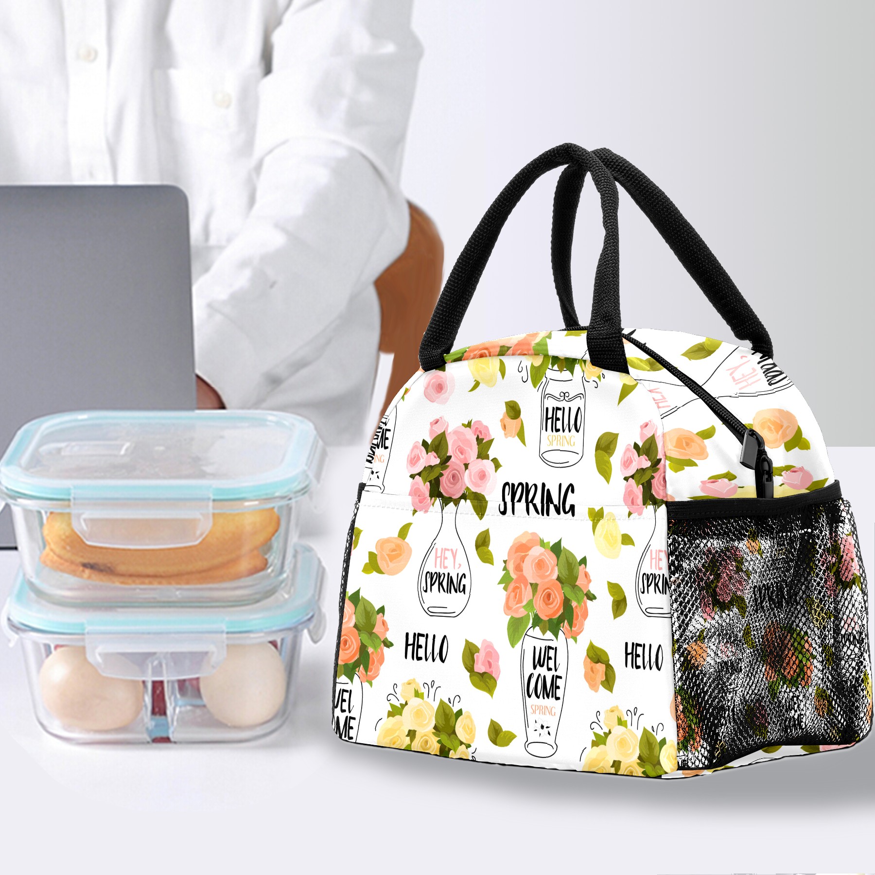 Reusable Lunch Bag Insulated Lunch Box Flower Greeting Background Lunch Tote Bag Durable Snacks Organizer for Office Work Hiking Picnic