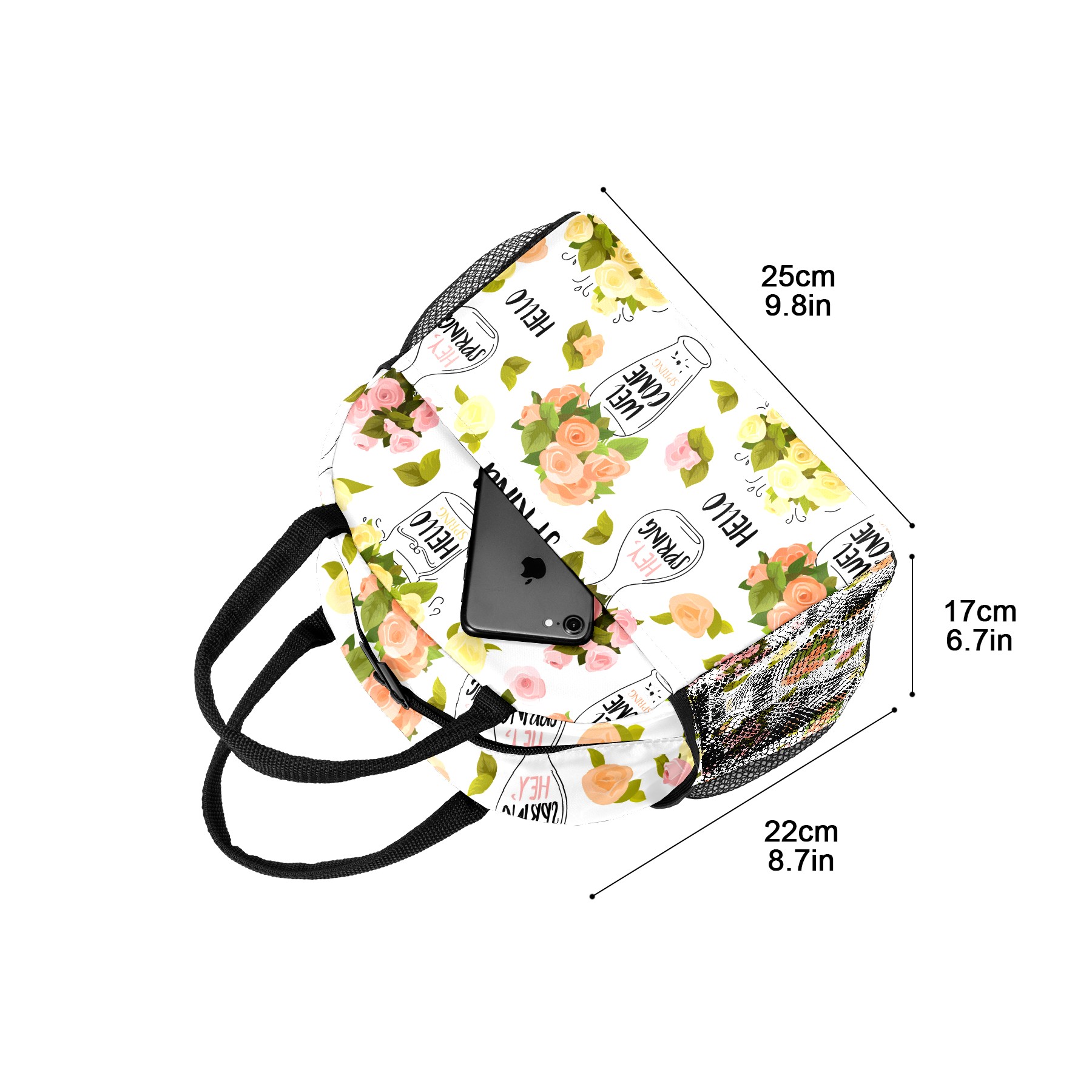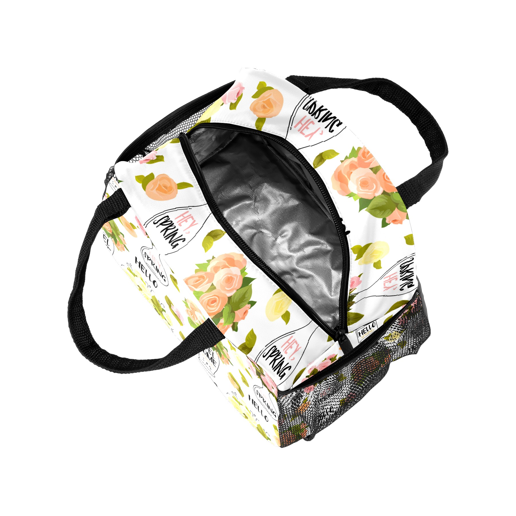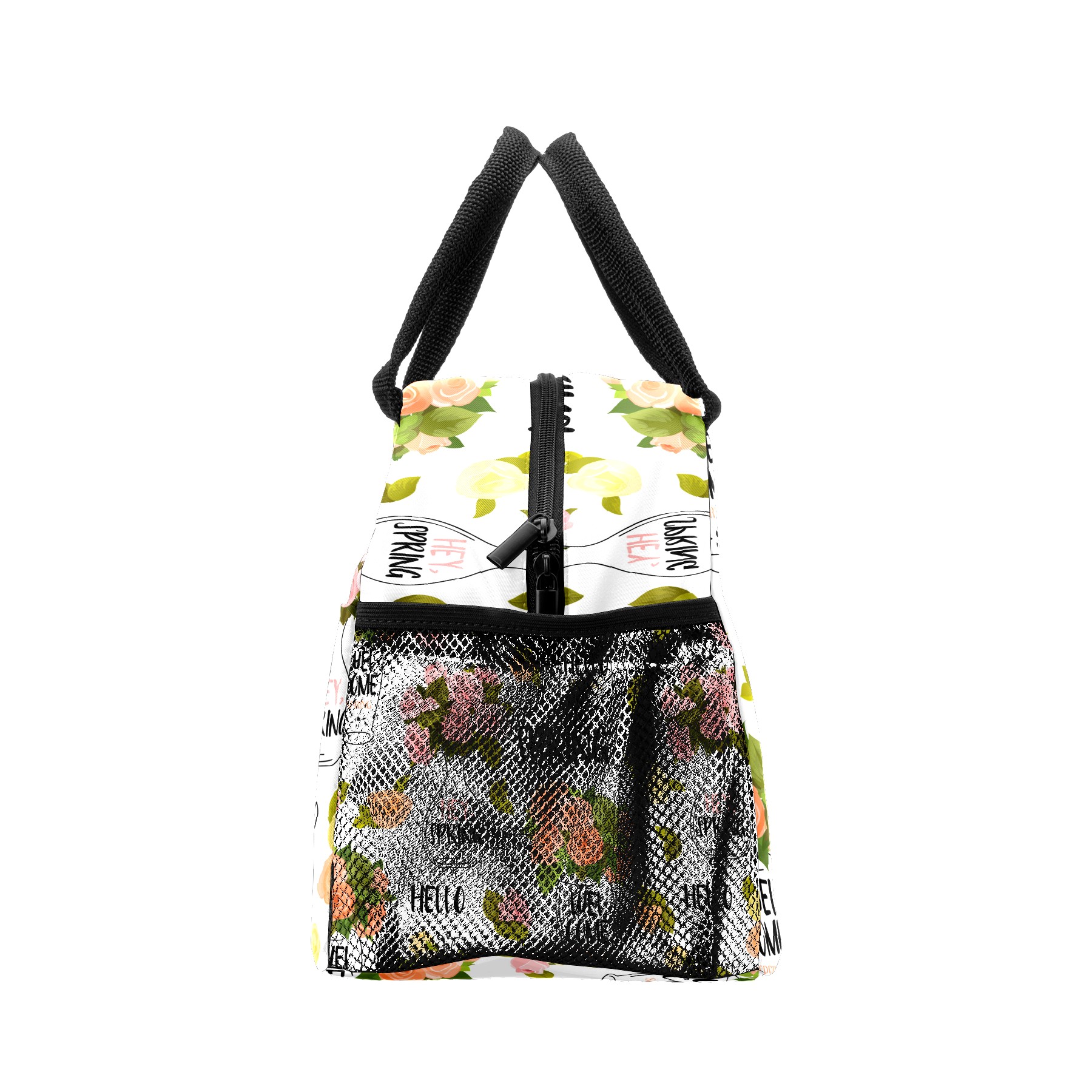 Reusable Lunch Bag Insulated Lunch Box Flower Greeting Background Lunch Tote Bag Durable Snacks Organizer for Office Work Hiking Picnic