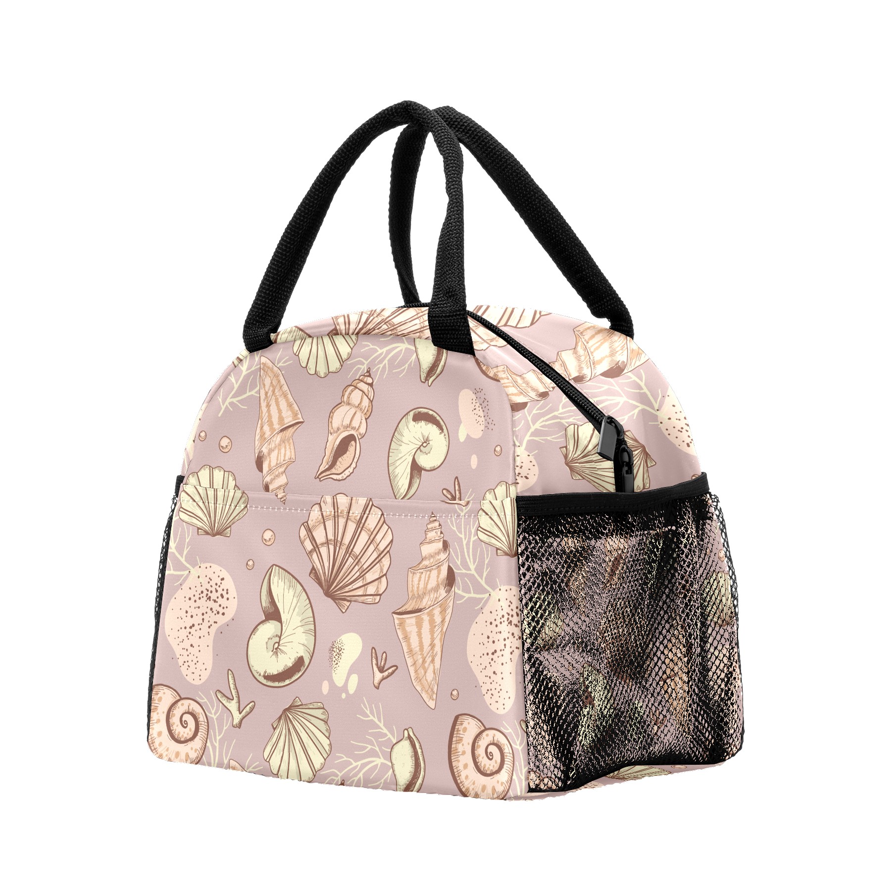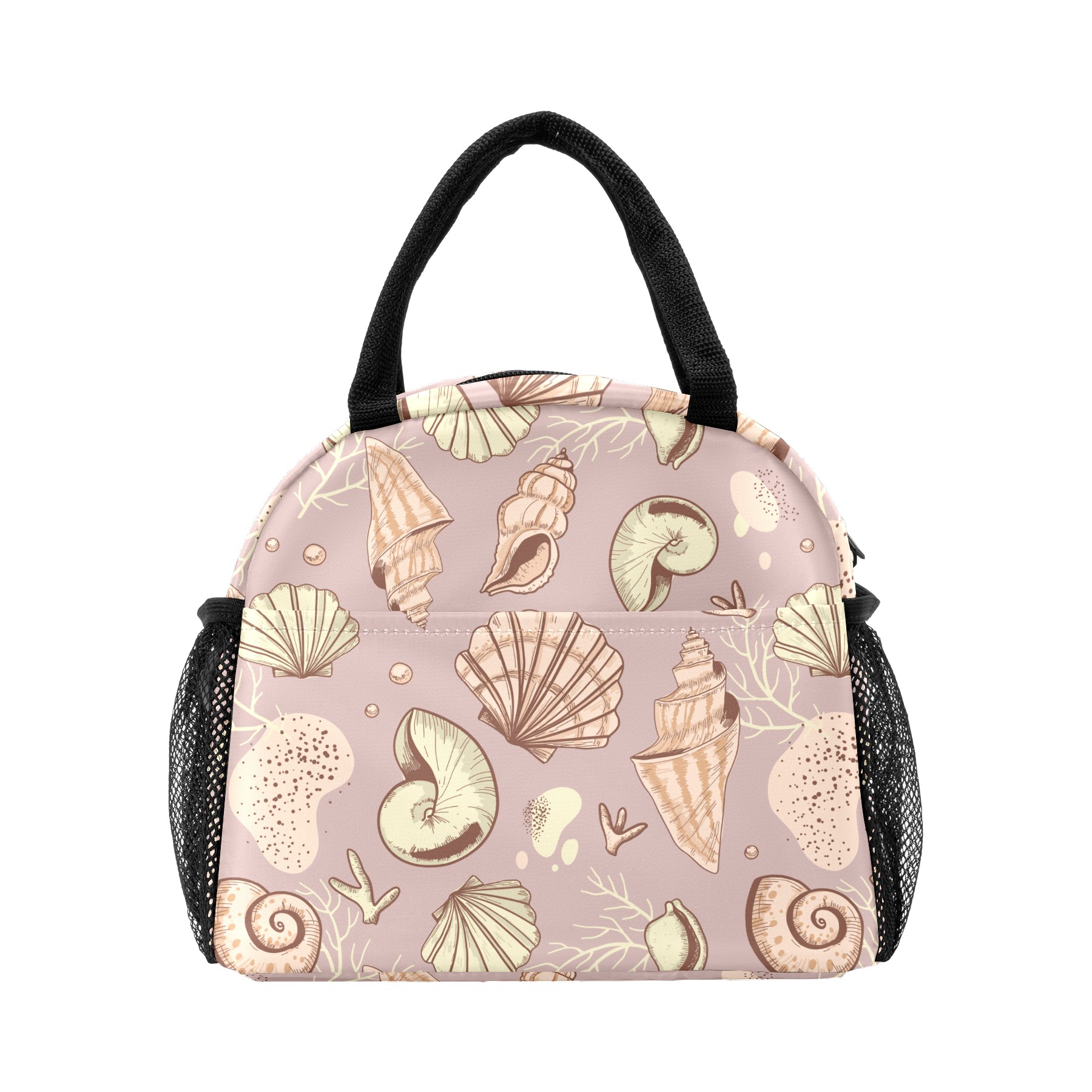 Reusable Lunch Bag Insulated Lunch Box Decorative Vintage Seashell Pattern Lunch Tote Bag Durable Snacks Organizer for Office Work Hiking Picnic