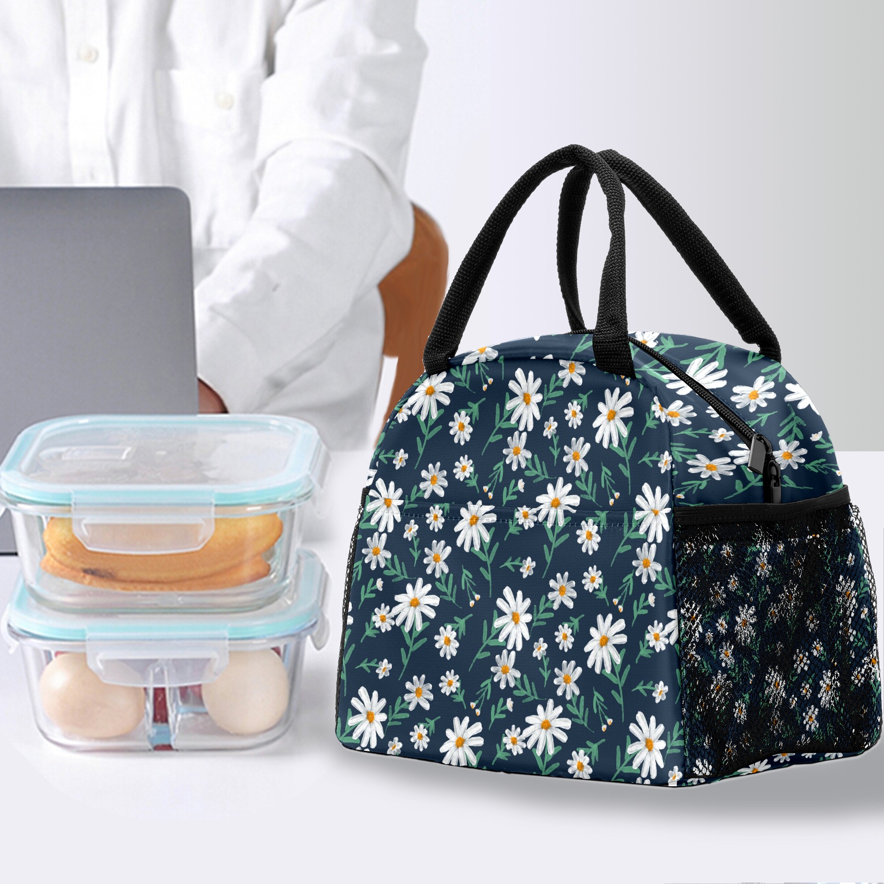 Reusable Lunch Bag Insulated Lunch Box Daisies Watercolor Style Lunch Tote Bag Durable Snacks Organizer for Office Work Hiking Picnic