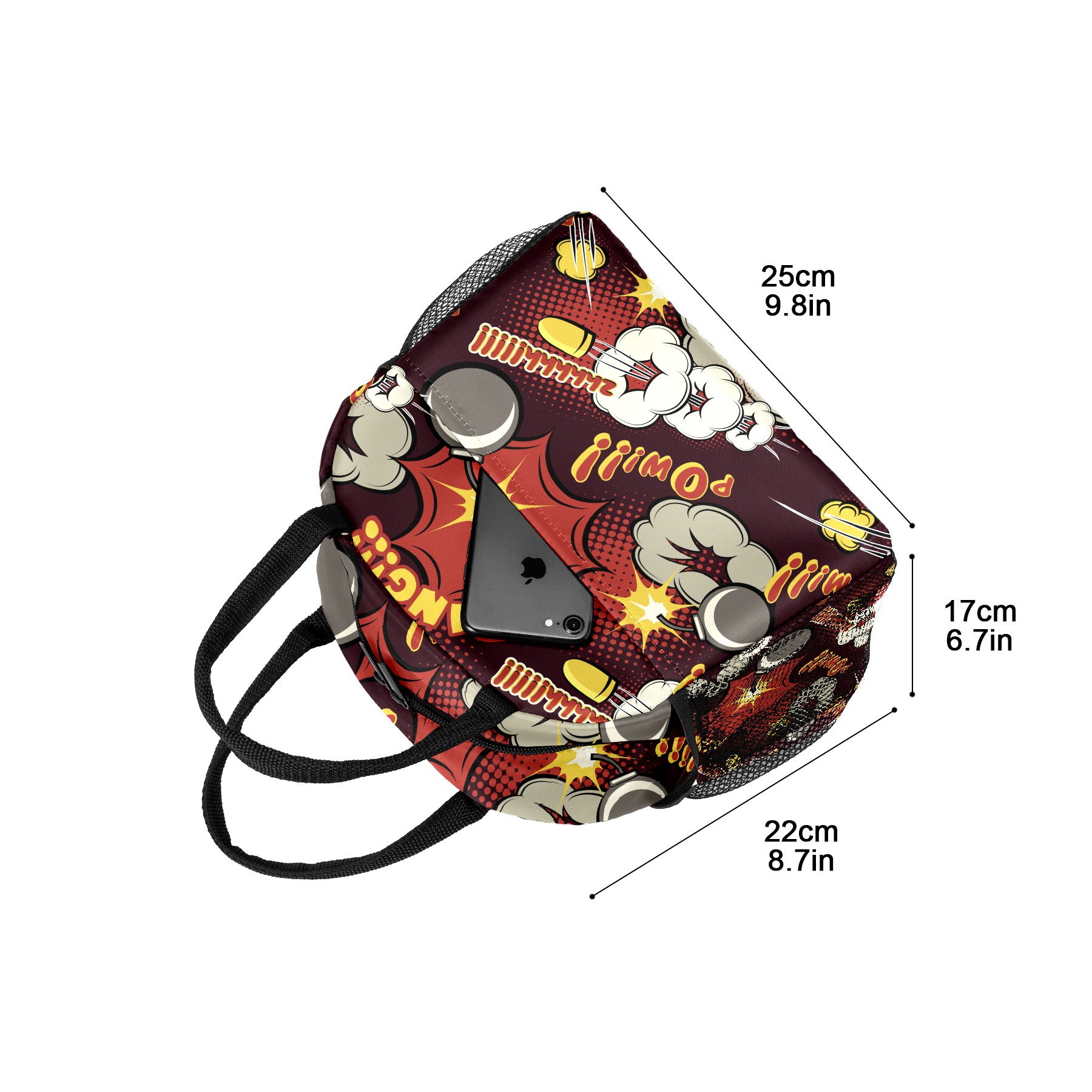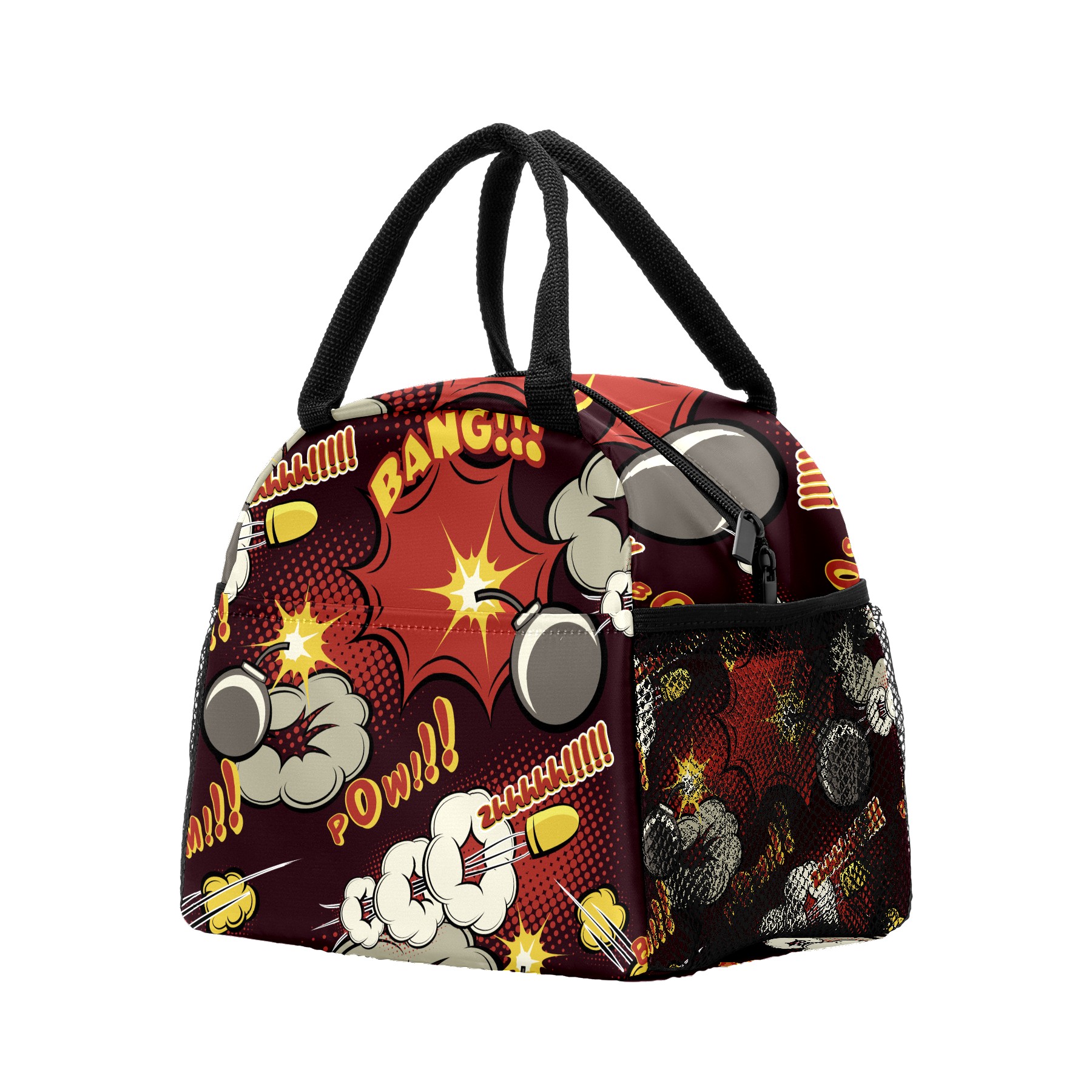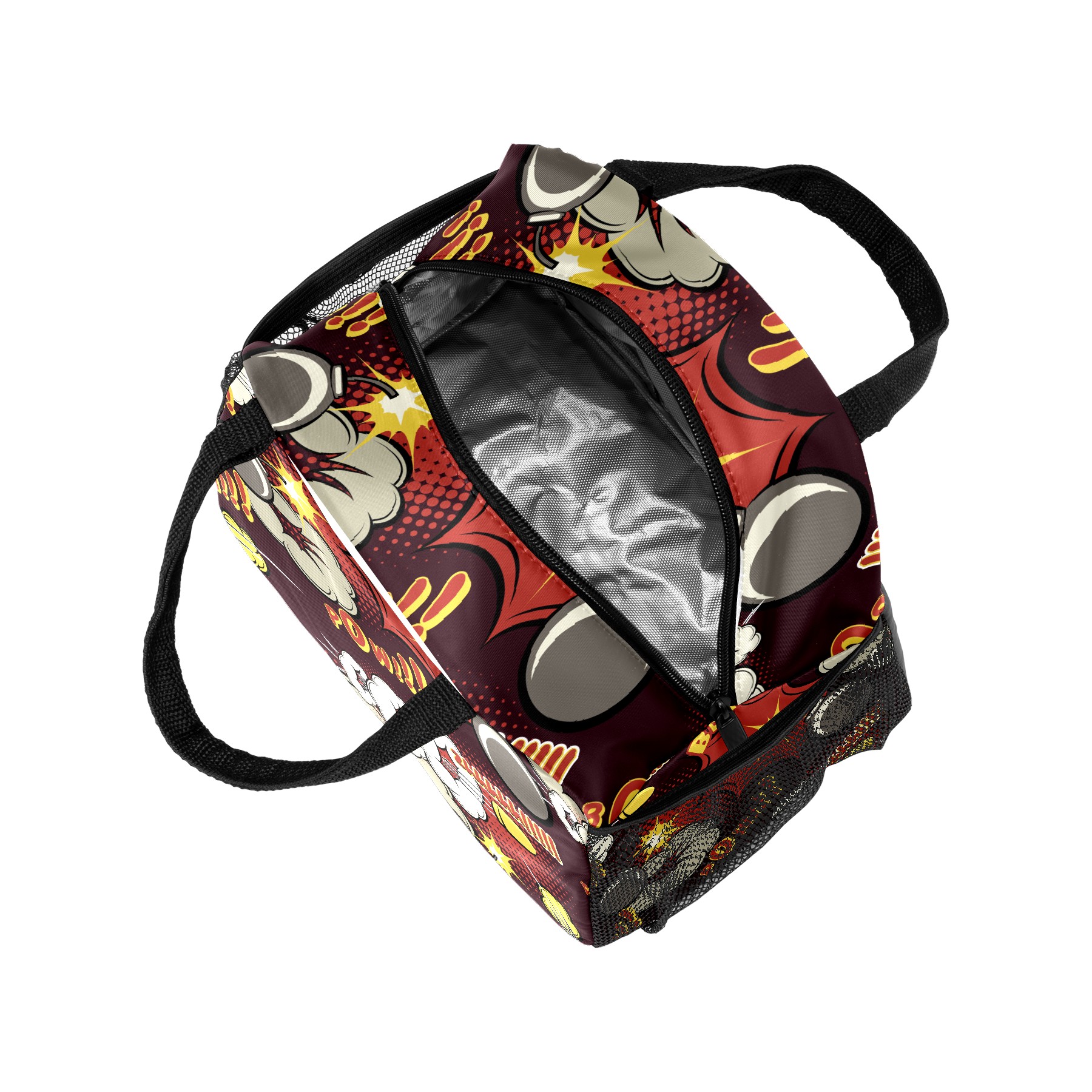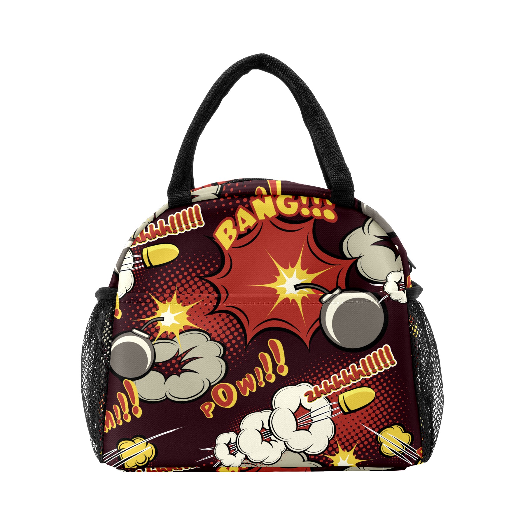 Reusable Lunch Bag Insulated Lunch Box Comic Explosion Pattern Lunch Tote Bag Durable Snacks Organizer for Office Work Hiking Picnic