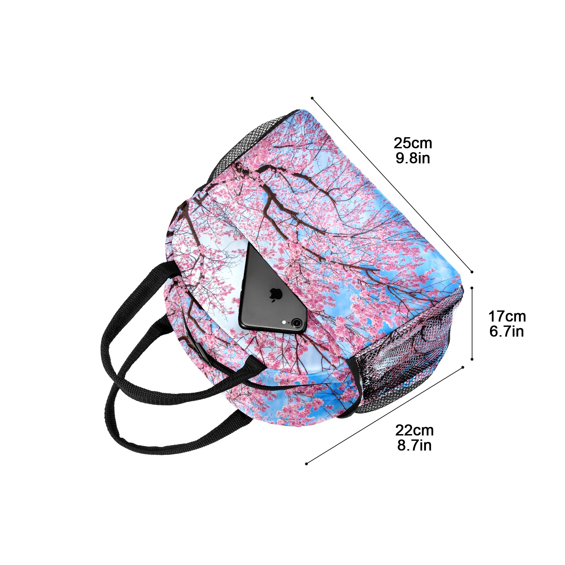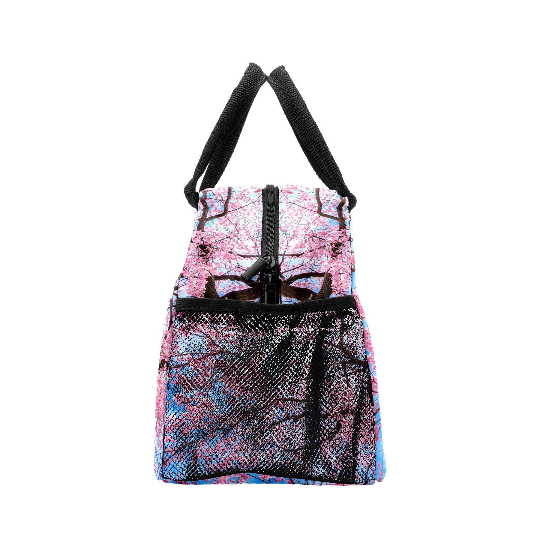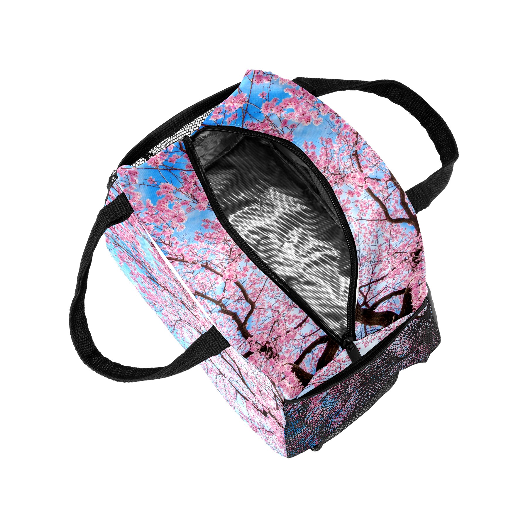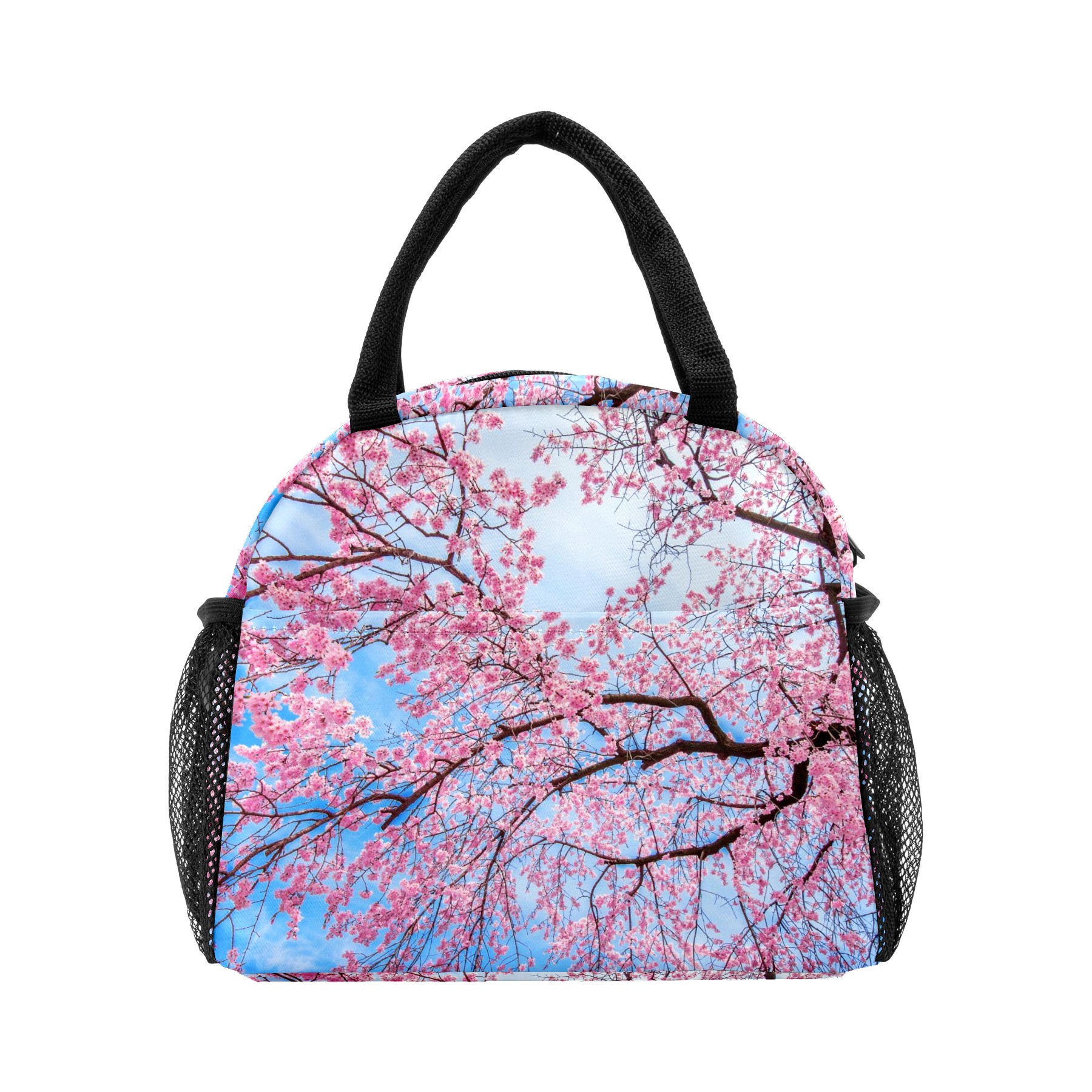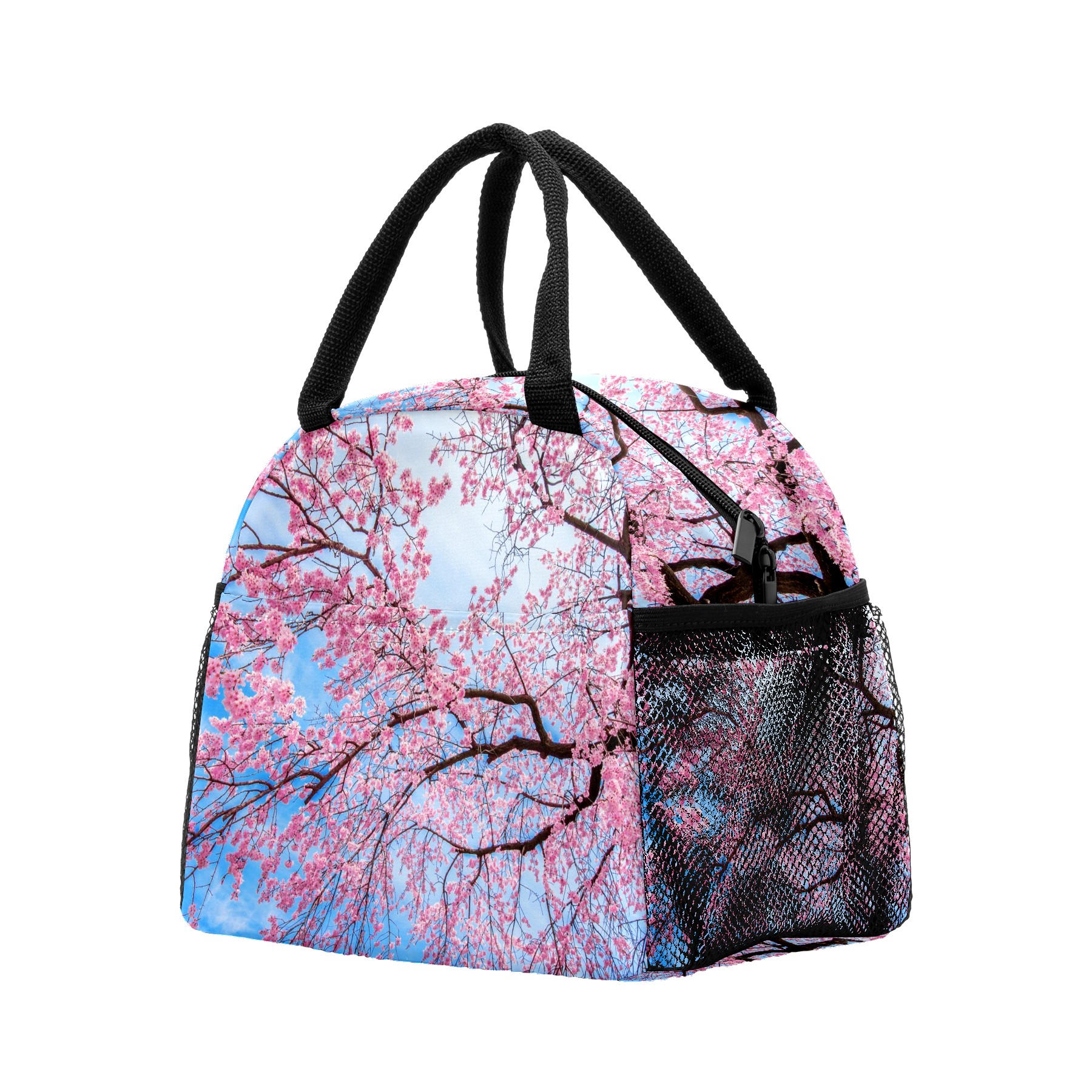 Reusable Lunch Bag Insulated Lunch Box Cherry Blossom Lunch Tote Bag Durable Snacks Organizer for Office Work Hiking Picnic
