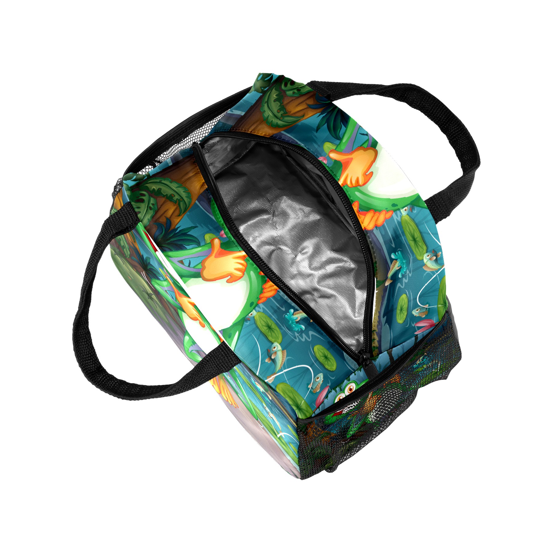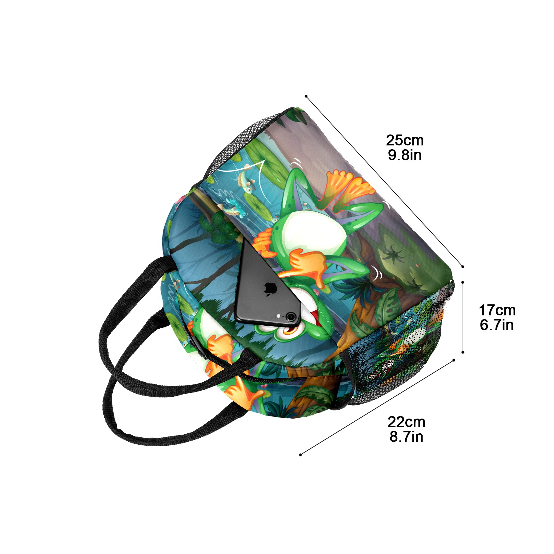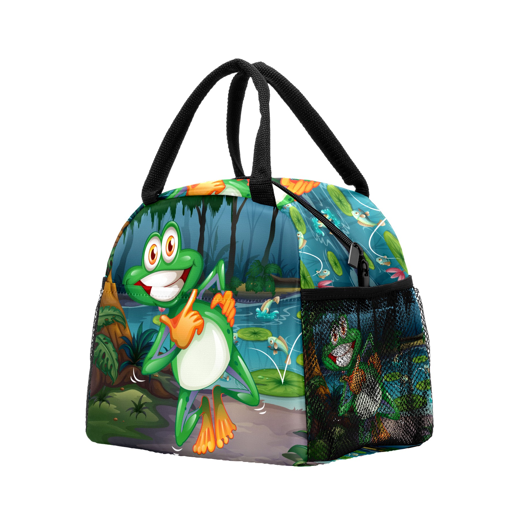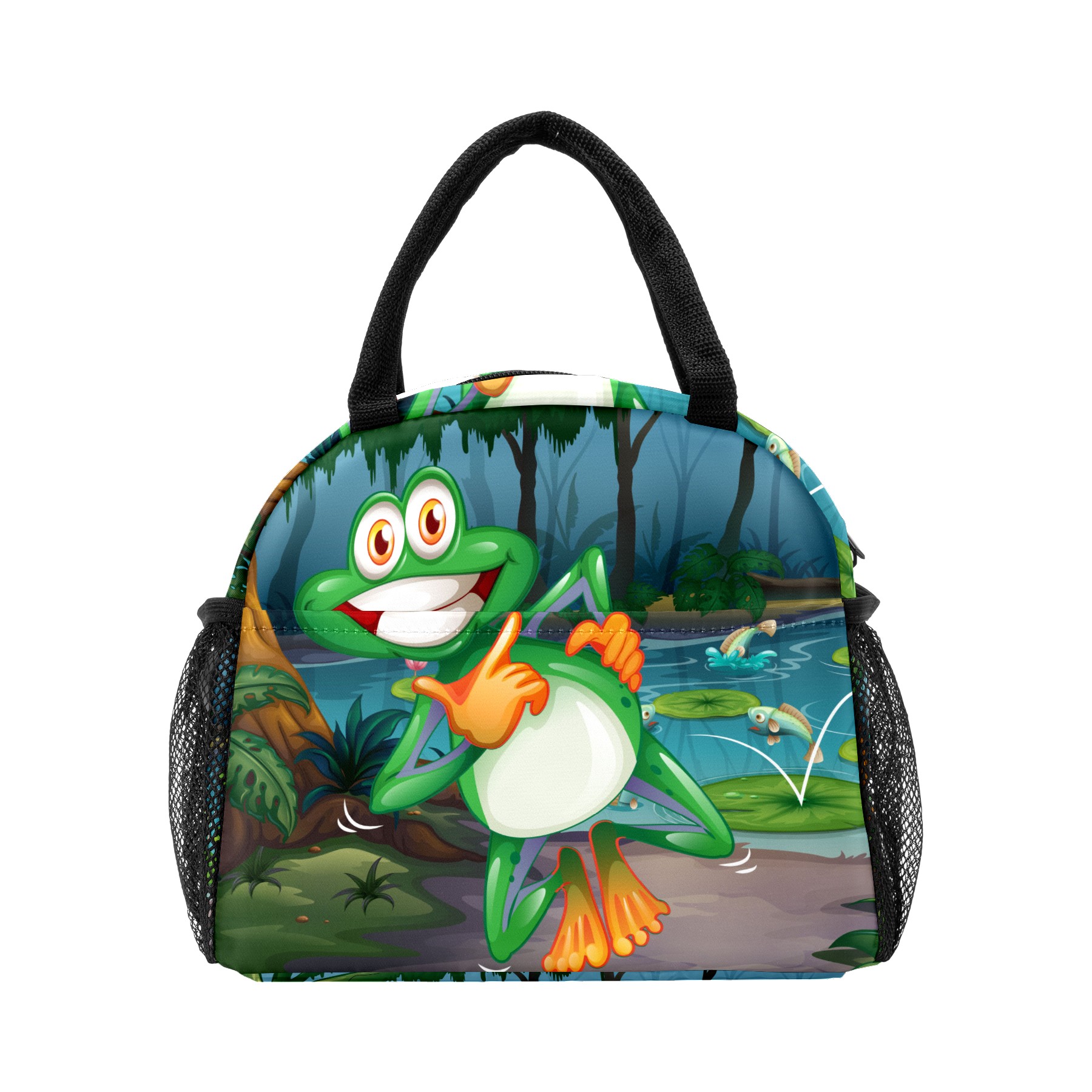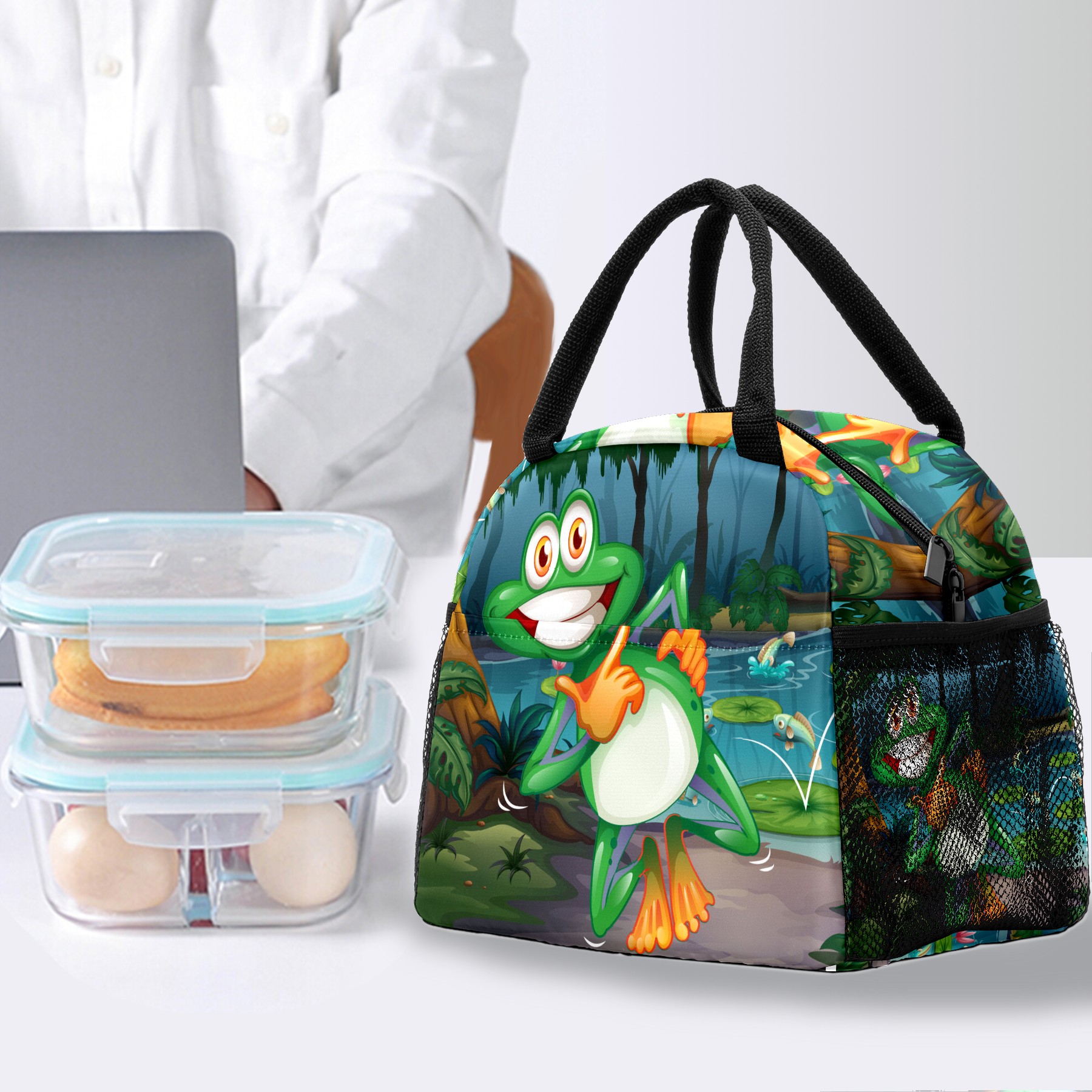 Reusable Lunch Bag Insulated Lunch Box A Forest With A Playful Frog Lunch Tote Bag Durable Snacks Organizer for Office Work Hiking Picnic