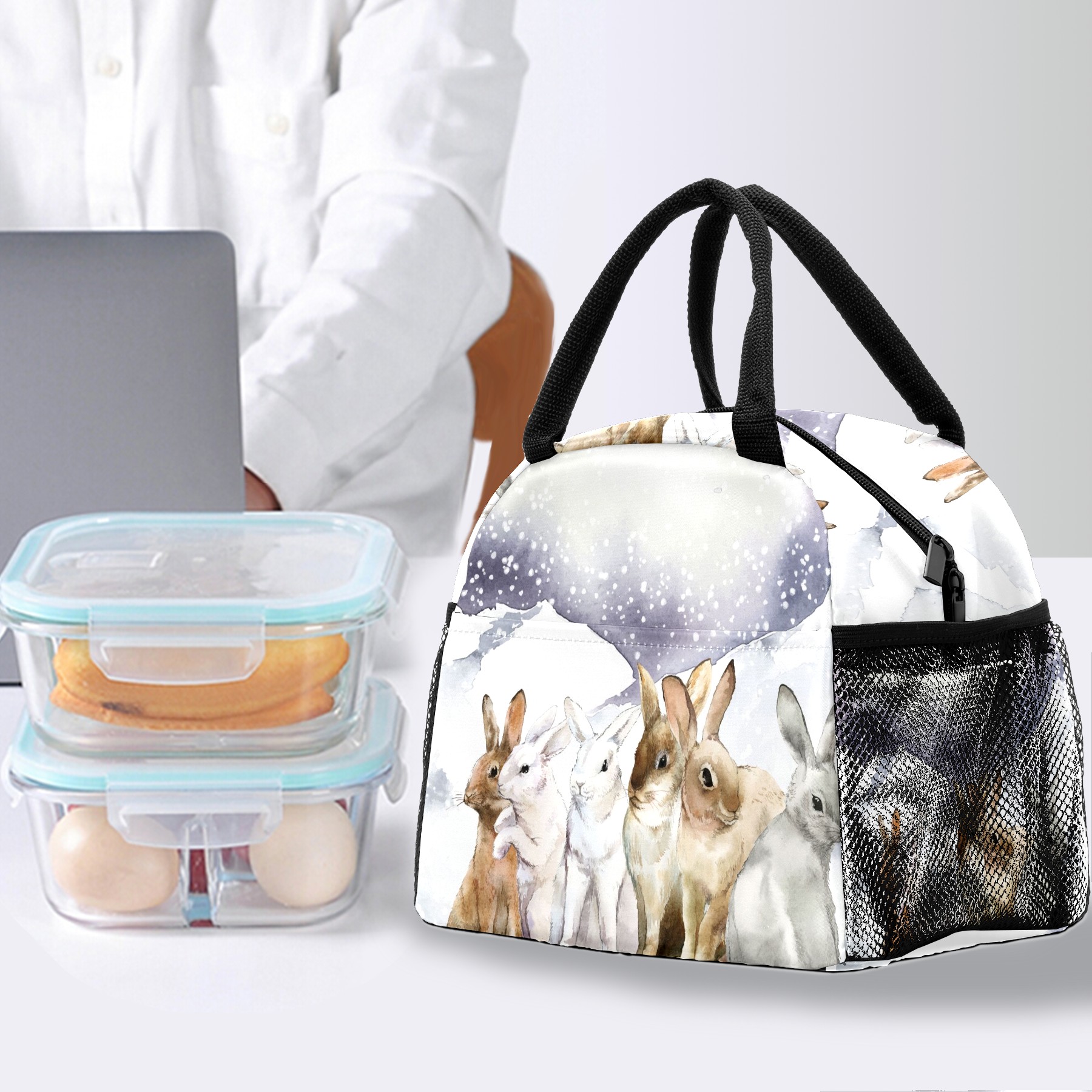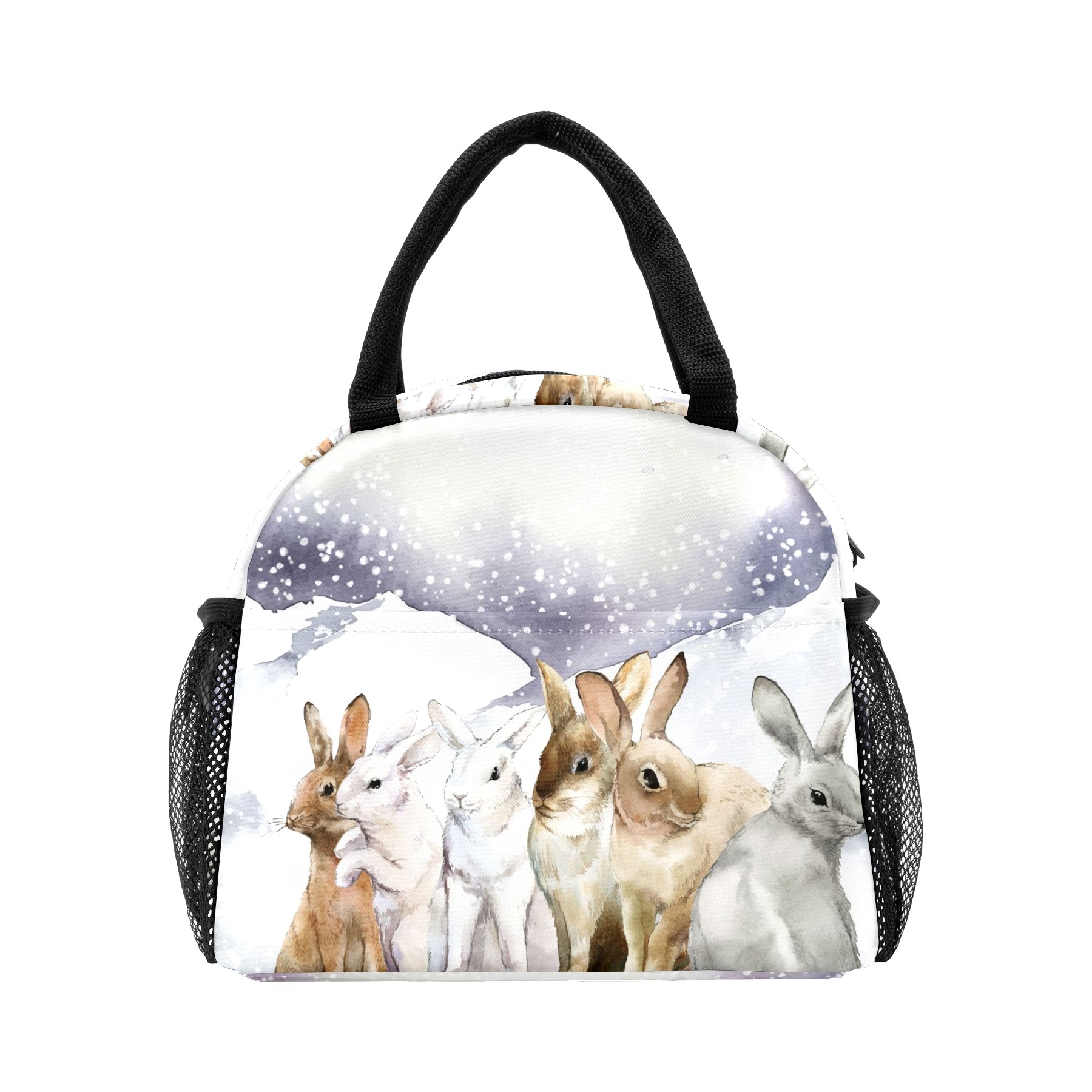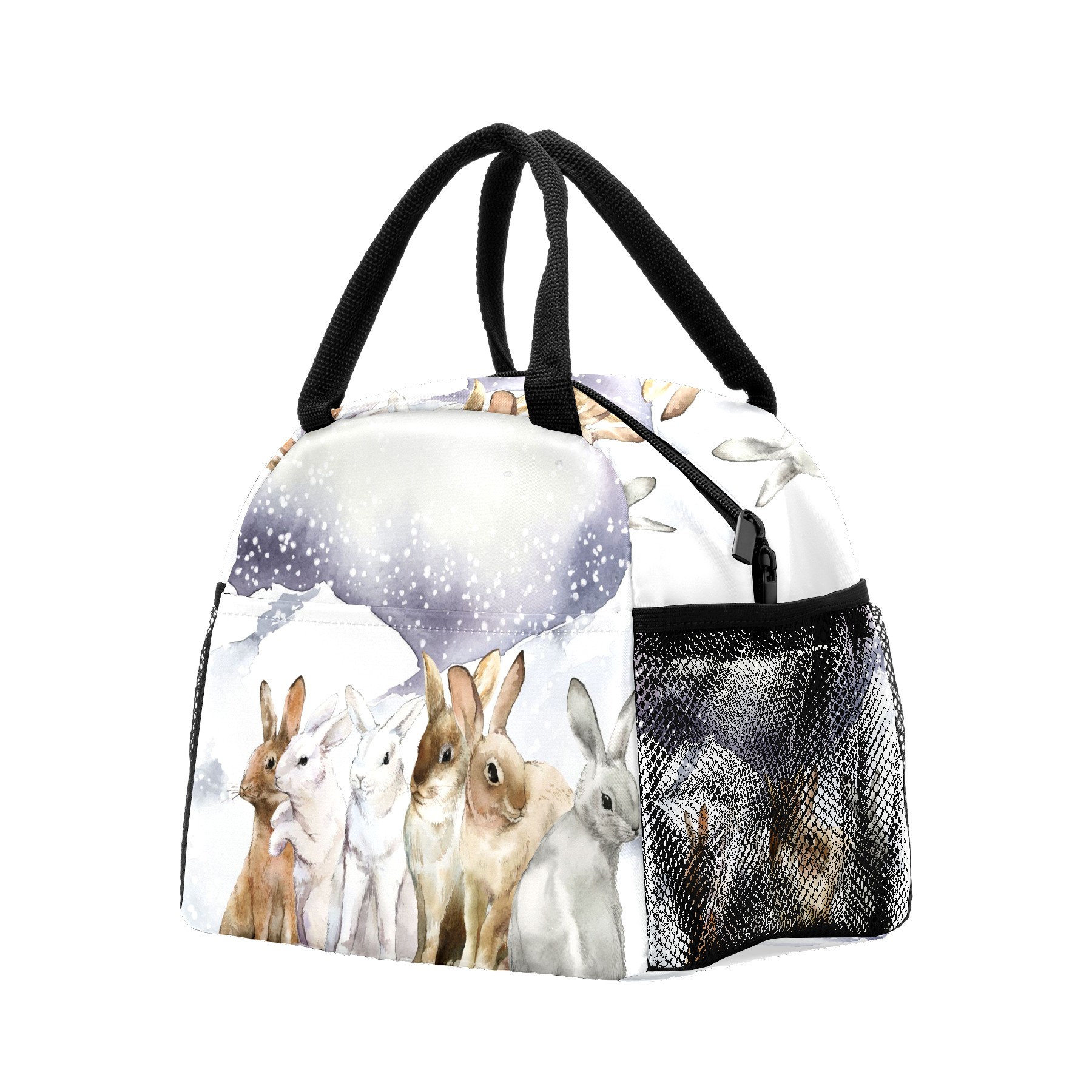 Reusable Lunch Bag Insulated Lunch Box Rabbits In The Winter Lunch Tote Bag Durable Snacks Organizer for Office Work Hiking Picnic
