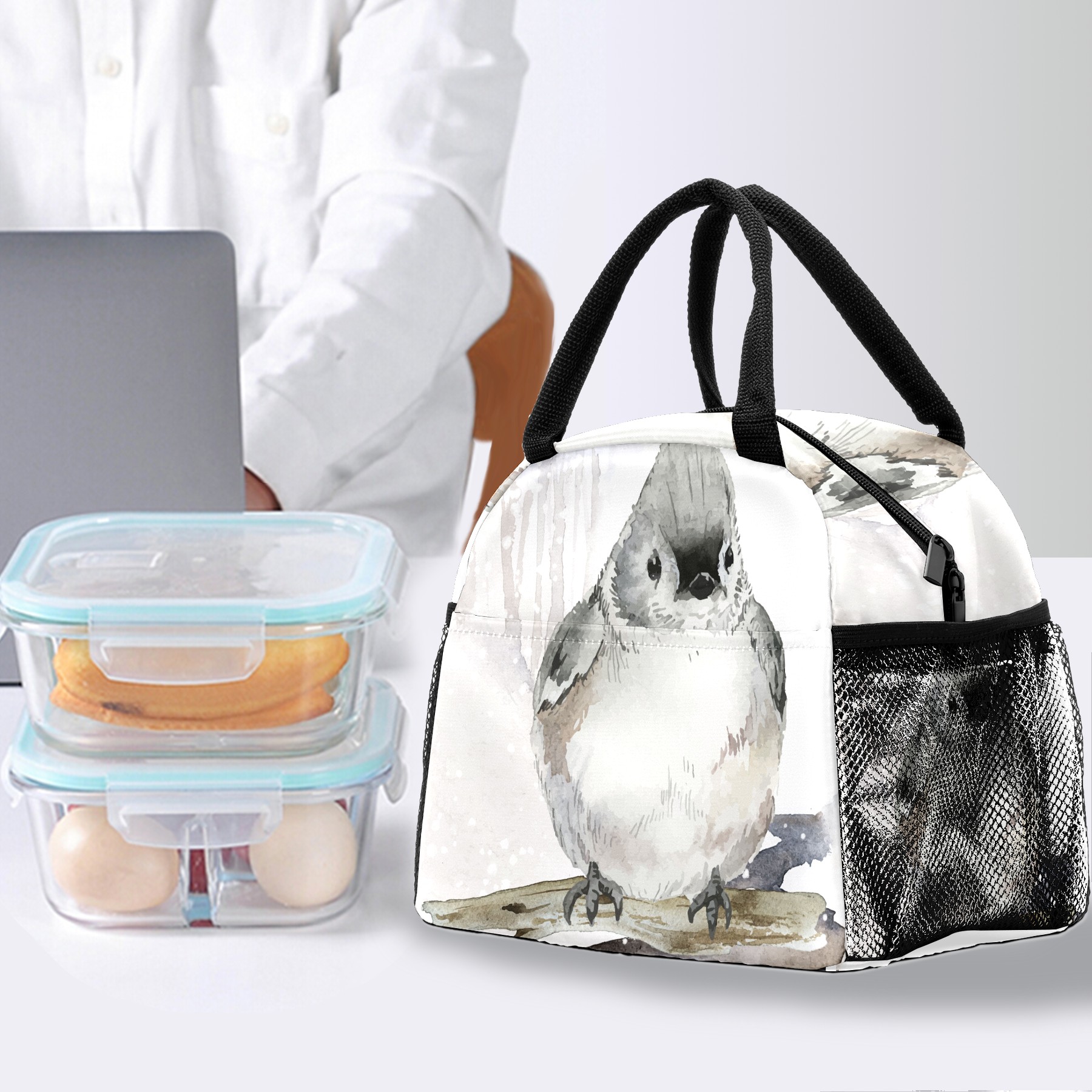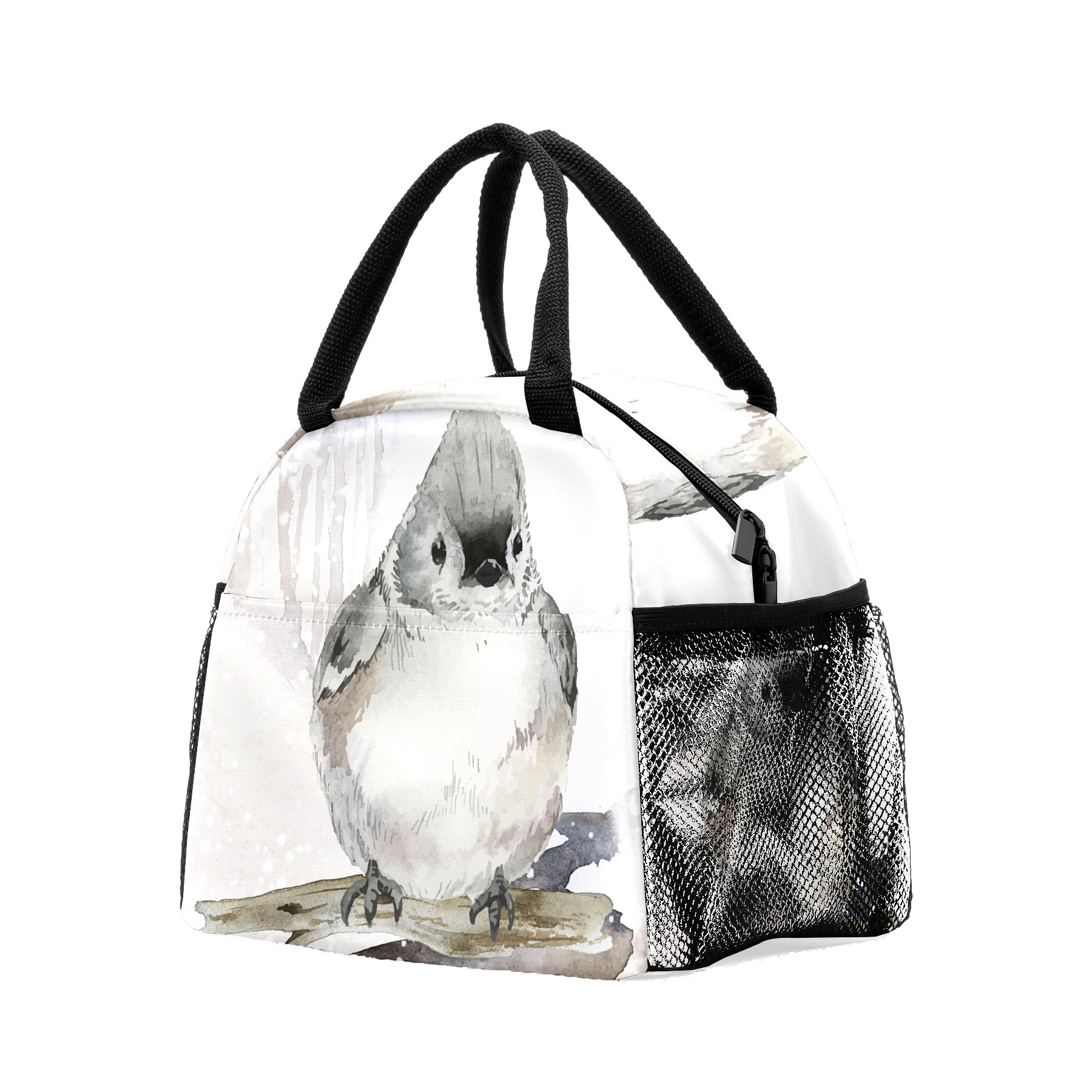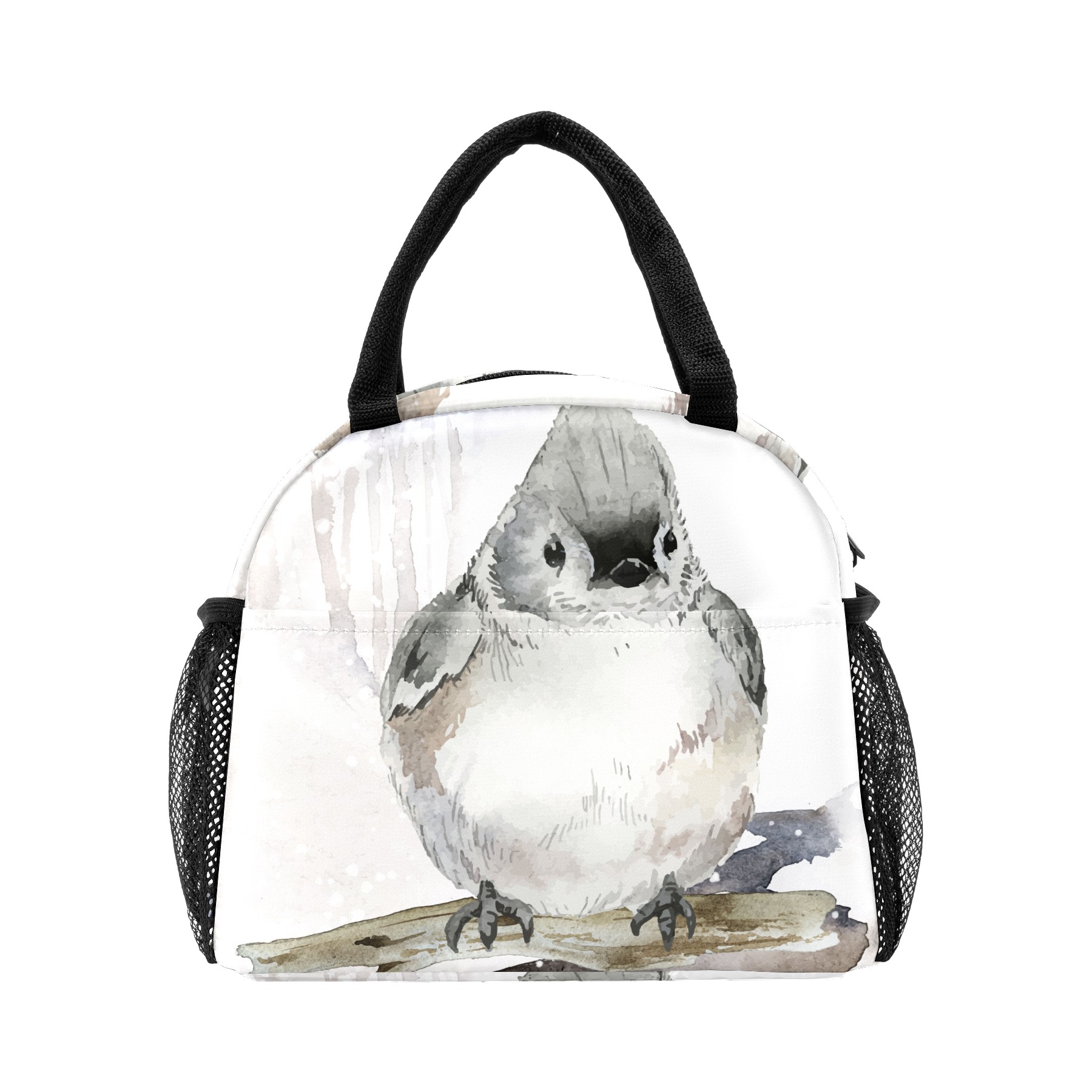 Reusable Lunch Bag Insulated Lunch Box Tufted Titmouse Bird Lunch Tote Bag Durable Snacks Organizer for Office Work Hiking Picnic