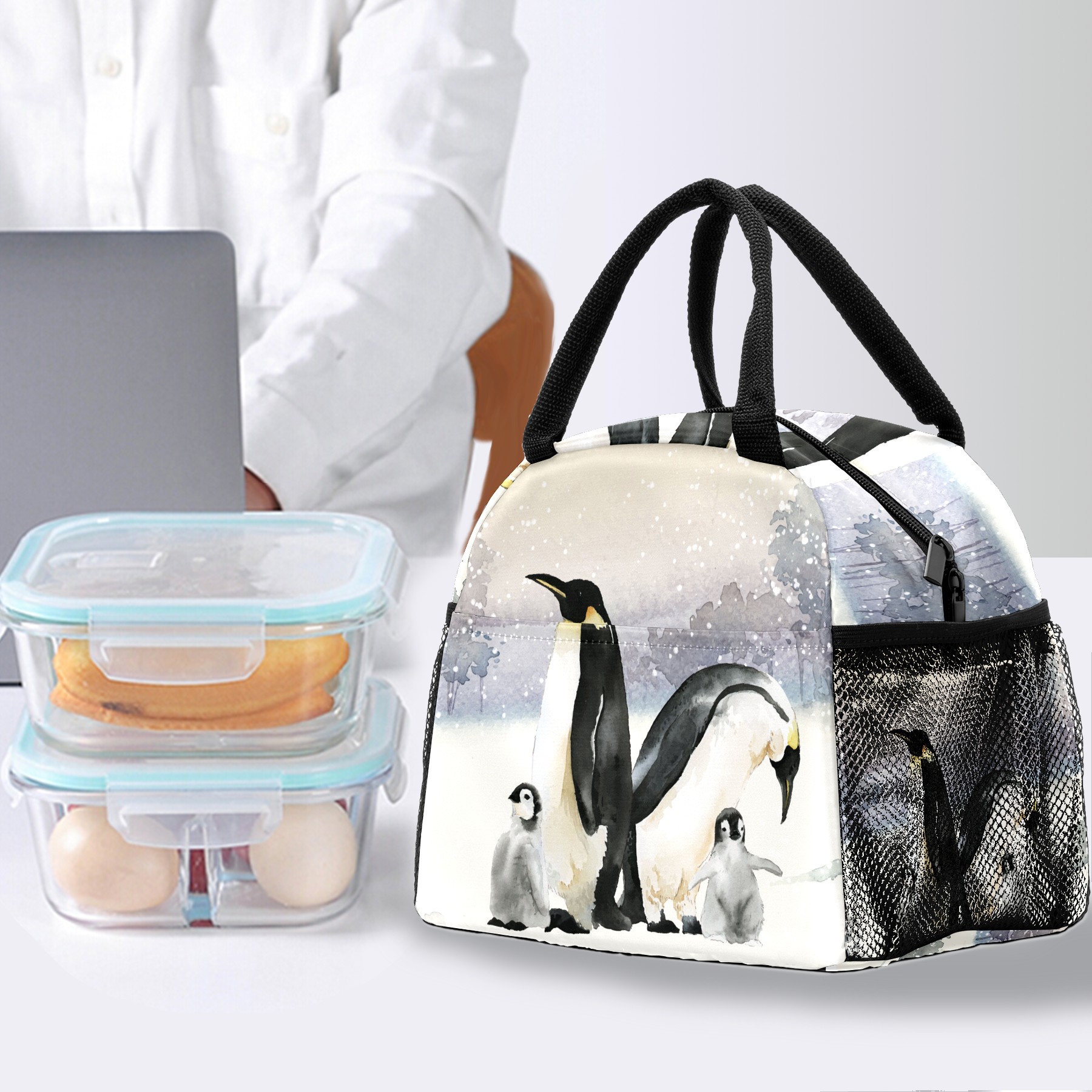 Reusable Lunch Bag Insulated Lunch Box Penguins In A Winter Lunch Tote Bag Durable Snacks Organizer for Office Work Hiking Picnic