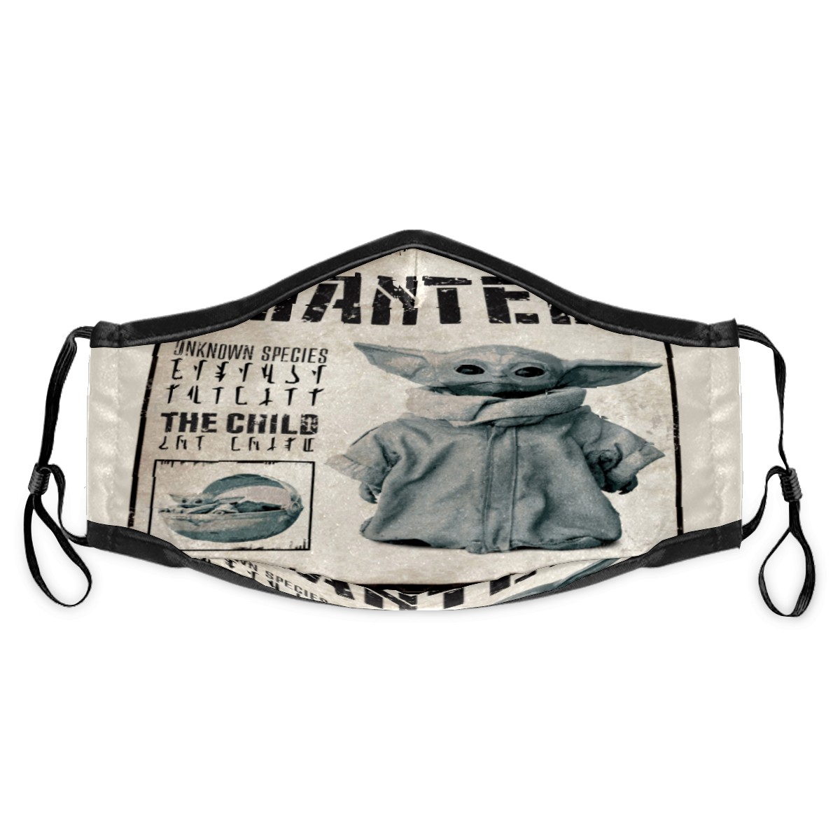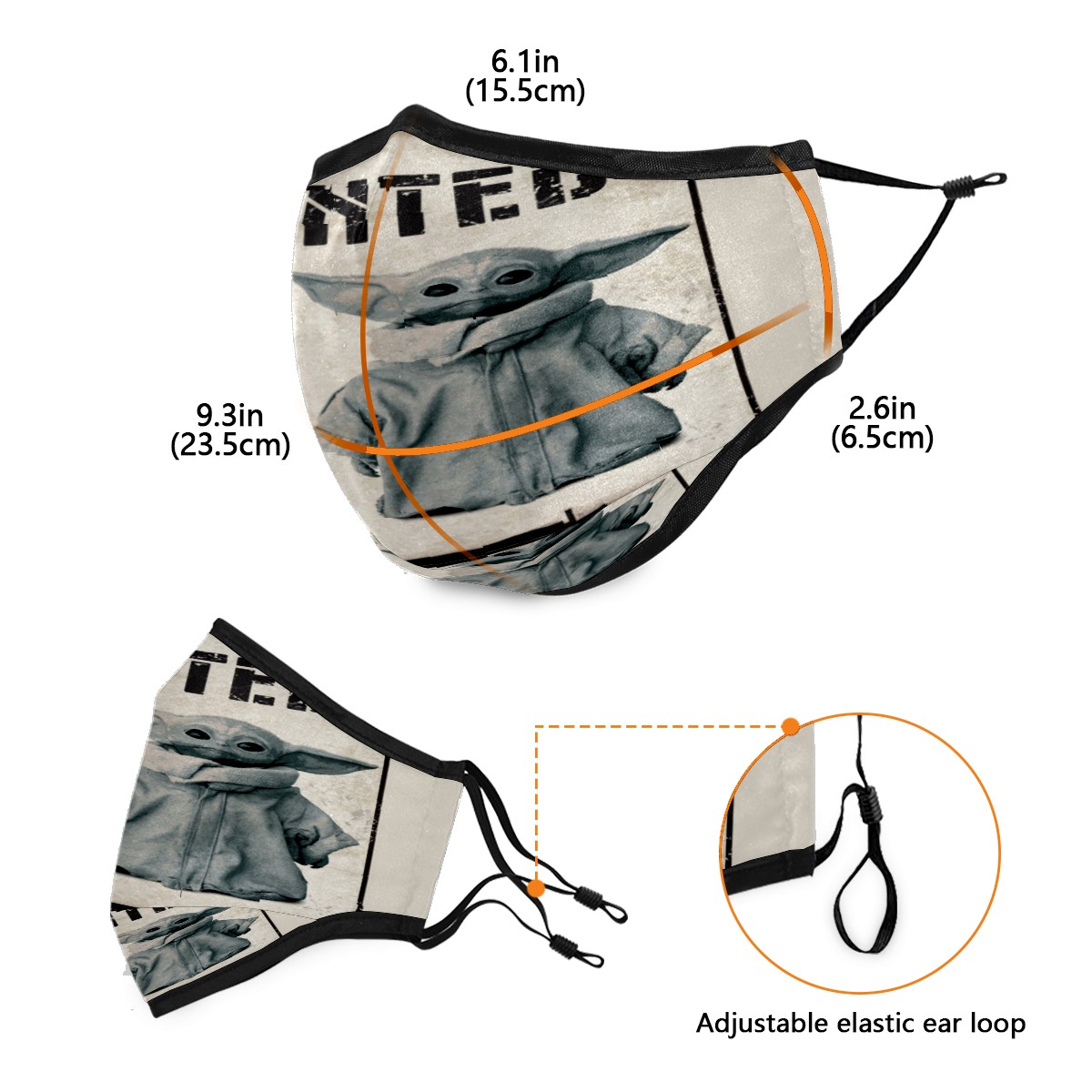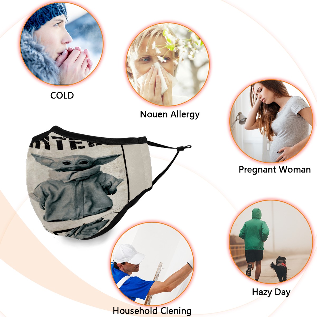 Washable Cloth Face Cover Mask Vintage Yoda Baby Reusable Dust Windproof Mask Face Protection Adjustable Ear Loops & Nose Wire Bandana with 6 Pcs Filter for Women Men Kids