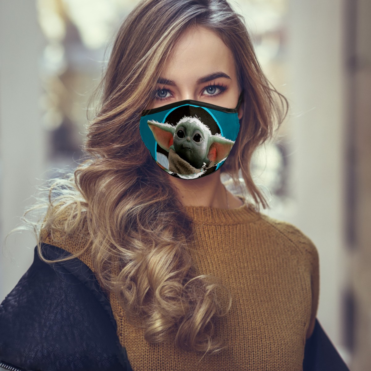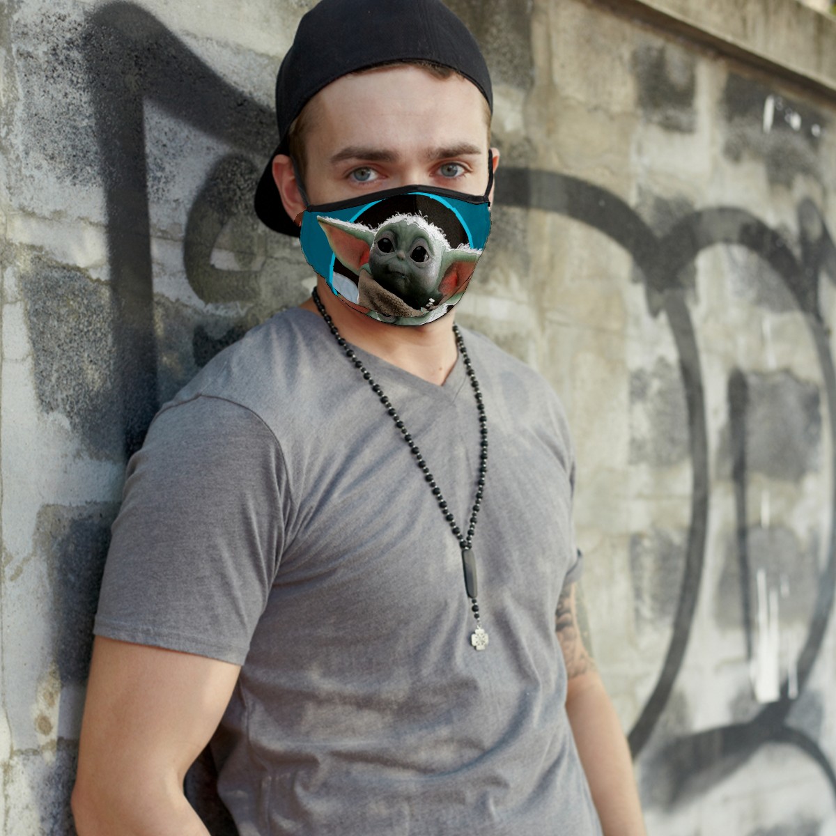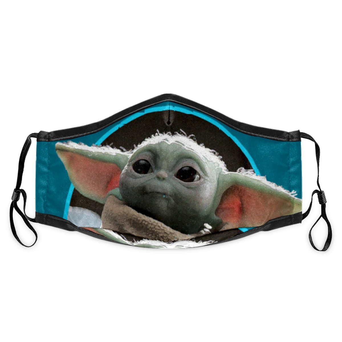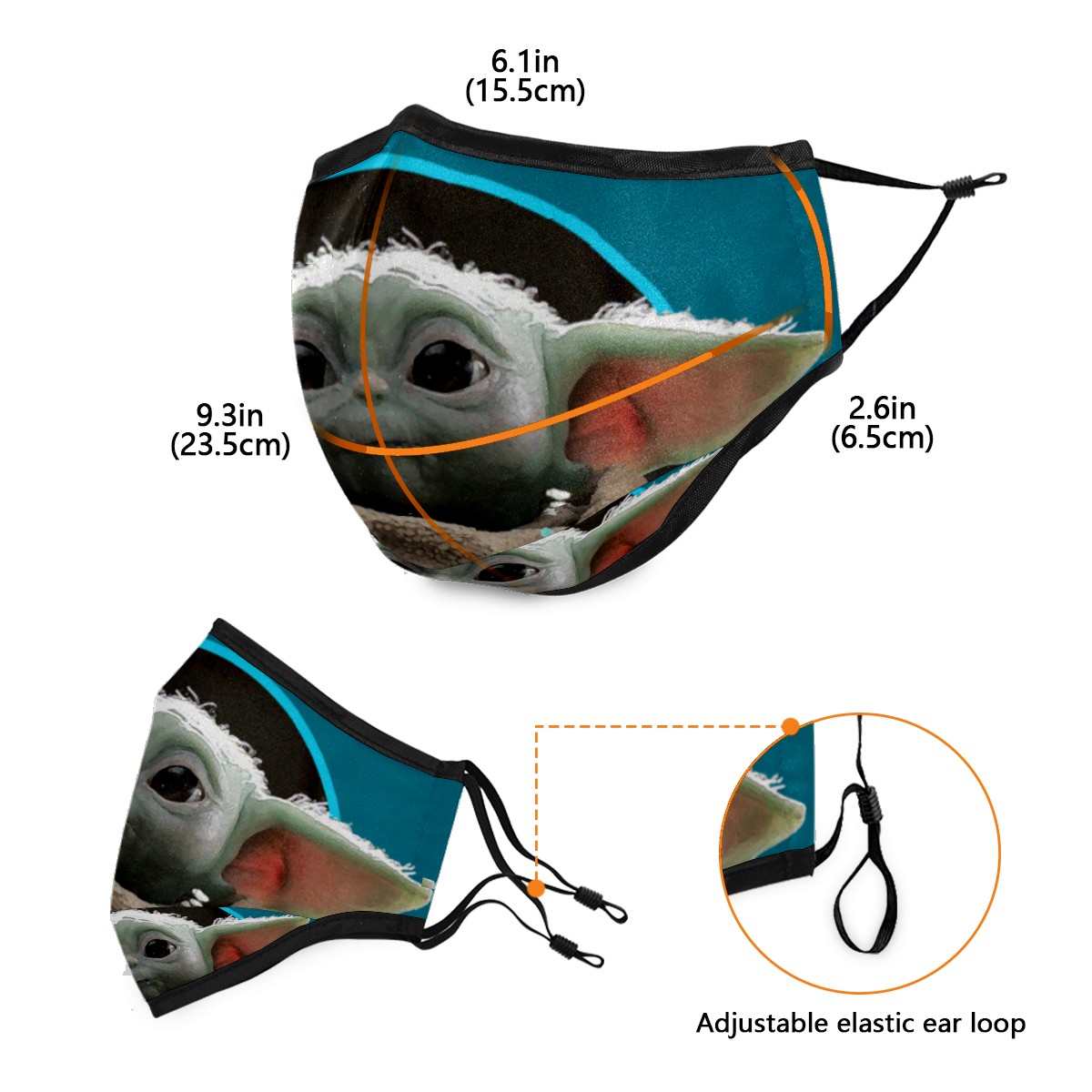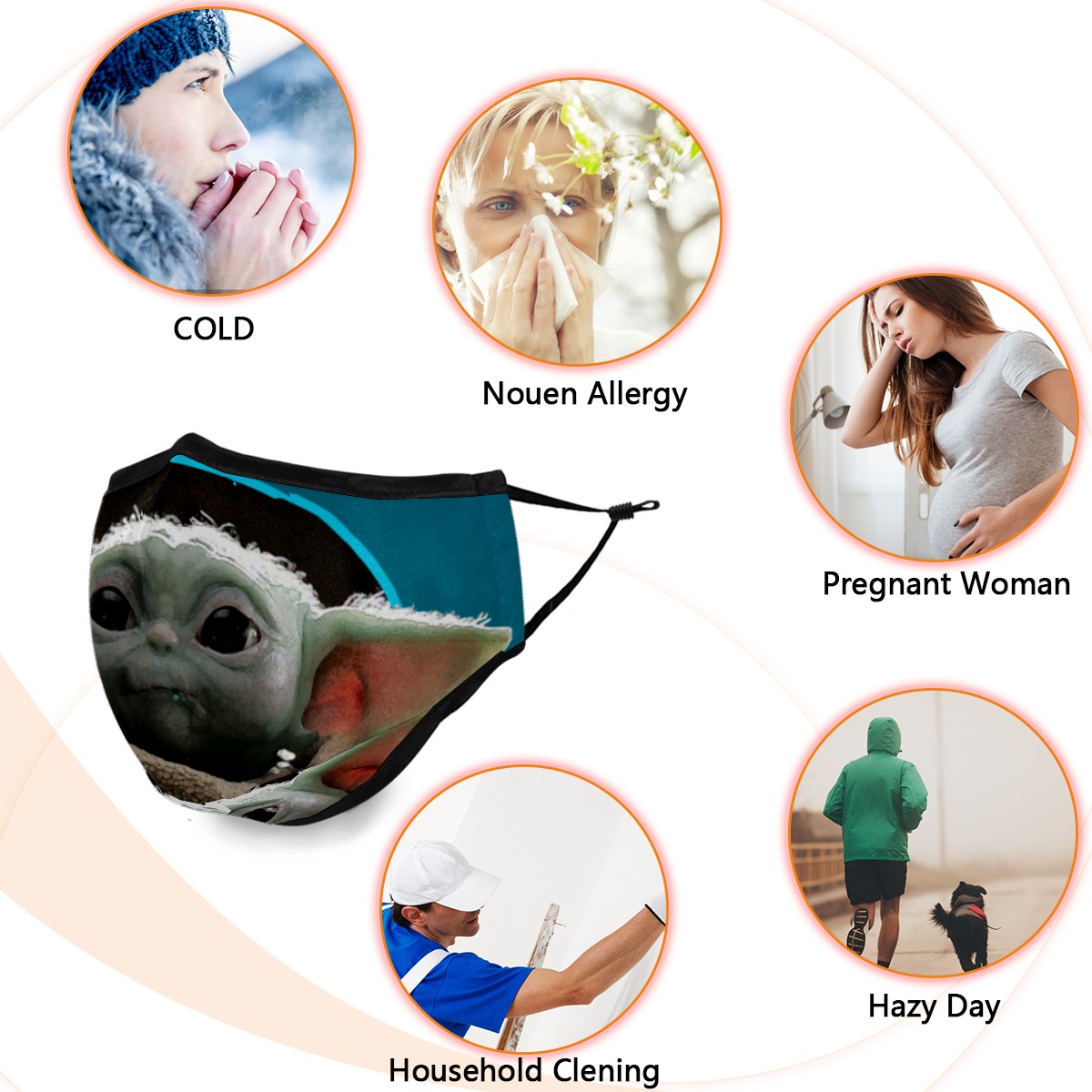 Washable Cloth Face Cover Mask The Child Yoda Eating Cookie Reusable Dust Windproof Mask Face Protection Adjustable Ear Loops & Nose Wire Bandana with 6 Pcs Filter for Women Men Kids