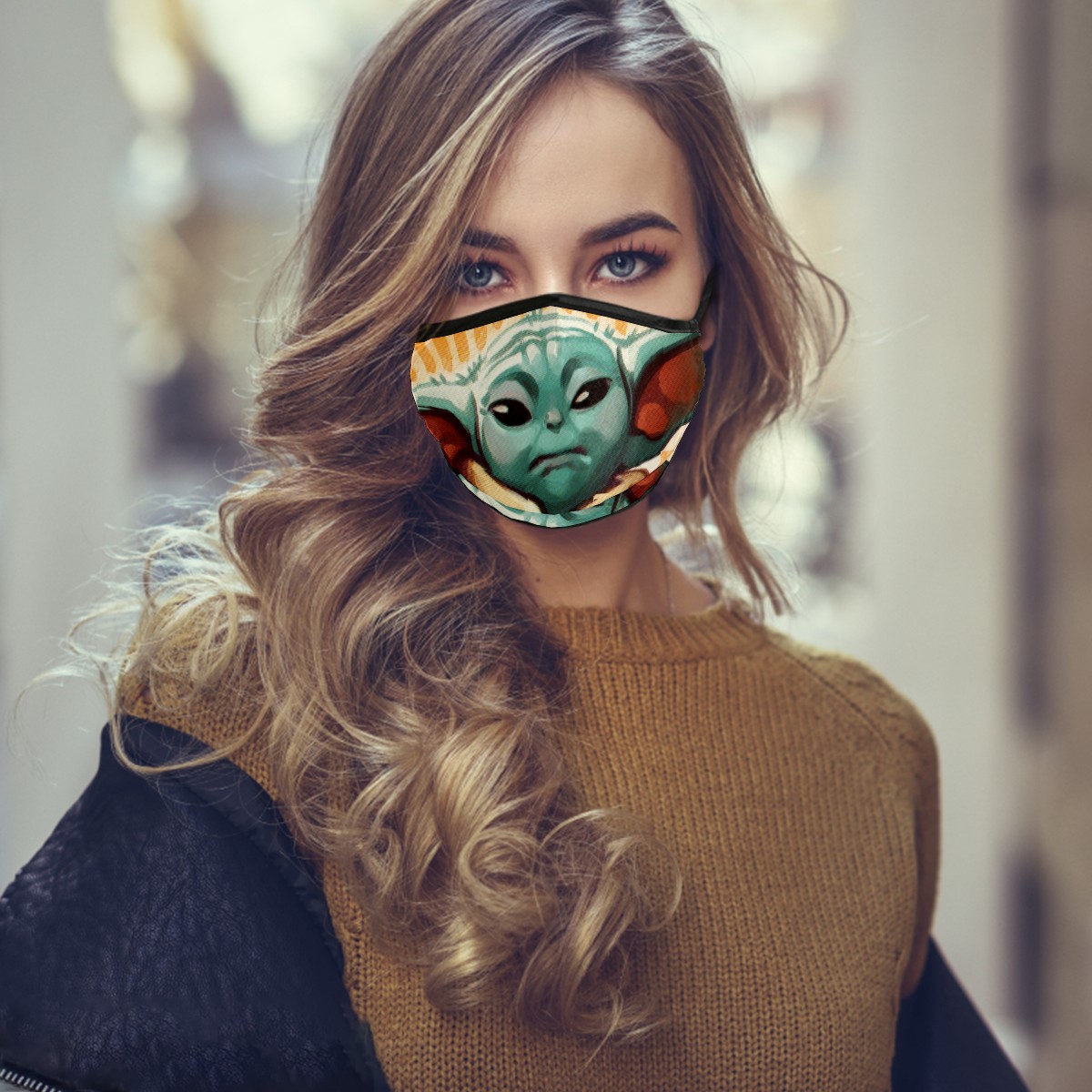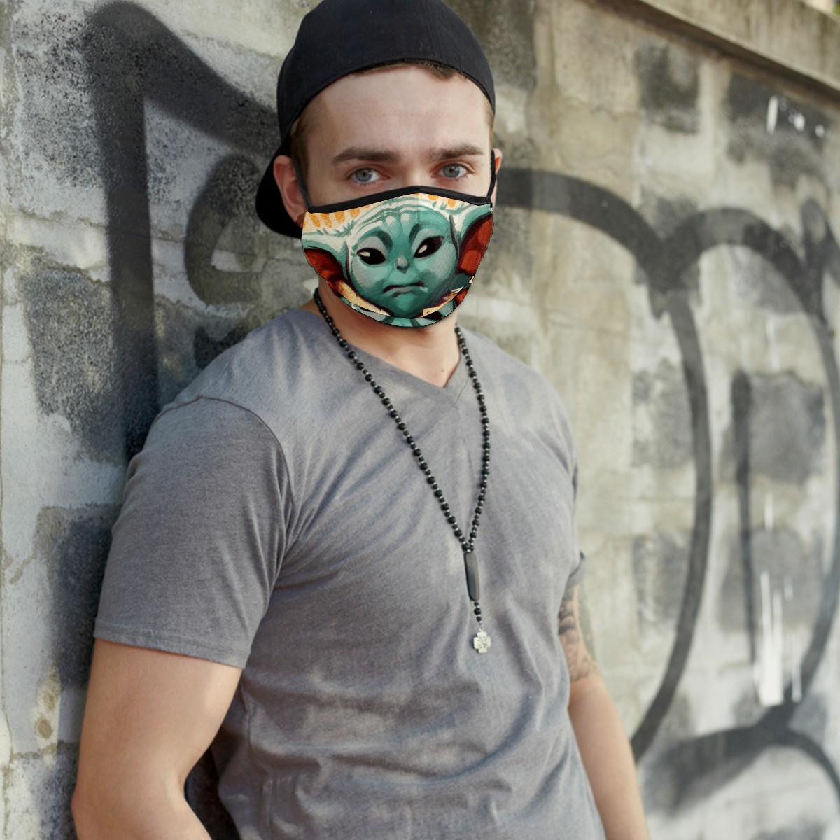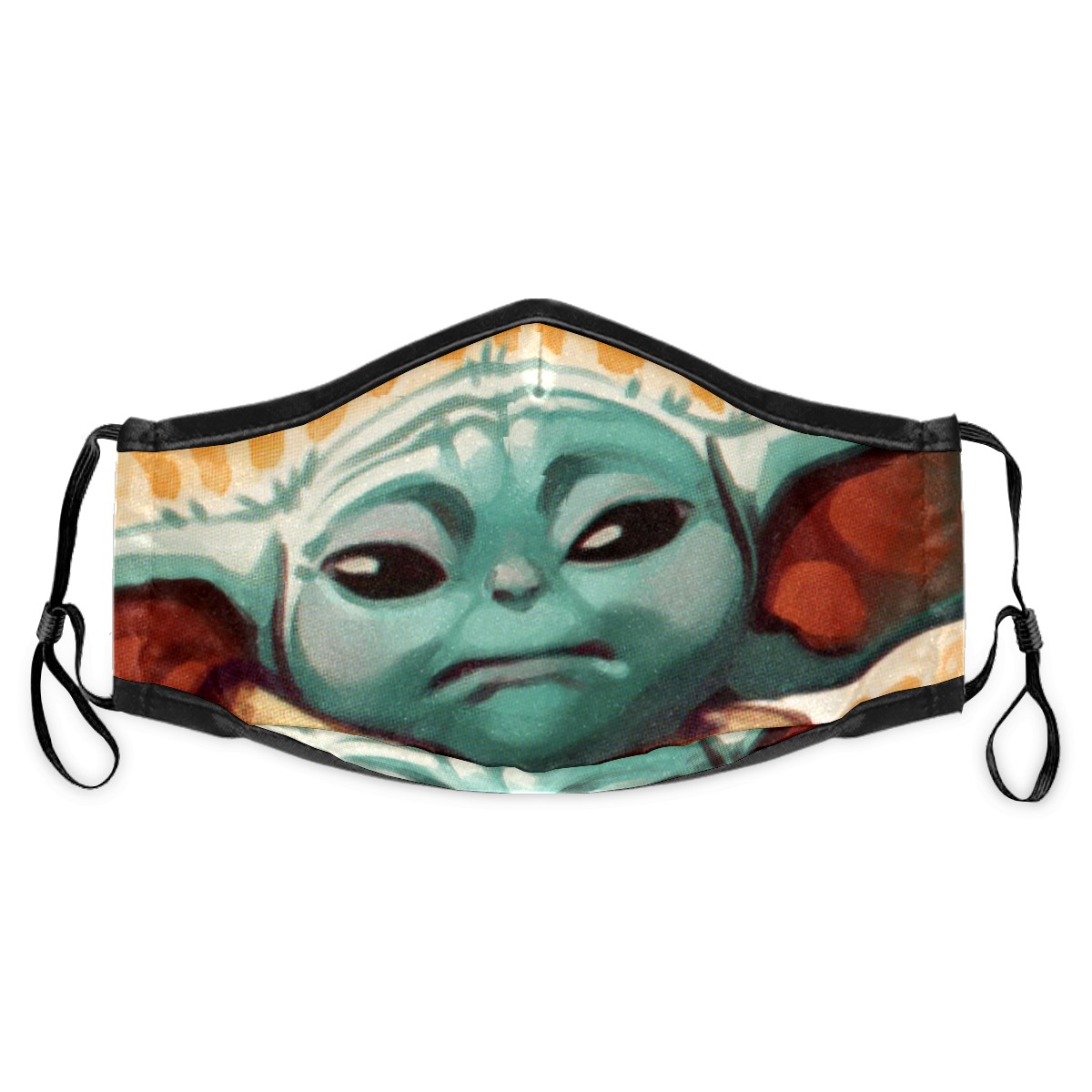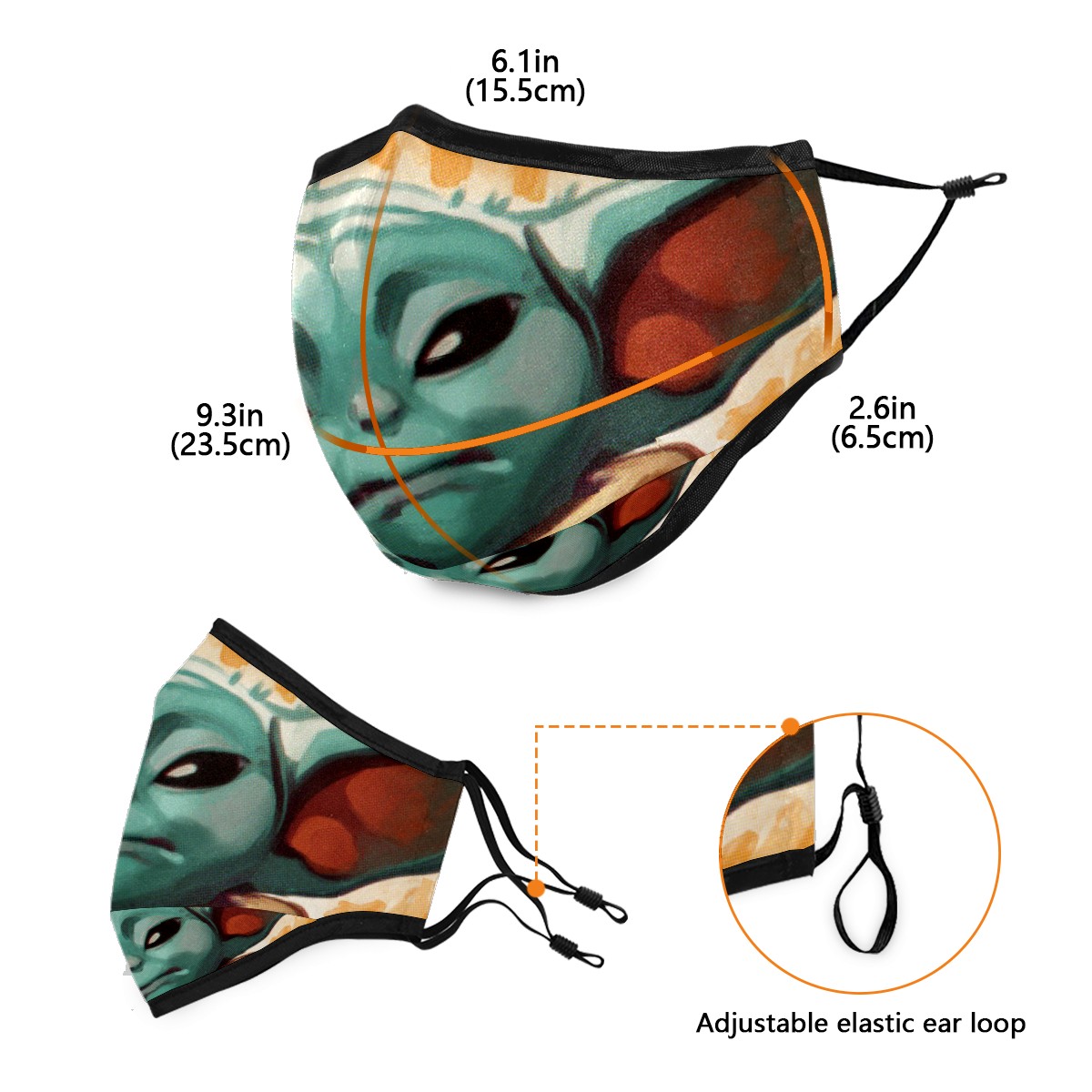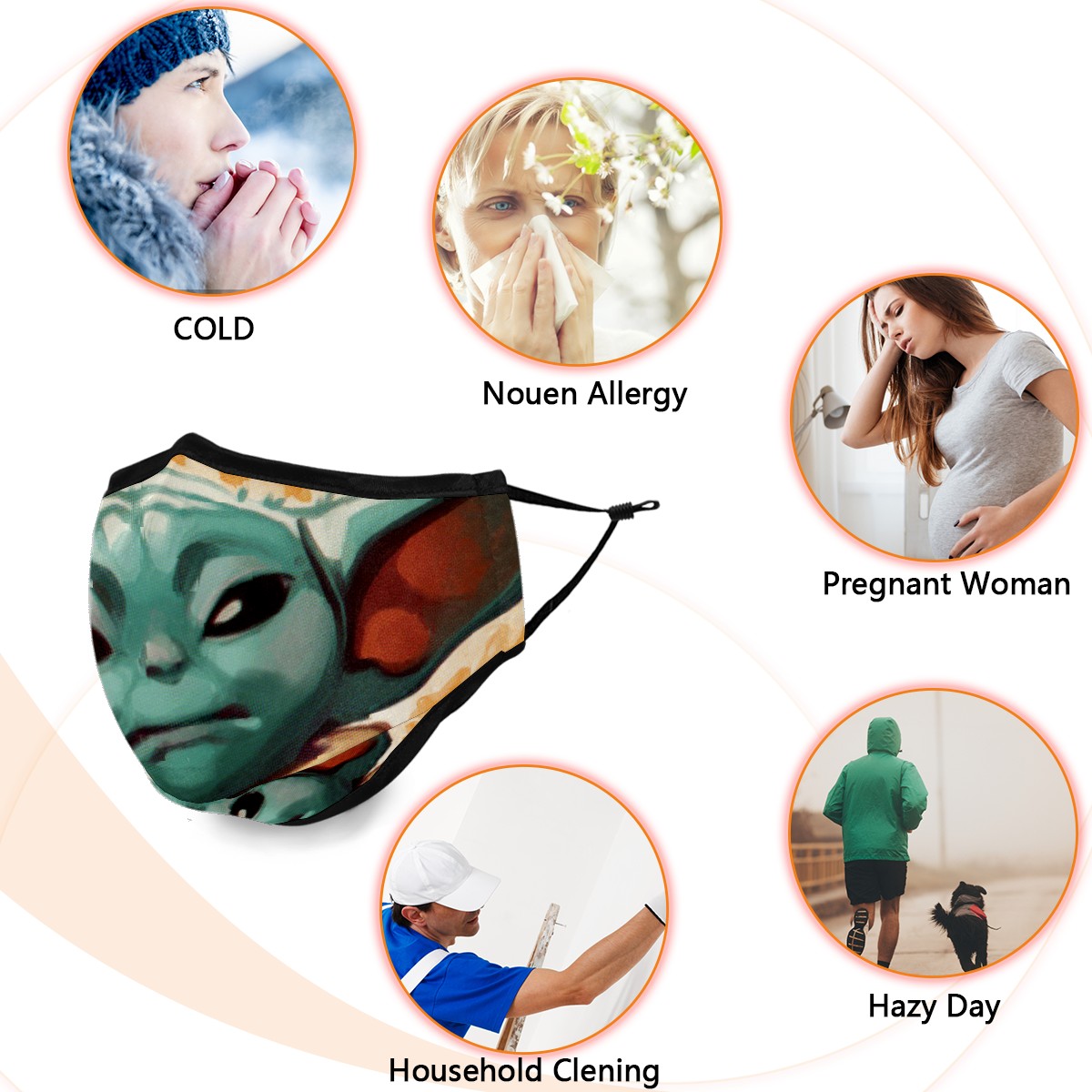 Washable Cloth Face Cover Mask Vintage Baby Yoda Painting Reusable Dust Windproof Mask Face Protection Adjustable Ear Loops & Nose Wire Bandana with 6 Pcs Filter for Women Men Kids