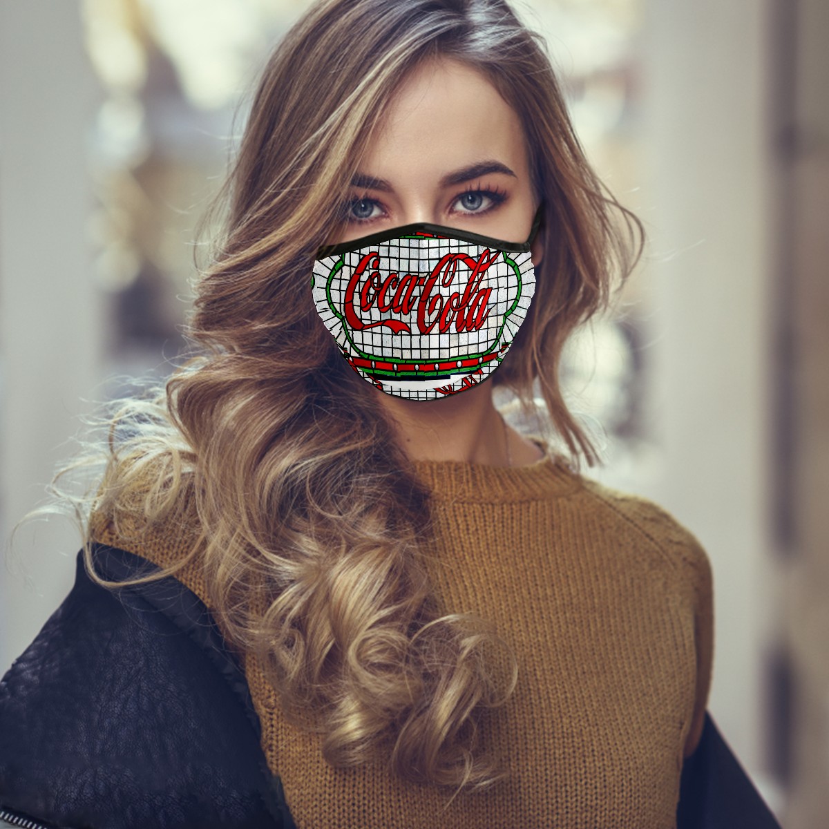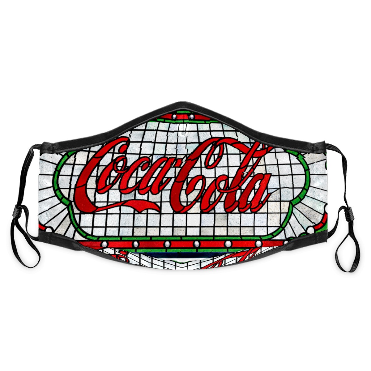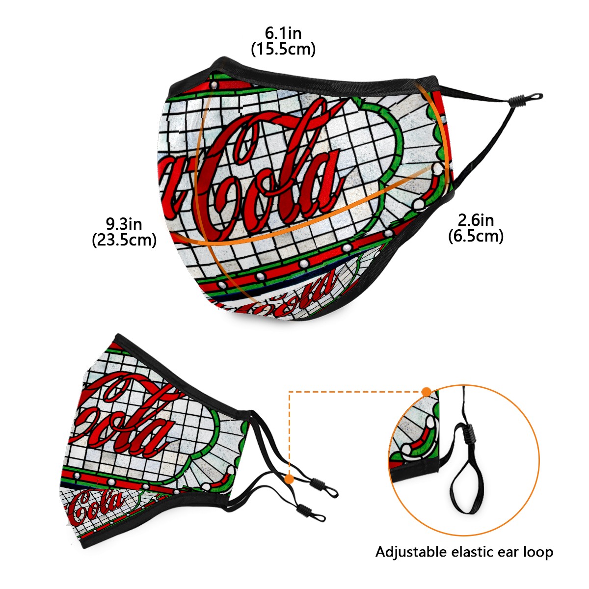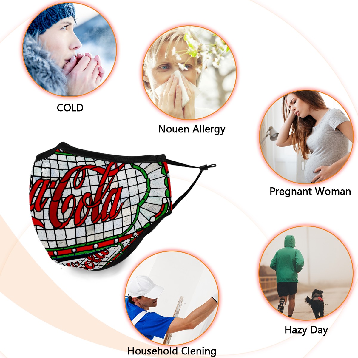 Washable Cloth Face Cover Mask Classic Coca Cola Green Red Reusable Dust Windproof Mask Face Protection Adjustable Ear Loops & Nose Wire Bandana with 6 Pcs Filter for Women Men Kids