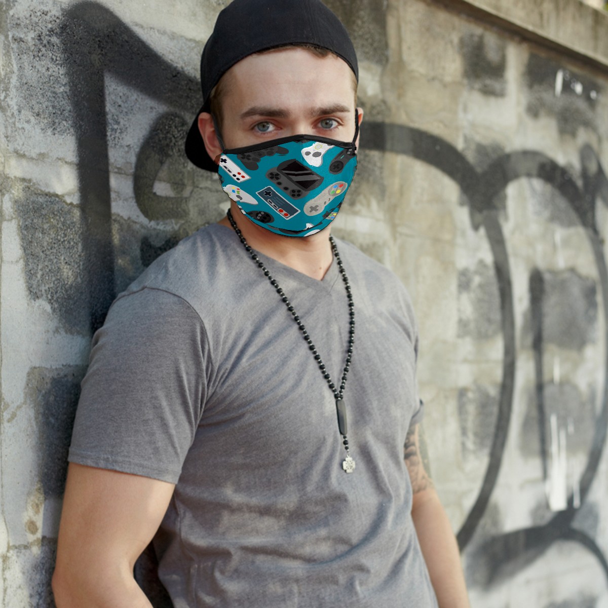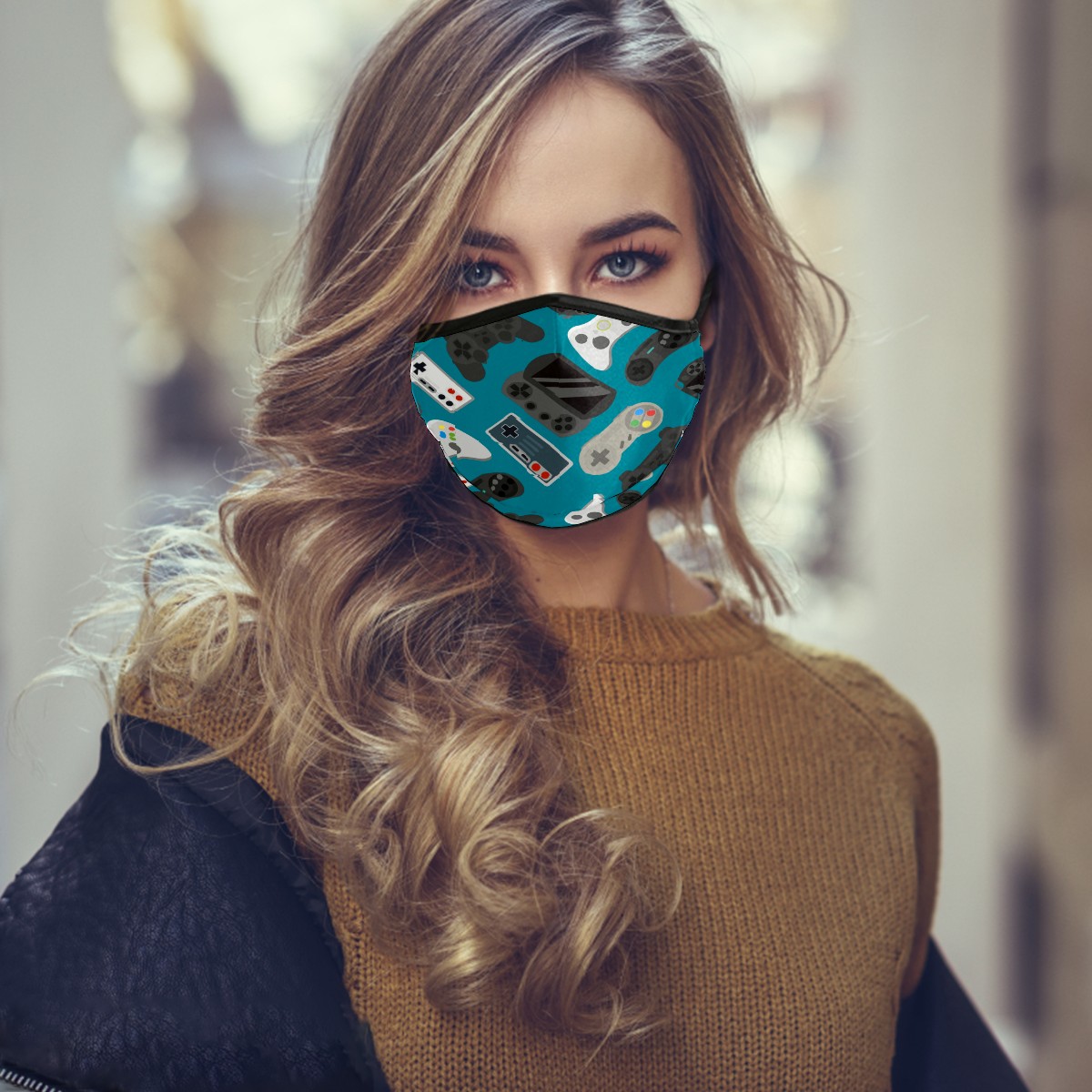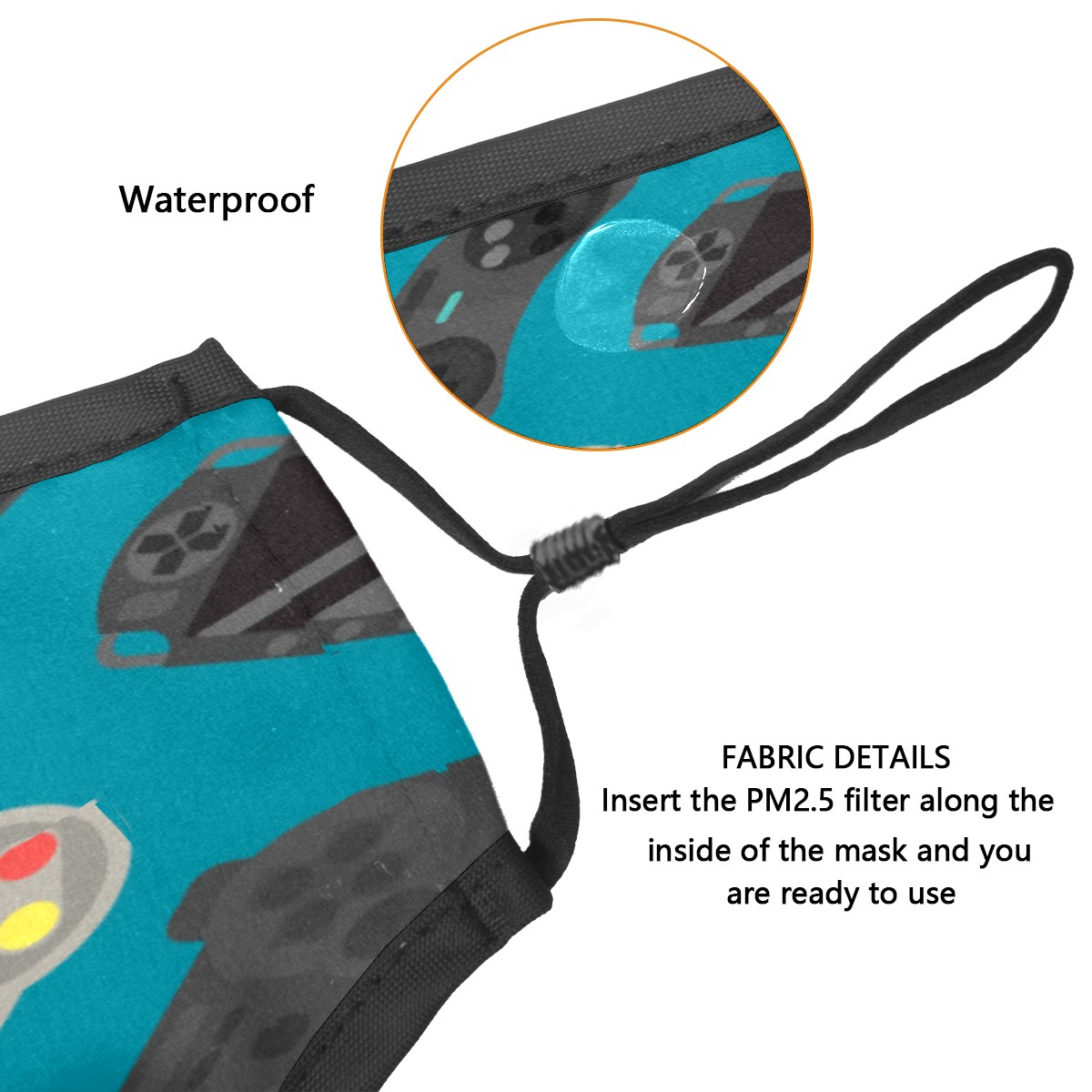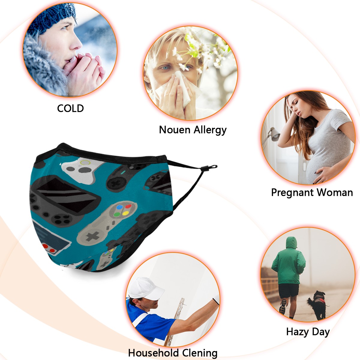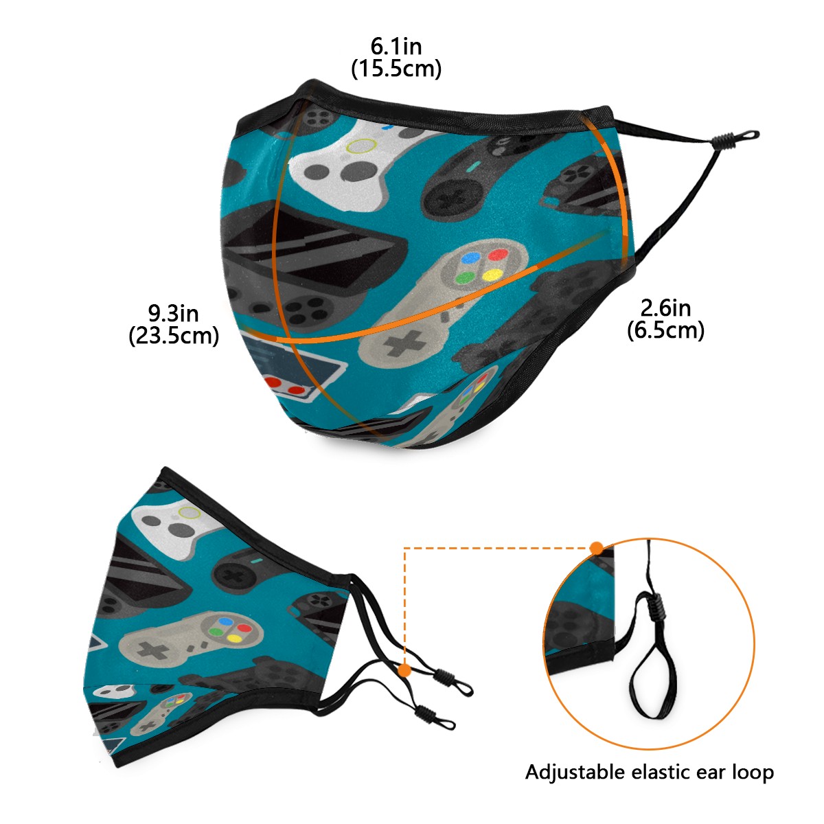 Washable Cloth Face Cover Mask Cartoon Gamer Controller Reusable Dust Windproof Mask Face Protection Adjustable Ear Loops & Nose Wire Bandana with 6 Pcs Filter for Women Men Kids