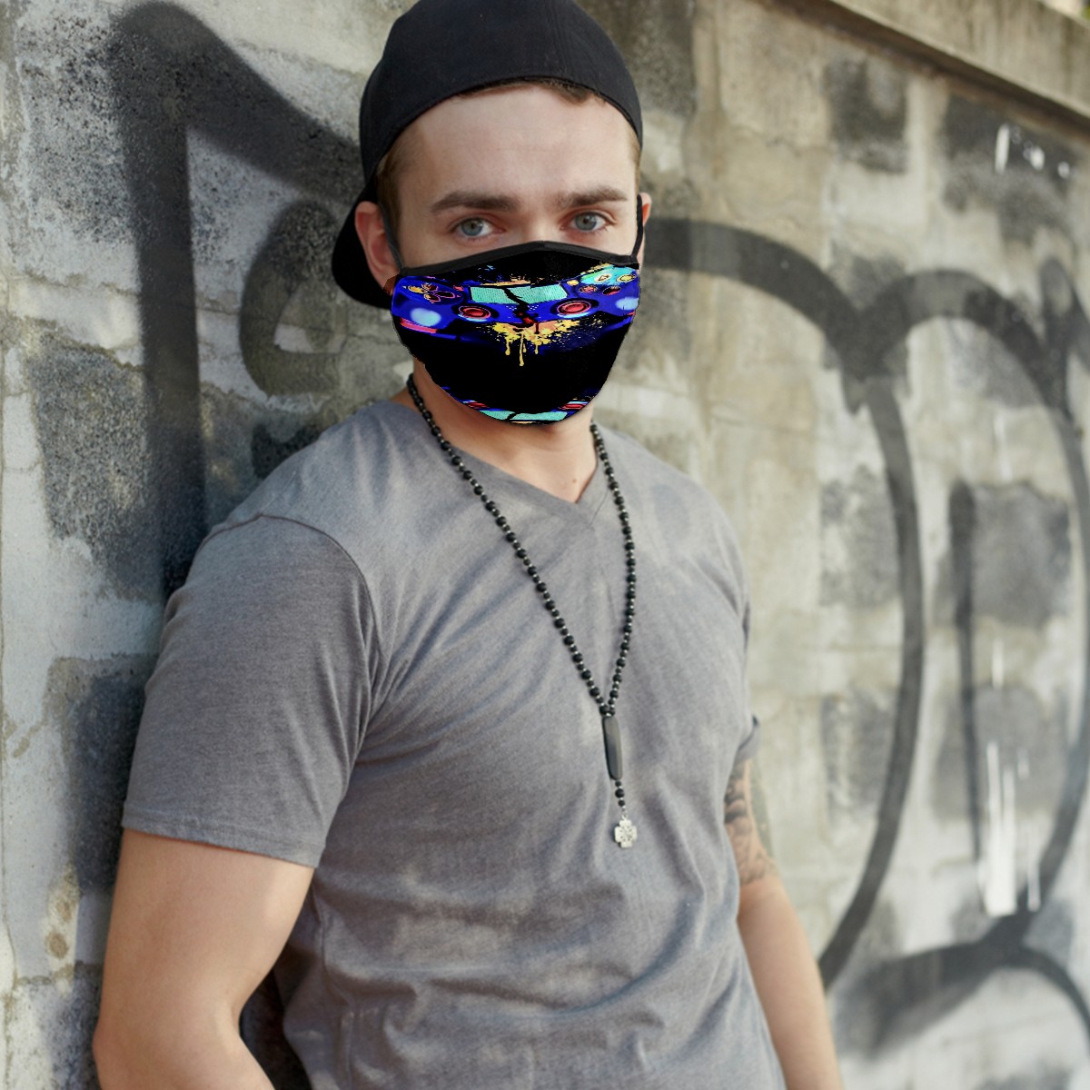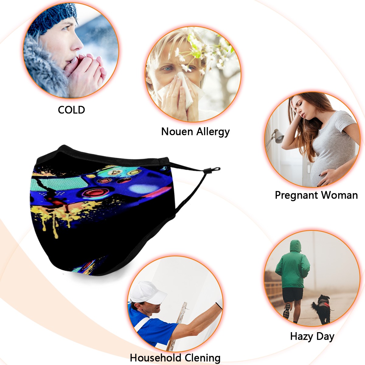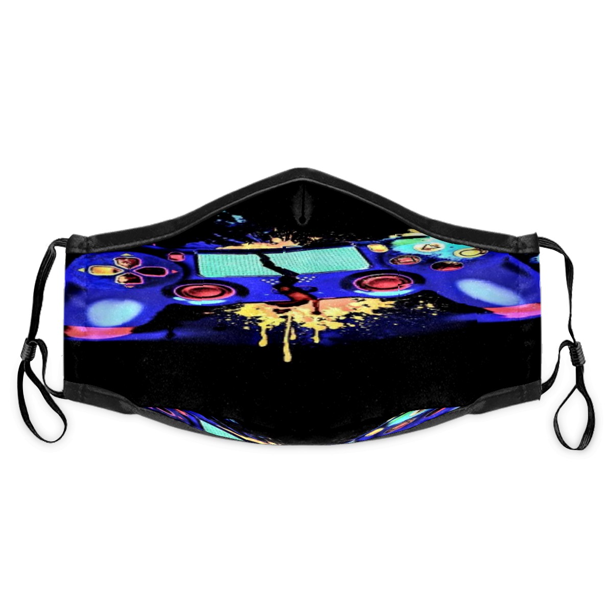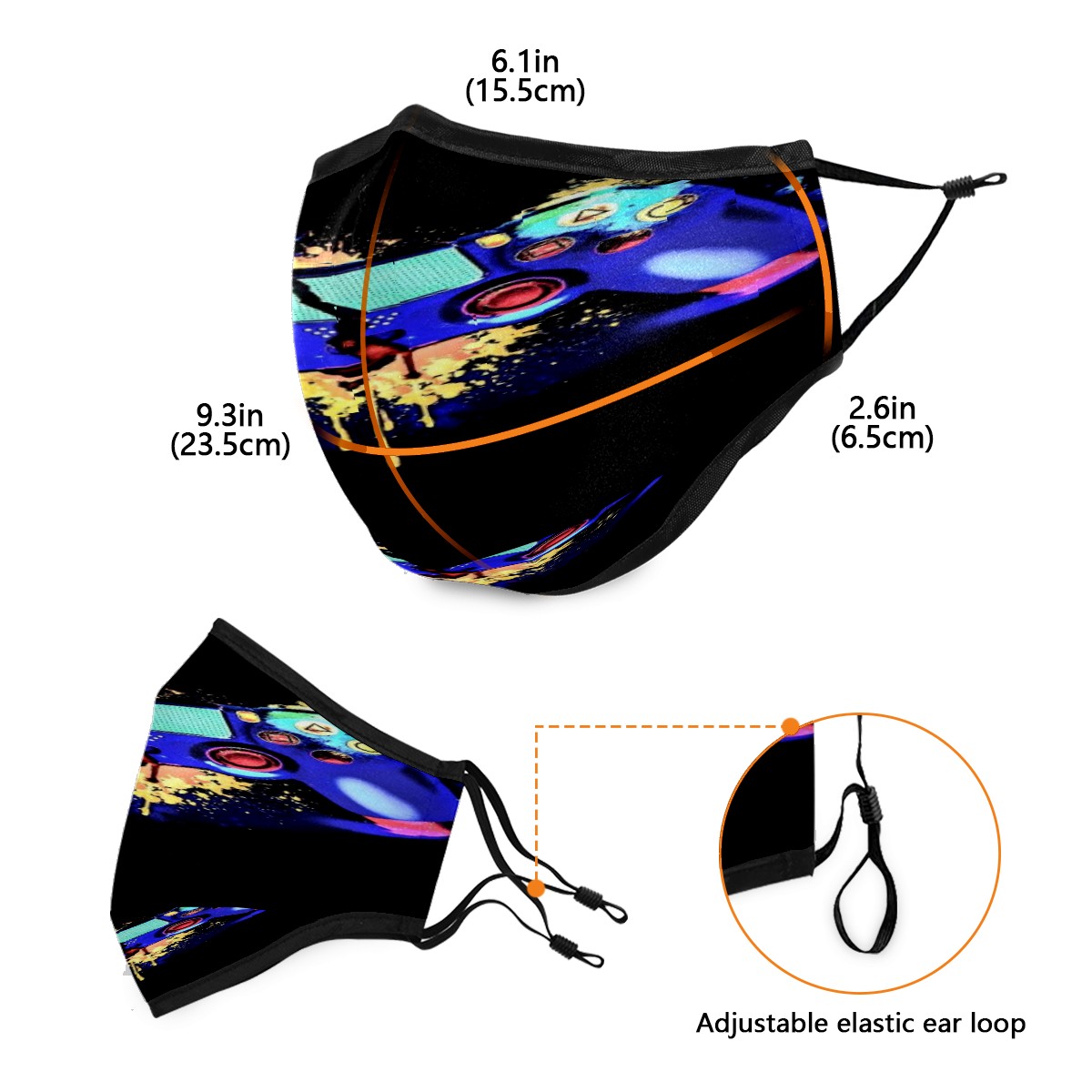Washable Cloth Face Cover Mask Broken Video Gaming Controller Reusable Dust Windproof Mask Face Protection Adjustable Ear Loops & Nose Wire Bandana with 6 Pcs Filter for Women Men Kids