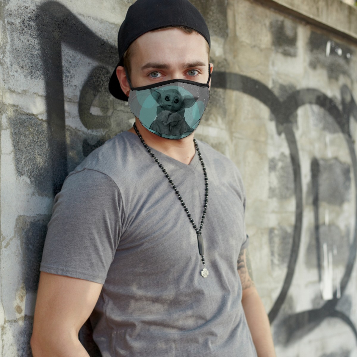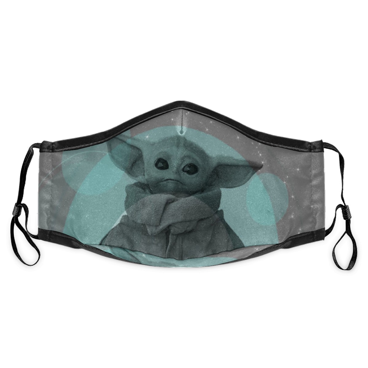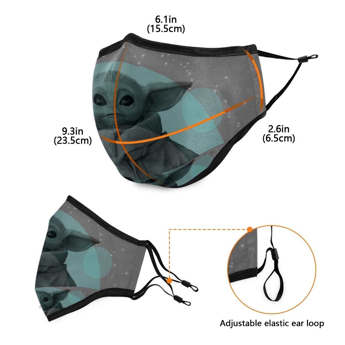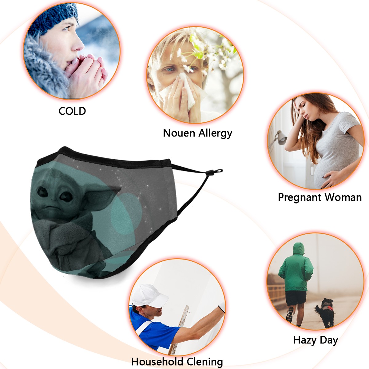 Washable Cloth Face Cover Mask Curious Baby Yoda Reusable Dust Windproof Mask Face Protection Adjustable Ear Loops & Nose Wire Bandana with 6 Pcs Filter for Women Men Kids