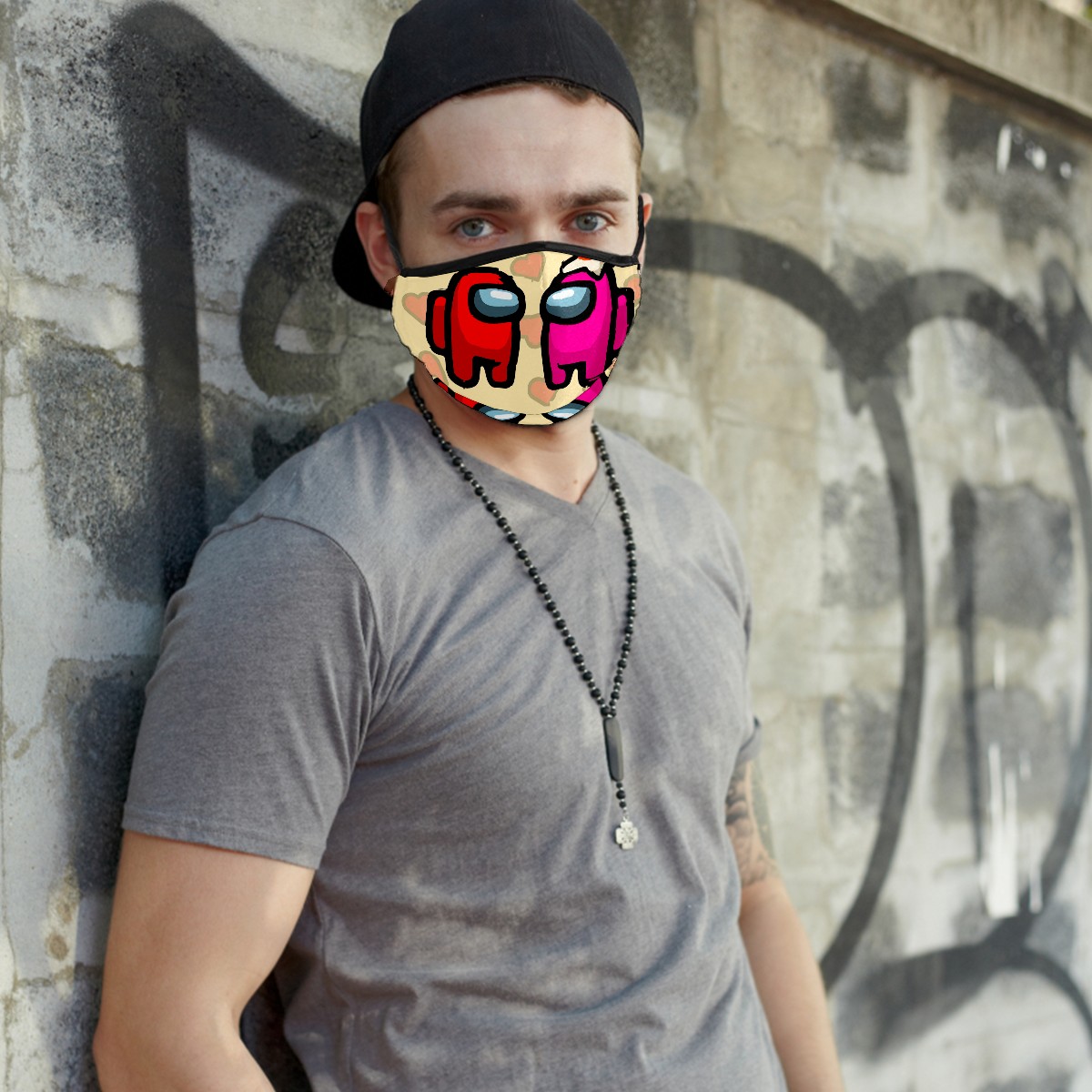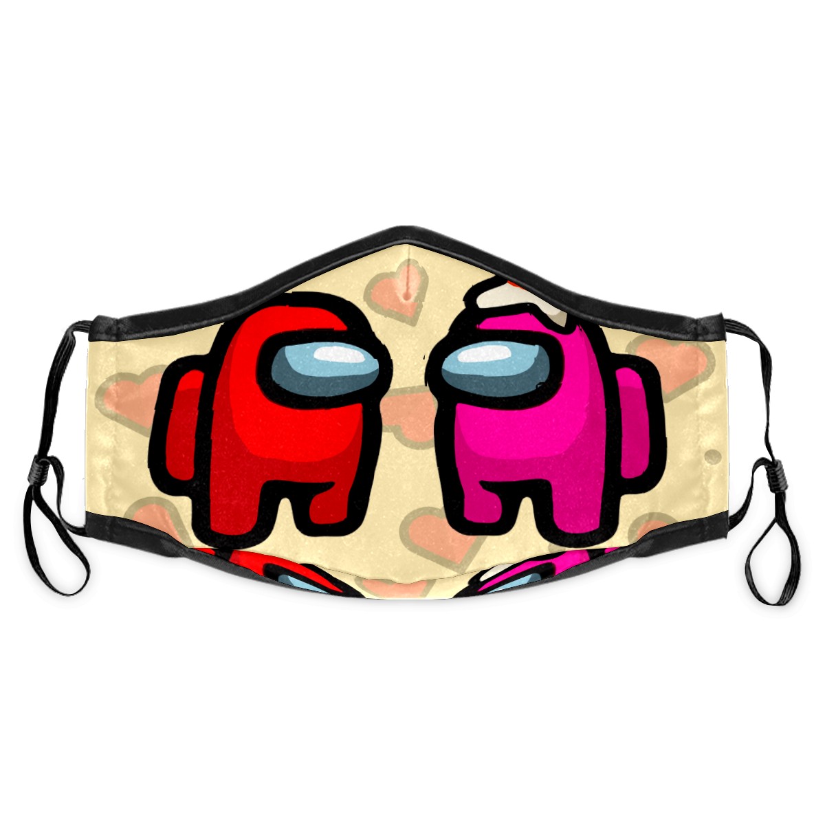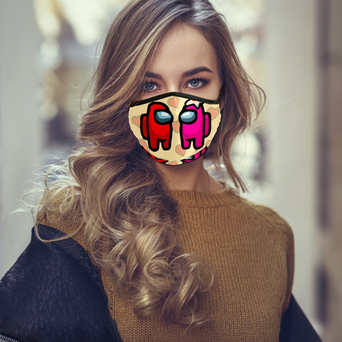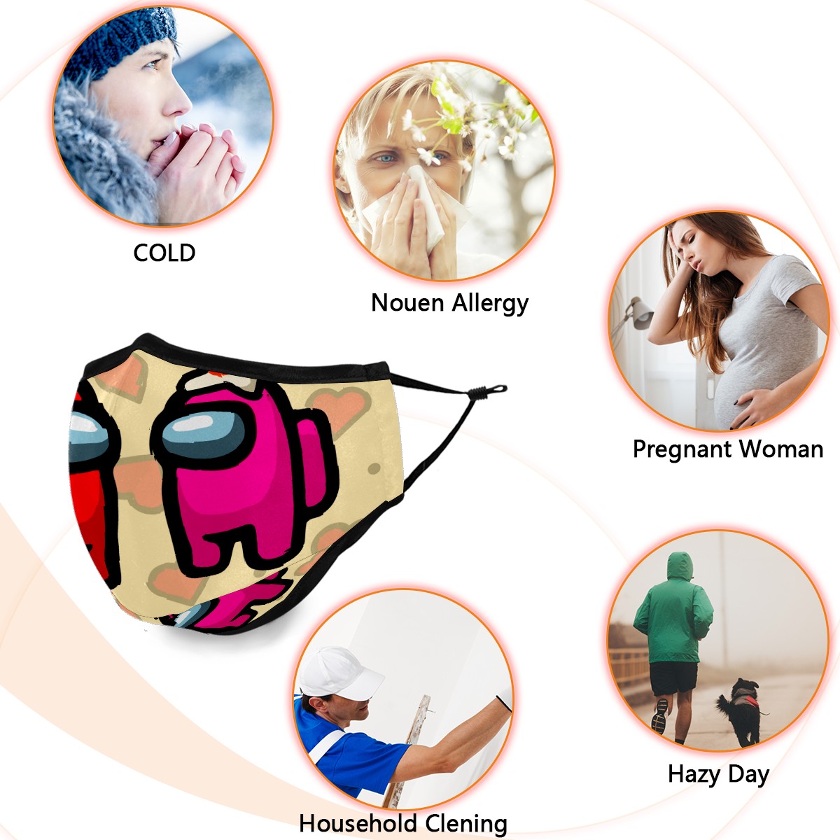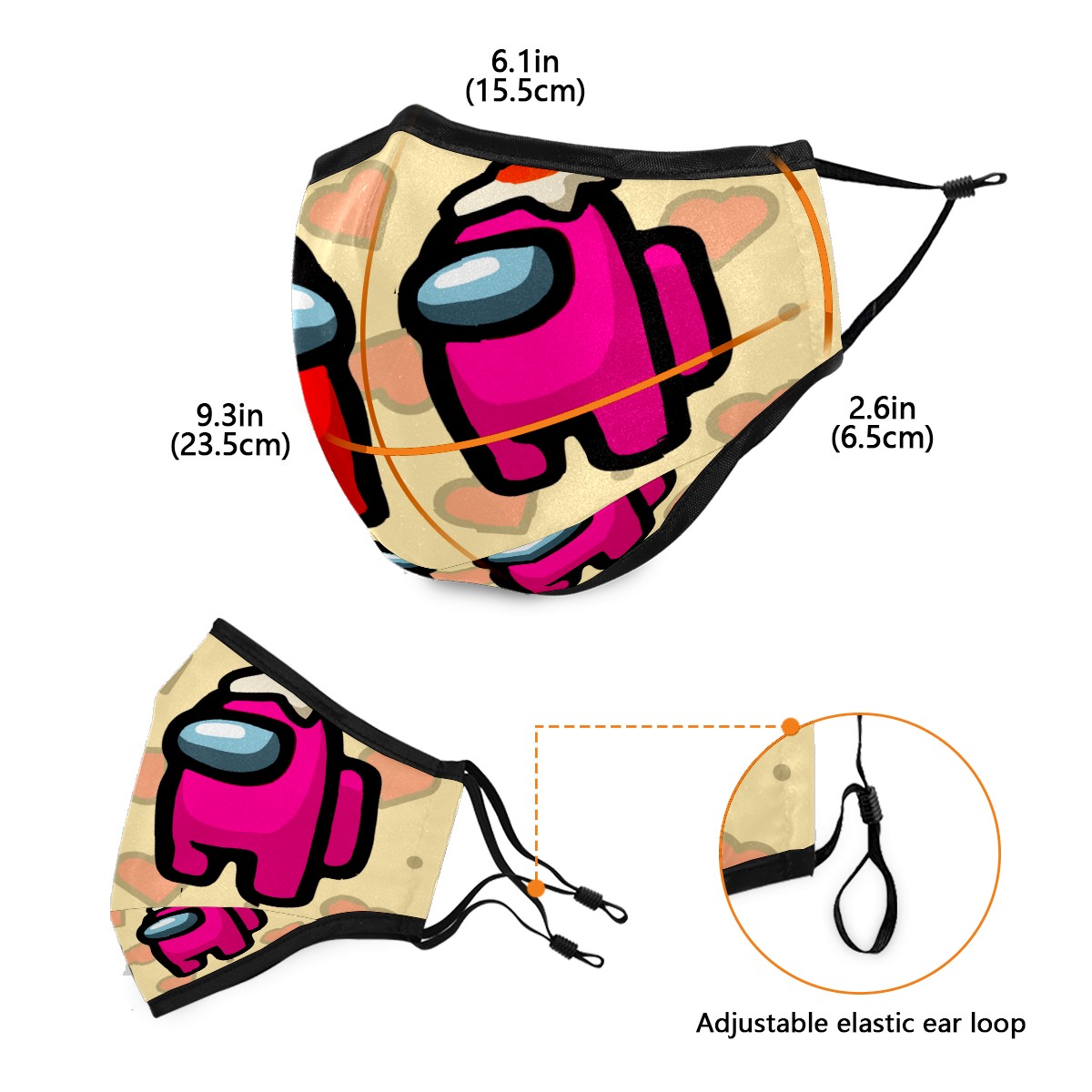 Washable Cloth Face Cover Mask Among-Us Heart Reusable Dust Windproof Mask Face Protection Adjustable Ear Loops & Nose Wire Bandana with 6 Pcs Filter for Women Men Kids