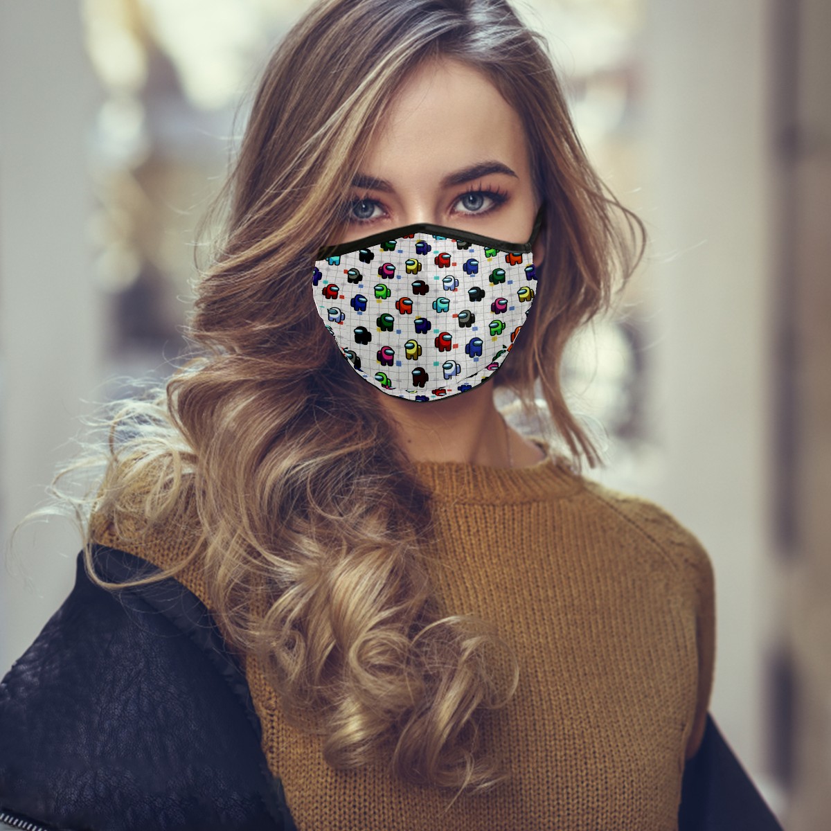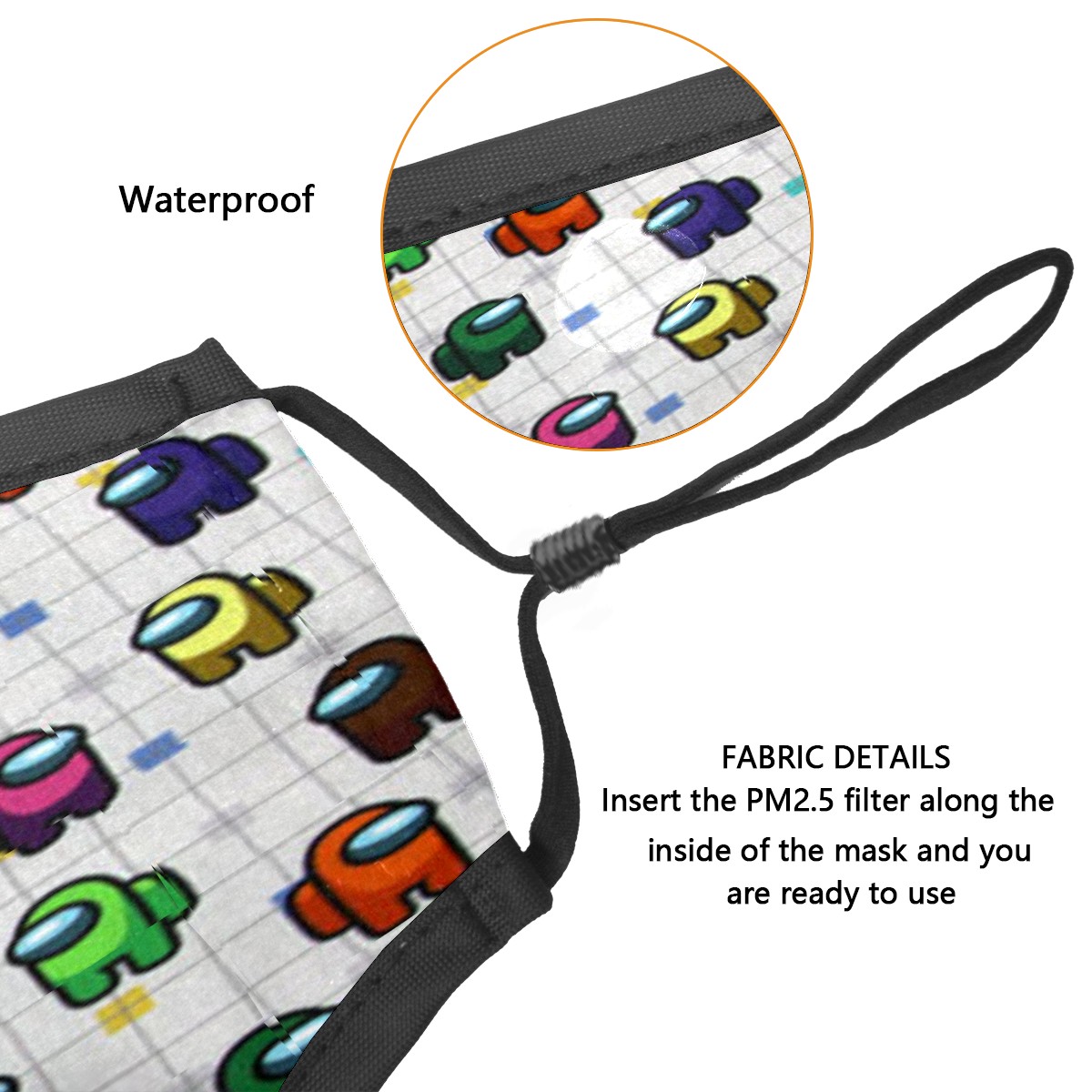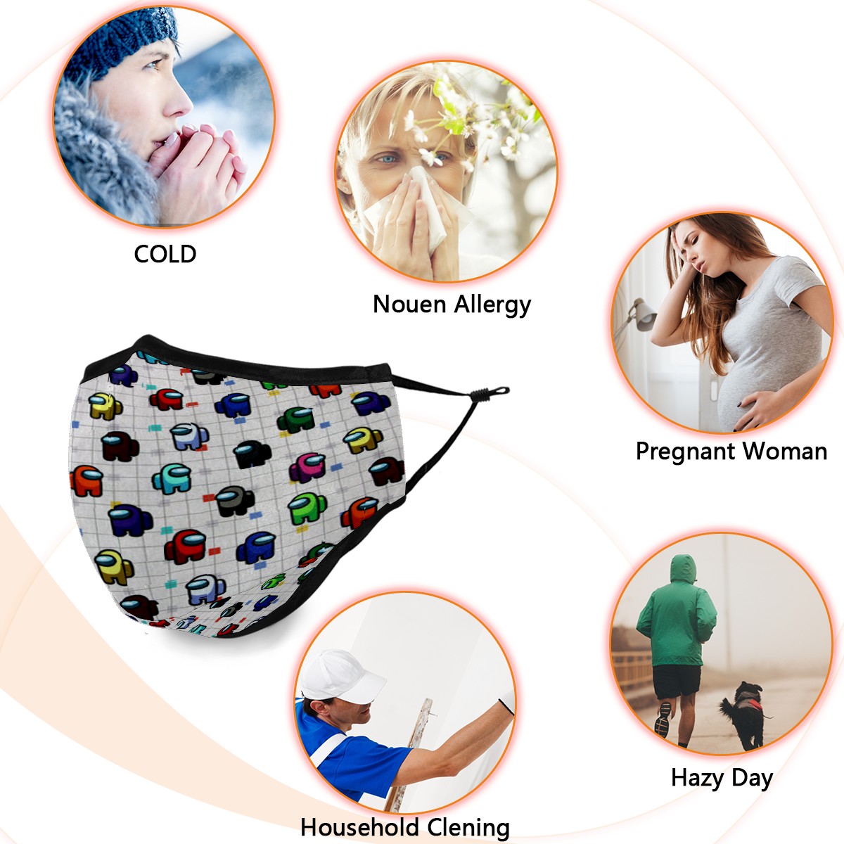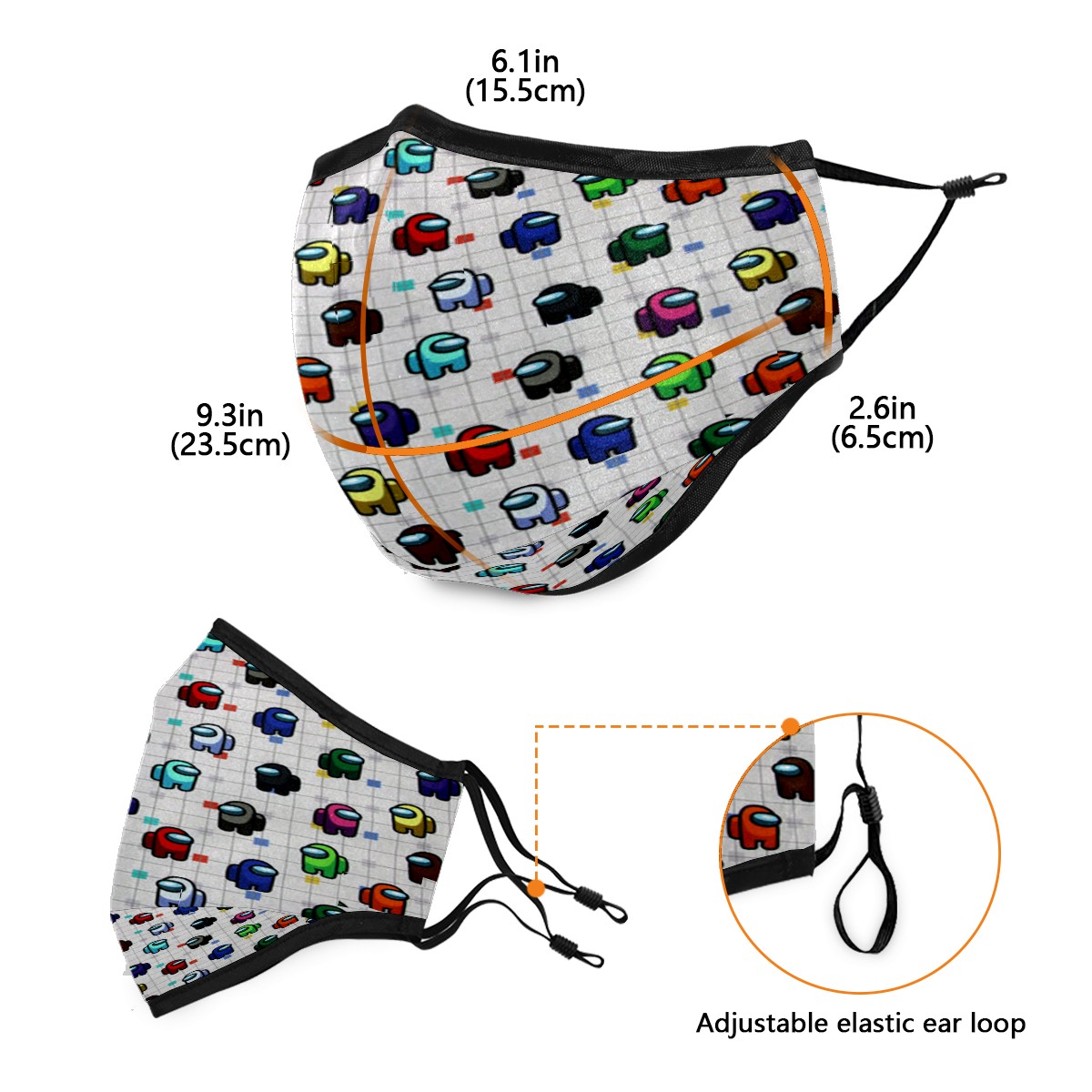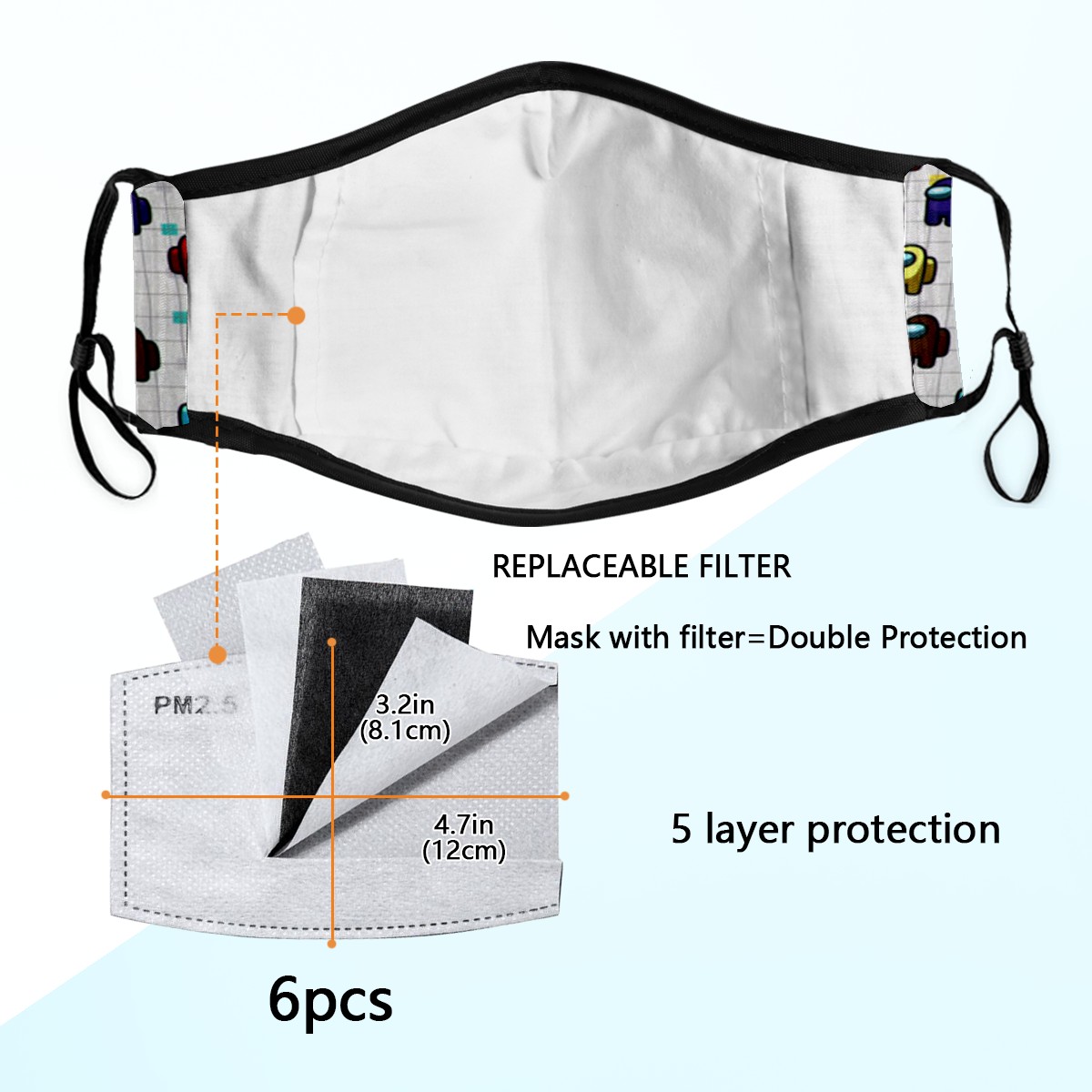 Washable Cloth Face Cover Mask Among Us Game Reusable Dust Windproof Mask Face Protection Adjustable Ear Loops & Nose Wire Bandana with 6 Pcs Filter for Women Men Kids