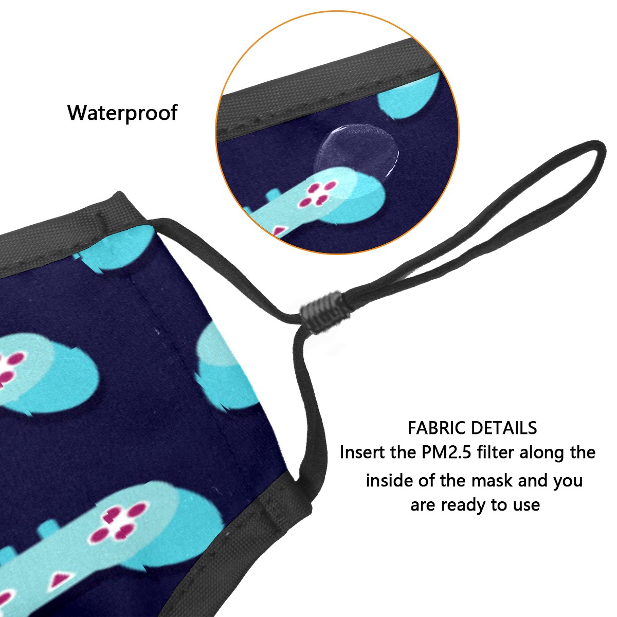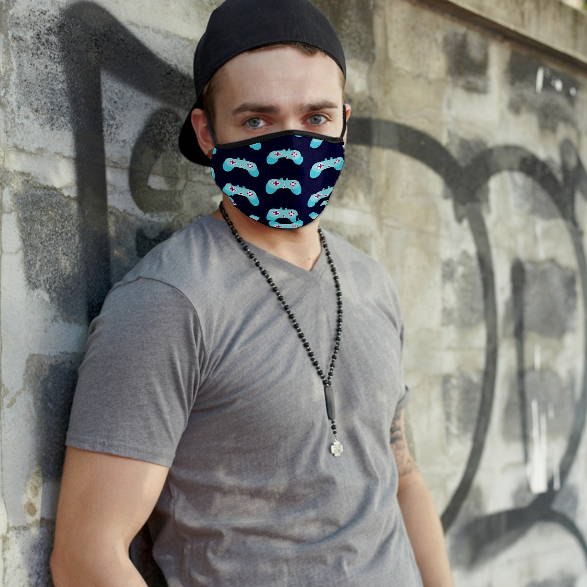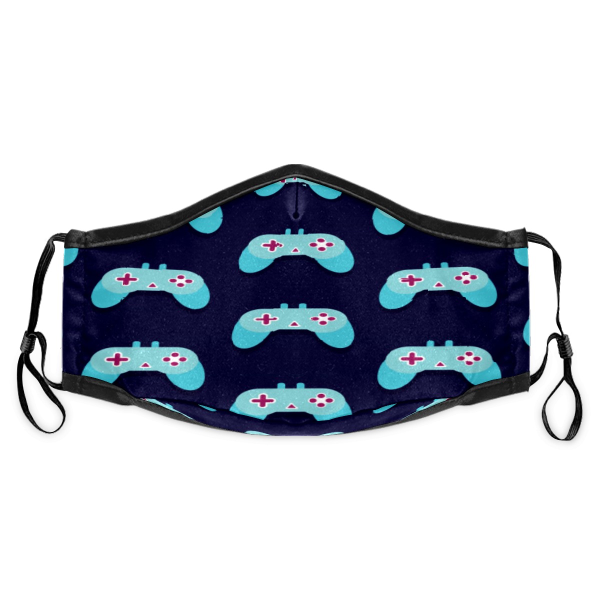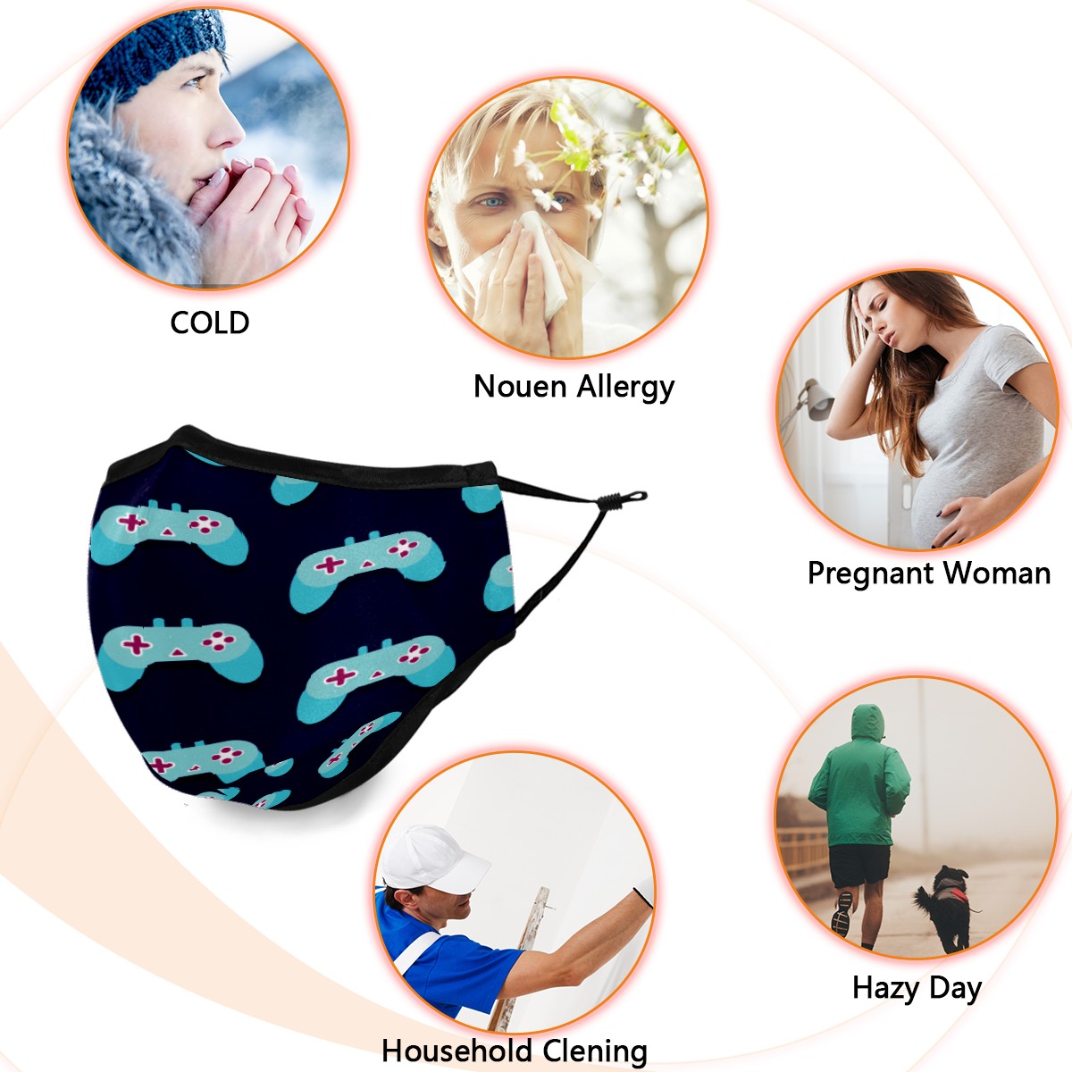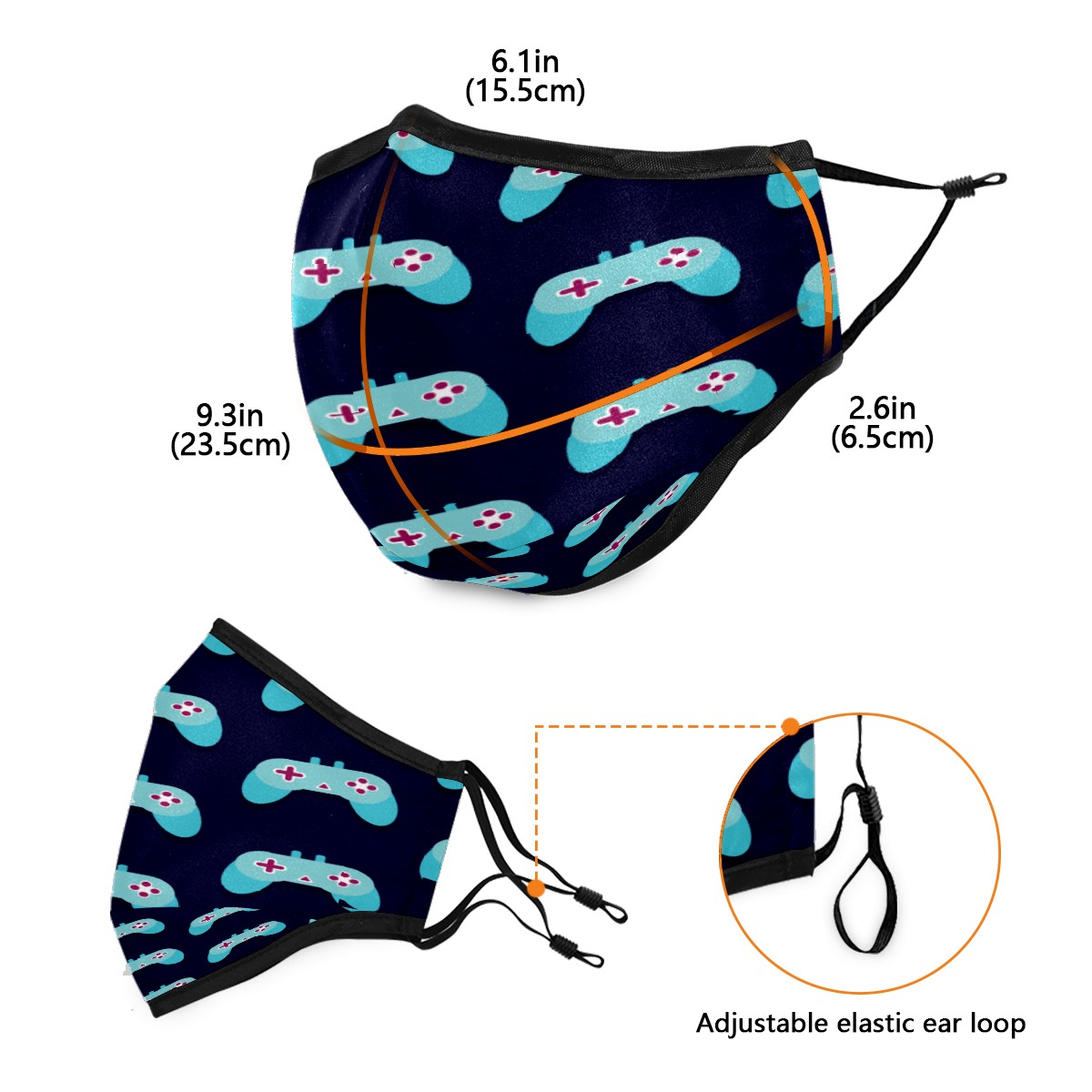 Washable Cloth Face Cover Mask Cartoon Gamepad Game Controller Reusable Dust Windproof Mask Face Protection Adjustable Ear Loops & Nose Wire Bandana with 6 Pcs Filter for Women Men Kids