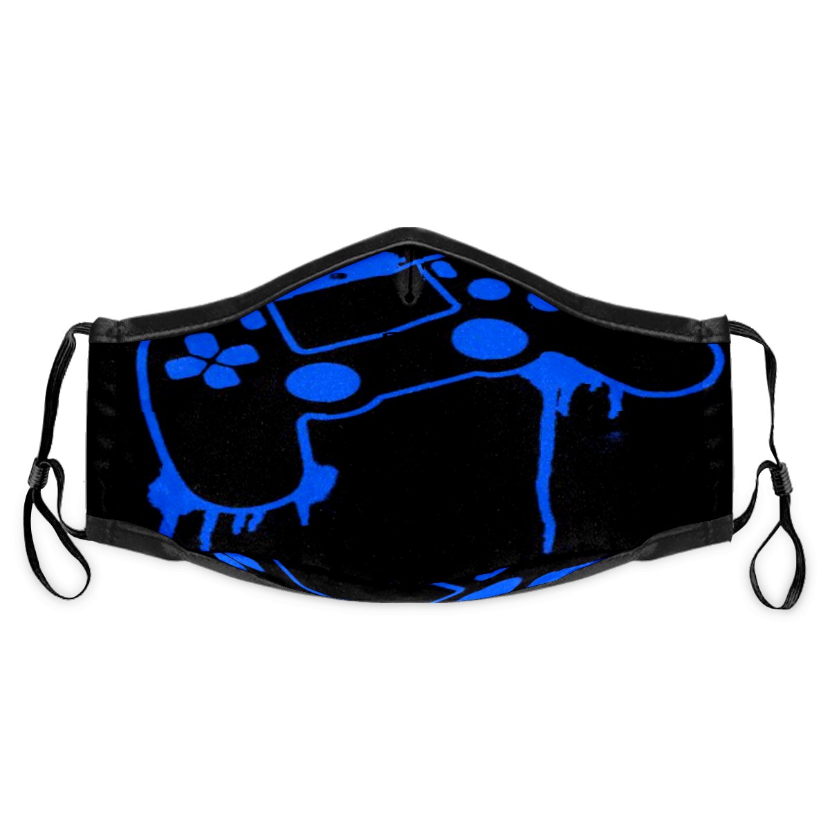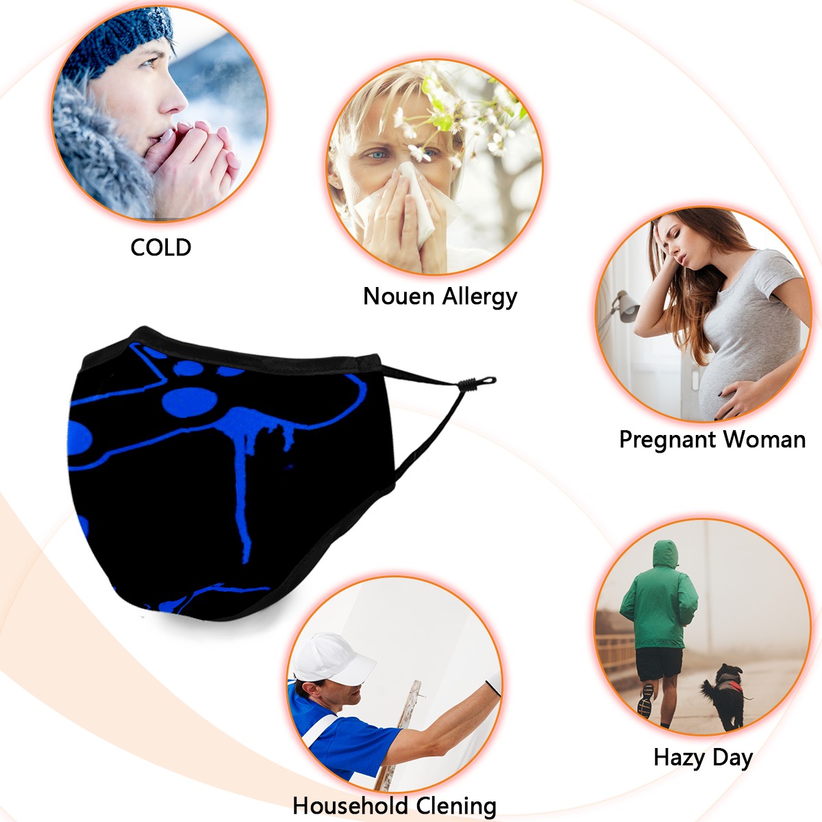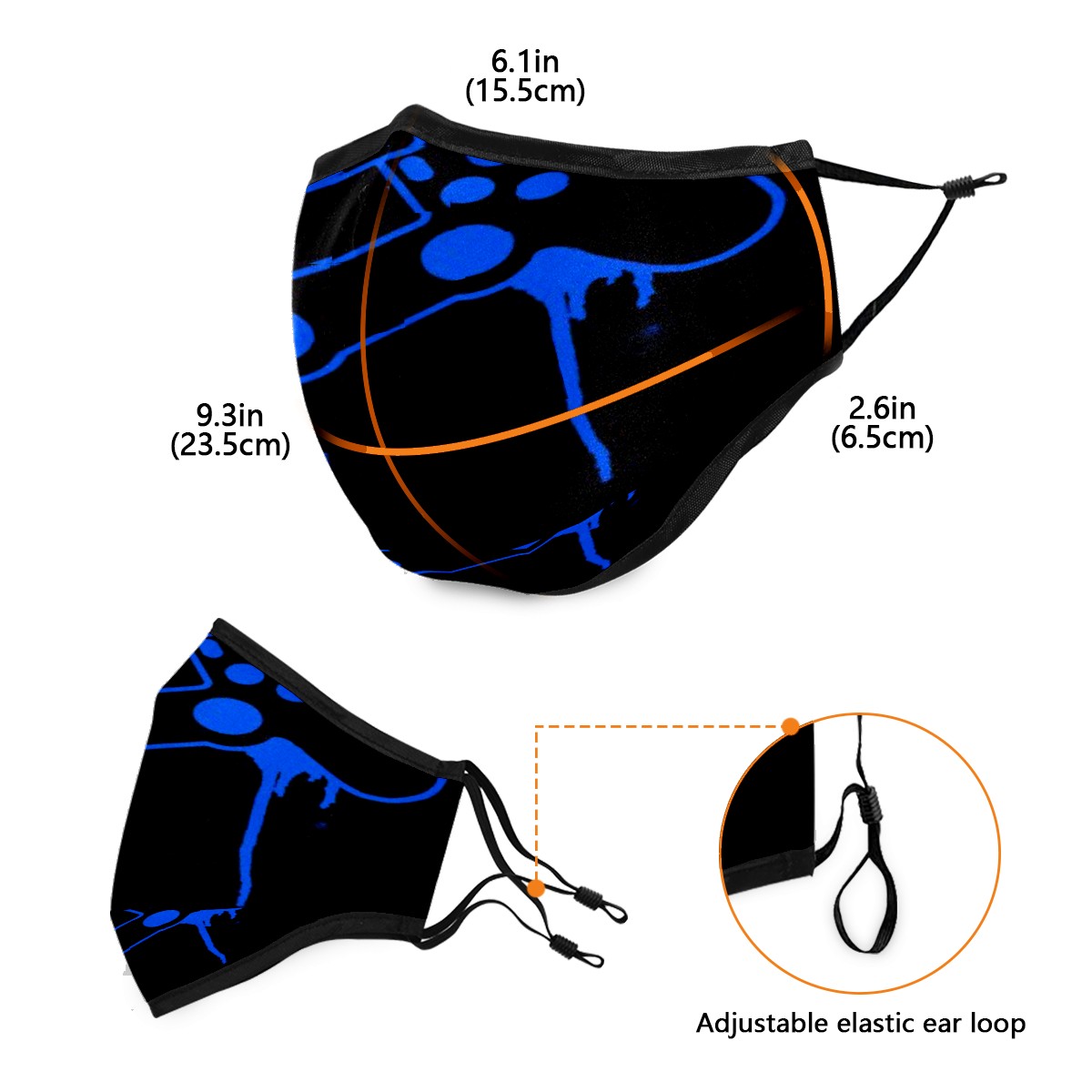 Washable Cloth Face Cover Mask Blue Gaming Controller Reusable Dust Windproof Mask Face Protection Adjustable Ear Loops & Nose Wire Bandana with 6 Pcs Filter for Women Men Kids