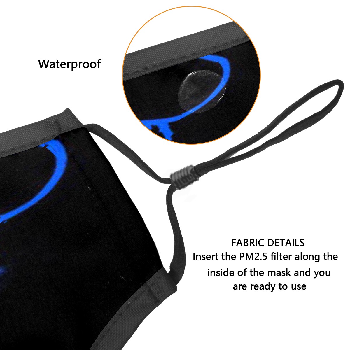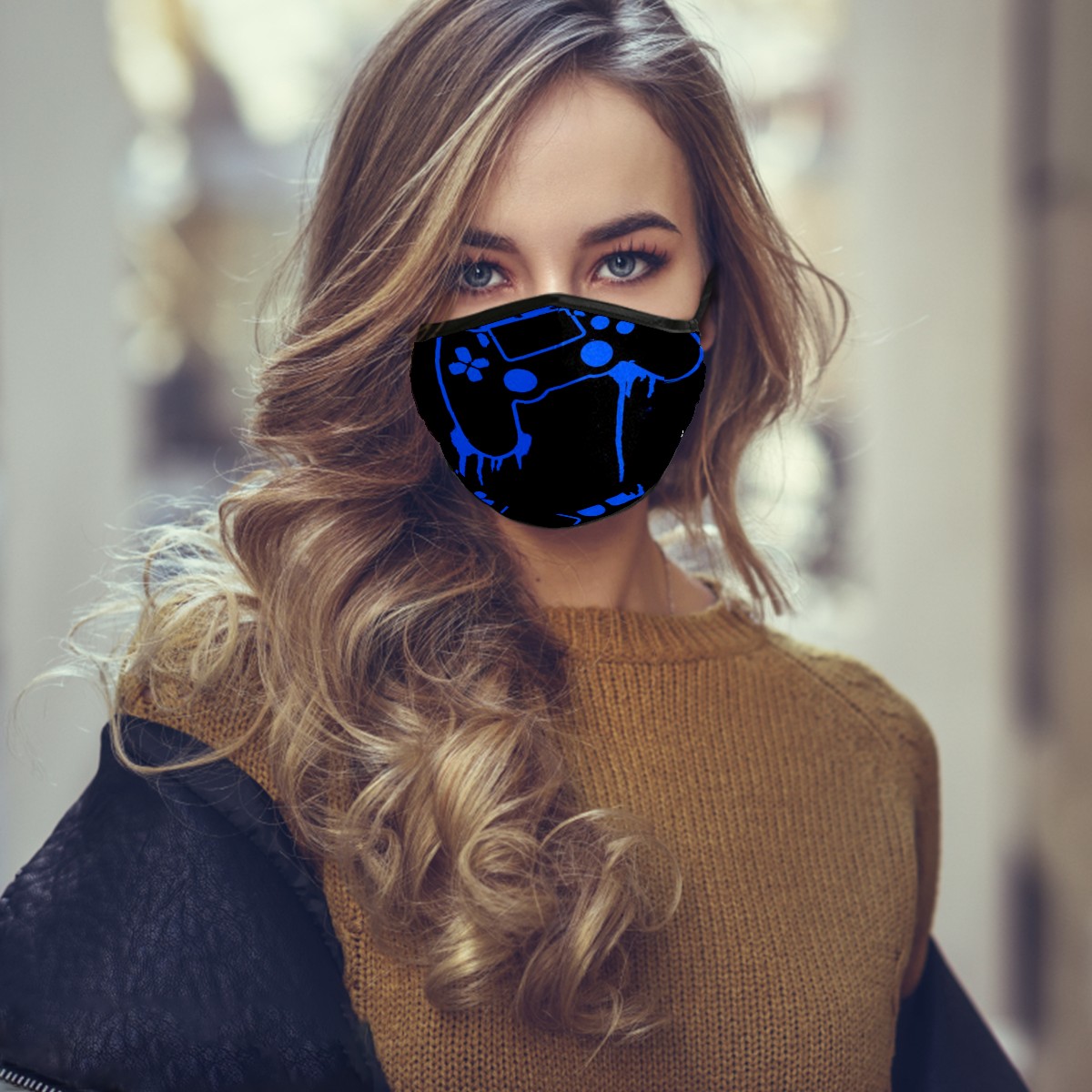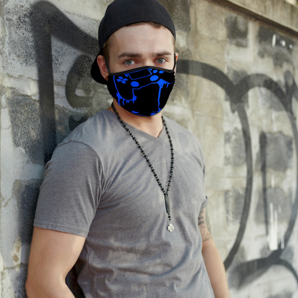 Washable Cloth Face Cover Mask Blue Gaming Controller Reusable Dust Windproof Mask Face Protection Adjustable Ear Loops & Nose Wire Bandana with 6 Pcs Filter for Women Men Kids