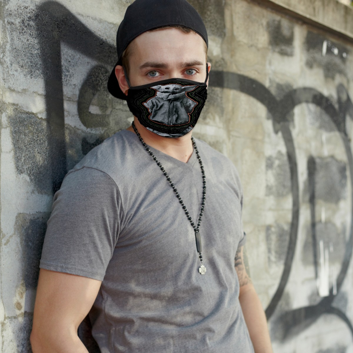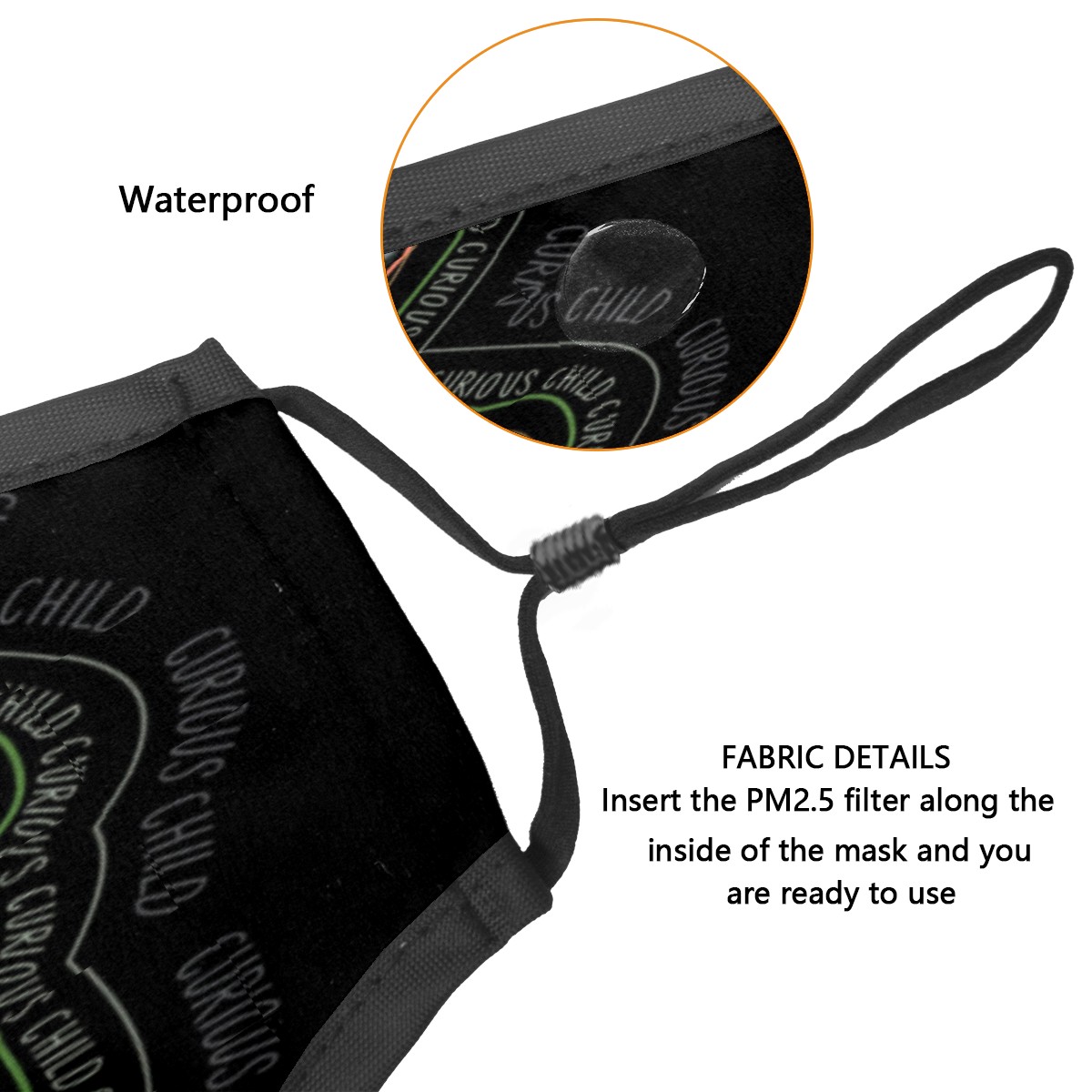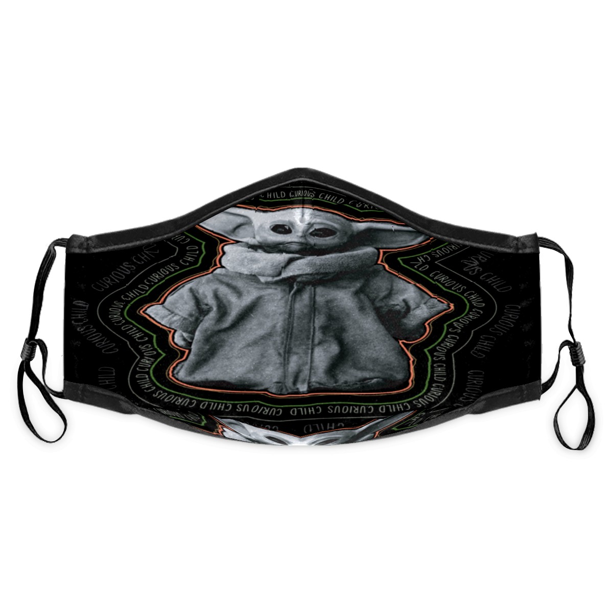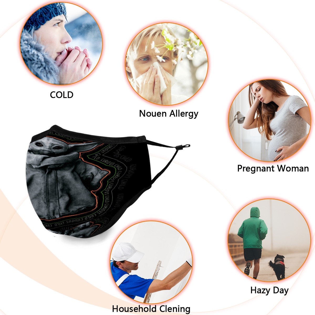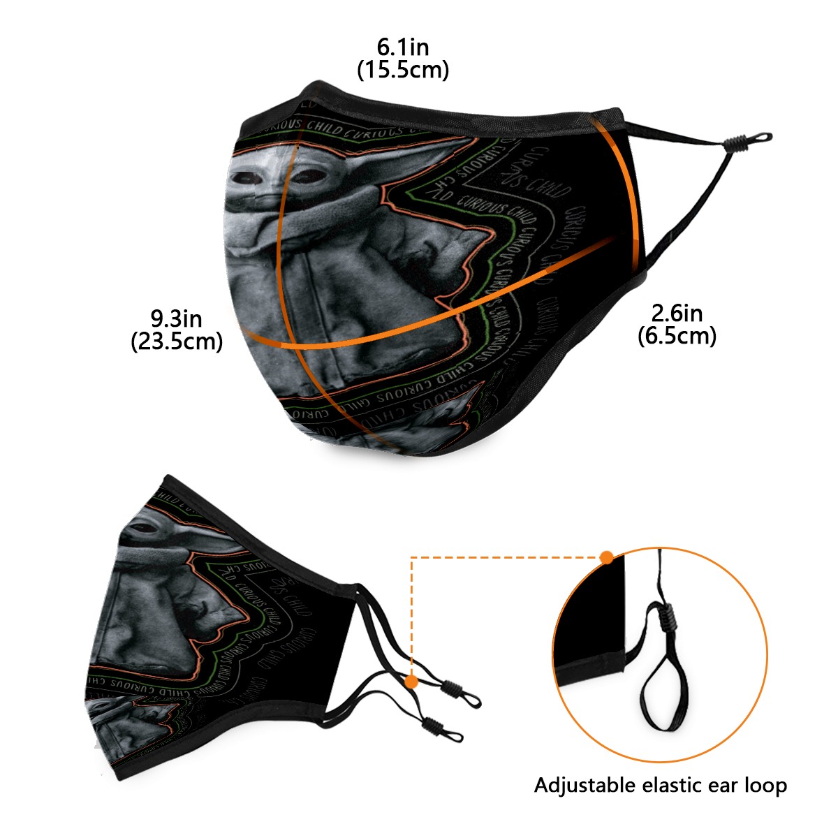 Washable Cloth Face Cover Mask Cute Curious Child Yoda Reusable Dust Windproof Mask Face Protection Adjustable Ear Loops & Nose Wire Bandana with 6 Pcs Filter for Women Men Kids