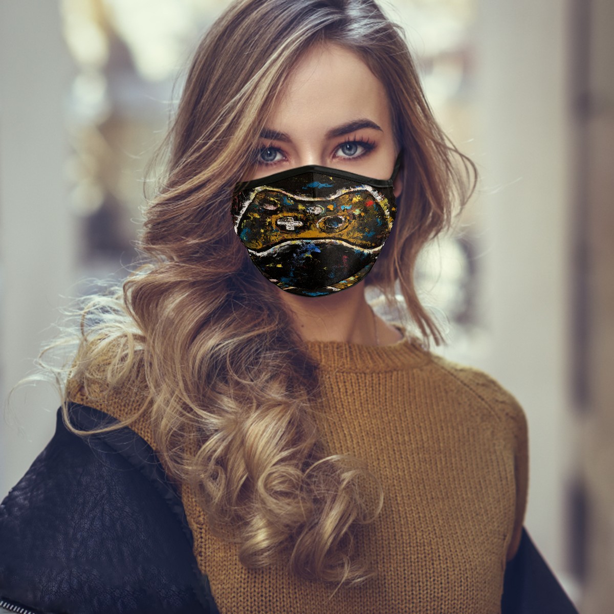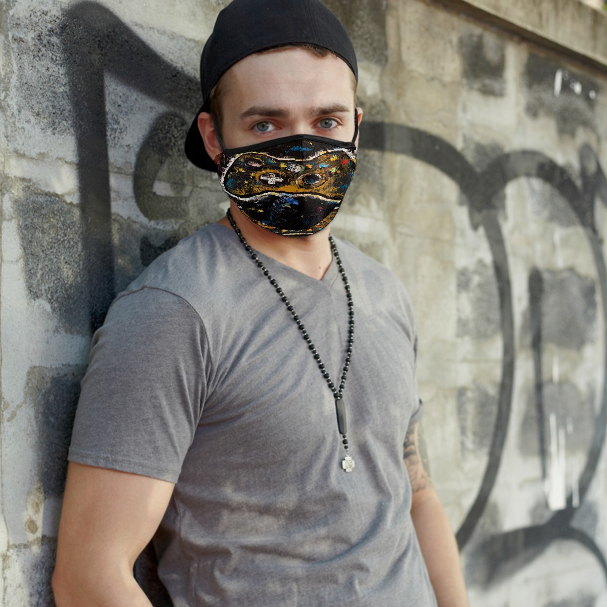 Washable Cloth Face Cover Mask Abstract Gamer Controller Retro Style Reusable Dust Windproof Mask Face Protection Adjustable Ear Loops & Nose Wire Bandana with 6 Pcs Filter for Women Men Kids