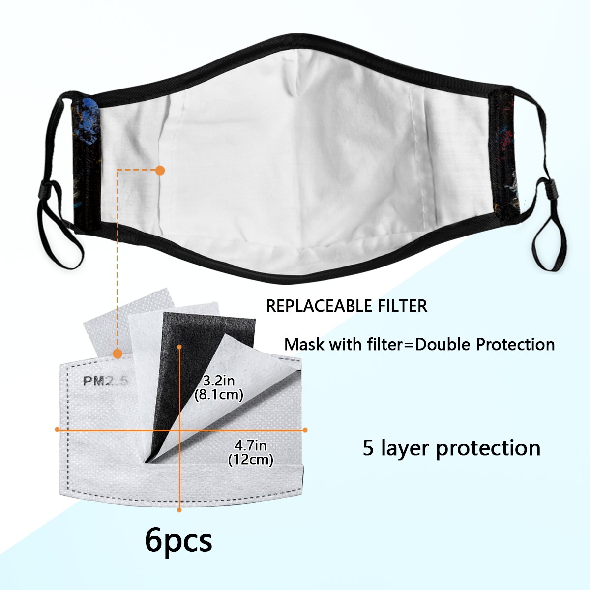 • <p><b>Adjustable ear loops &amp; Nose Wire Face Cover Masks,provide better snug fit and comfort for Men/Women/Family/Friends/Boys/Girls/Kids. Comfortable,Washable and reusable characteristic bring you convenience in daily use.</b></p> <p></p> <p>Specification of Face mask cover</p> <p><b>Material: outer polyester + inner cotton.</b></p> <p><b>One Size Fits All: 9.3x6.1 inch.</b></p> <p><b>Package includes: one mouth shield with 6pcs filter carbon sheet.Each respirator is crafted with five layers.</b></p> <p>Print: High Quality Printing.</p> <p></p> <p>Features of Face Covering</p> <p>Washable.Easy to Clean.</p> <p><b>Adjustable ear loops &amp; Nose Wire.</b></p> <p>Lightweight,durable and especially safe</p> <p>Ideal Gift: Our dustproof shield cute patterns and a variety of colors, perfect gift for your family, friends,colleague and husband/wife in thanksgiving, Christmas, new year and birthday.&nbsp;</p> <p>Occasion: Our Popularity and personality face masks suitable for sport, school,shopping, hiking,cycling,fishing, surfing skiing,party, daily life using and other indoor/outdoor activities.</p> <p>we value our customers and hope you enjoy a pleasant shopping experience!If you have any questions, please feel free to contact us.</p>
